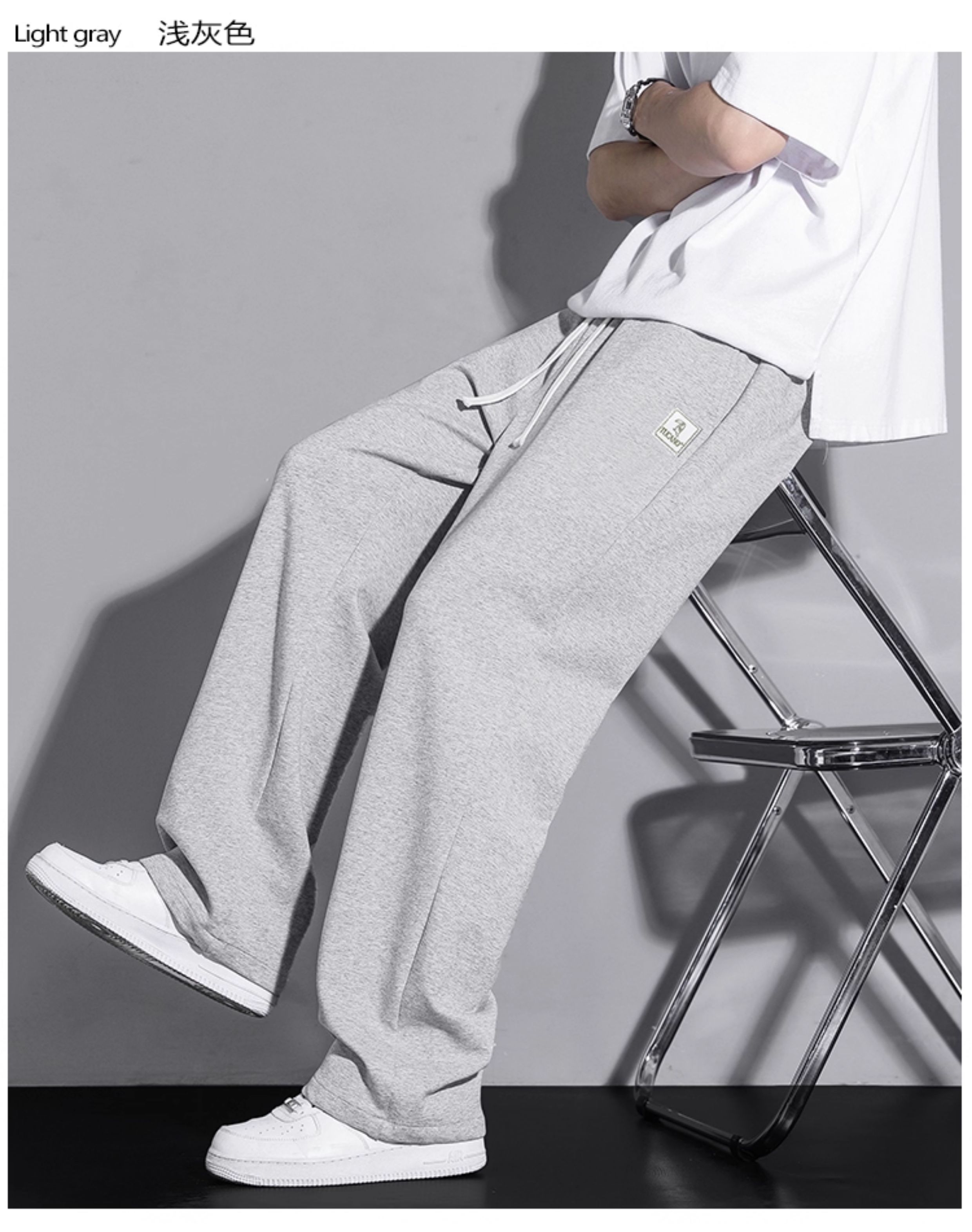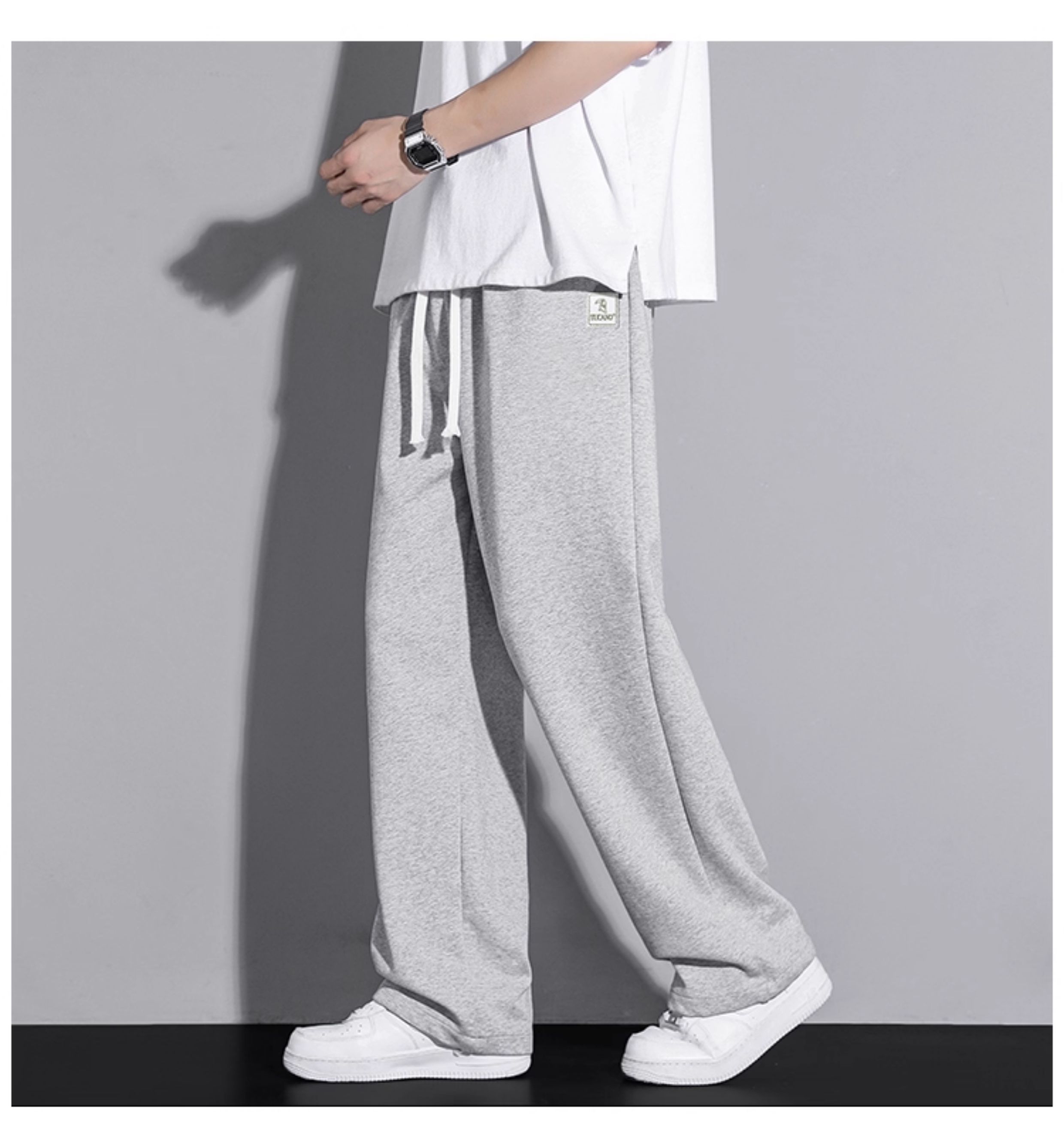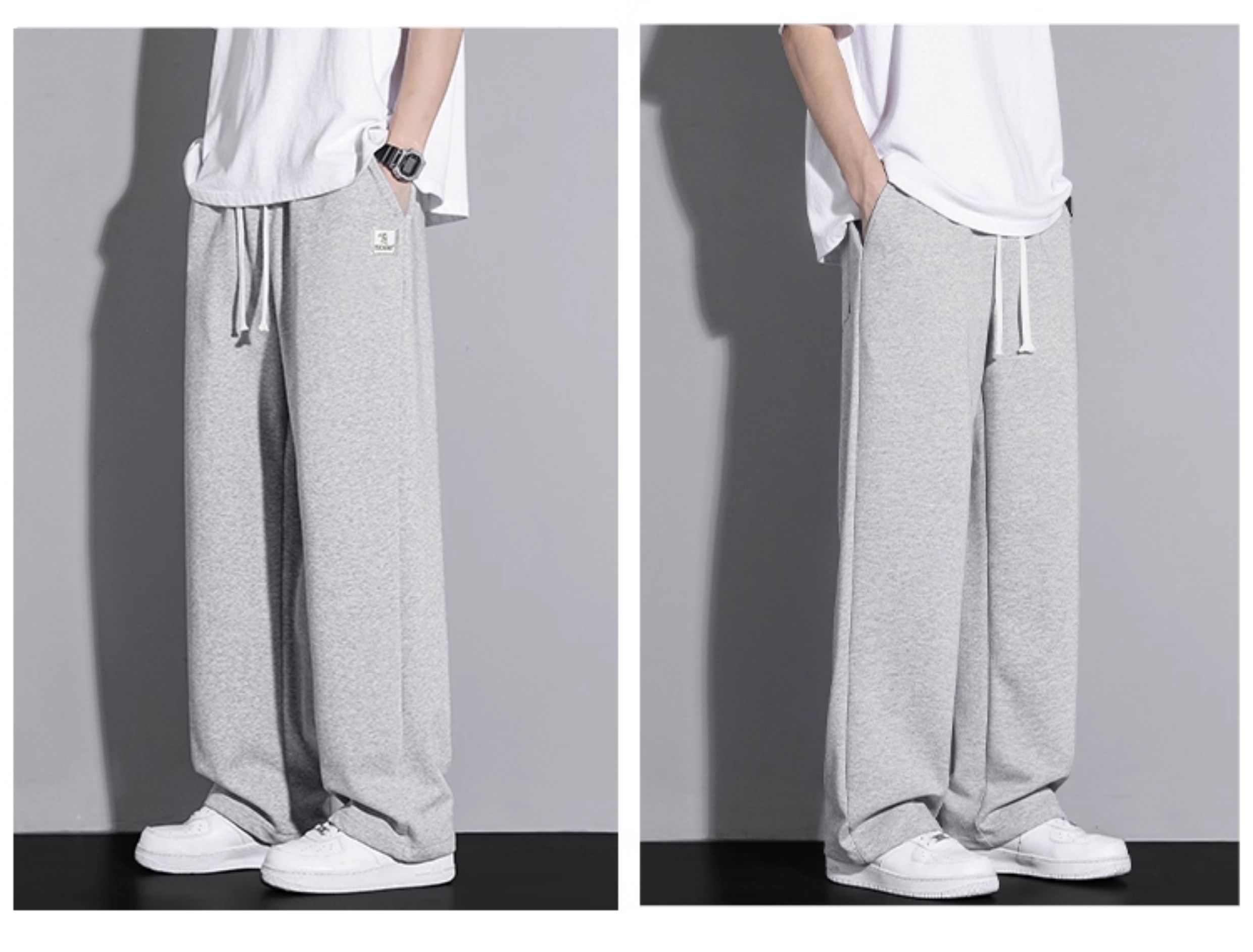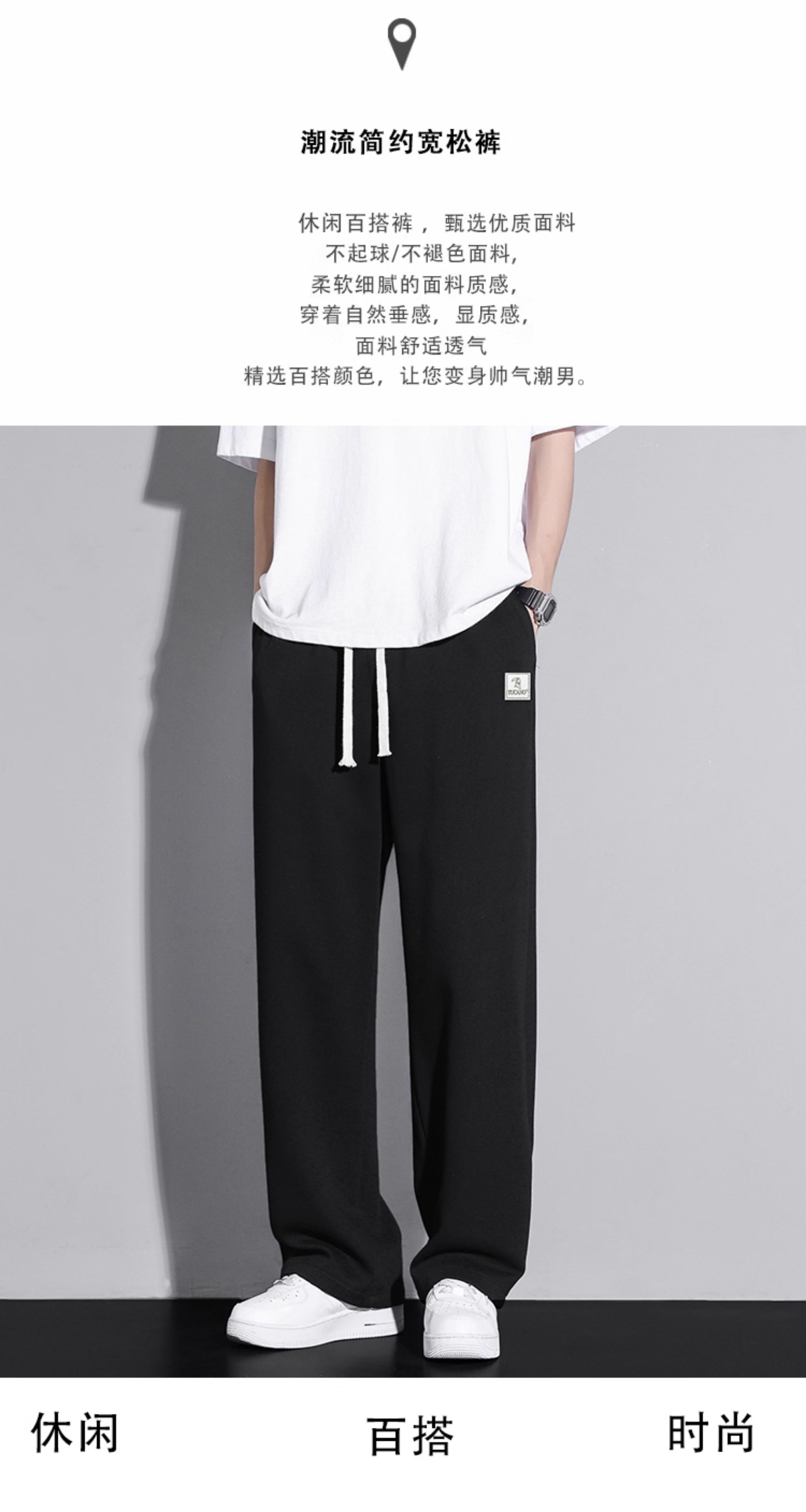 啄木鳥垂感寬松休閒褲男士白色褲子秋冬2025新款加絨加厚運動褲K