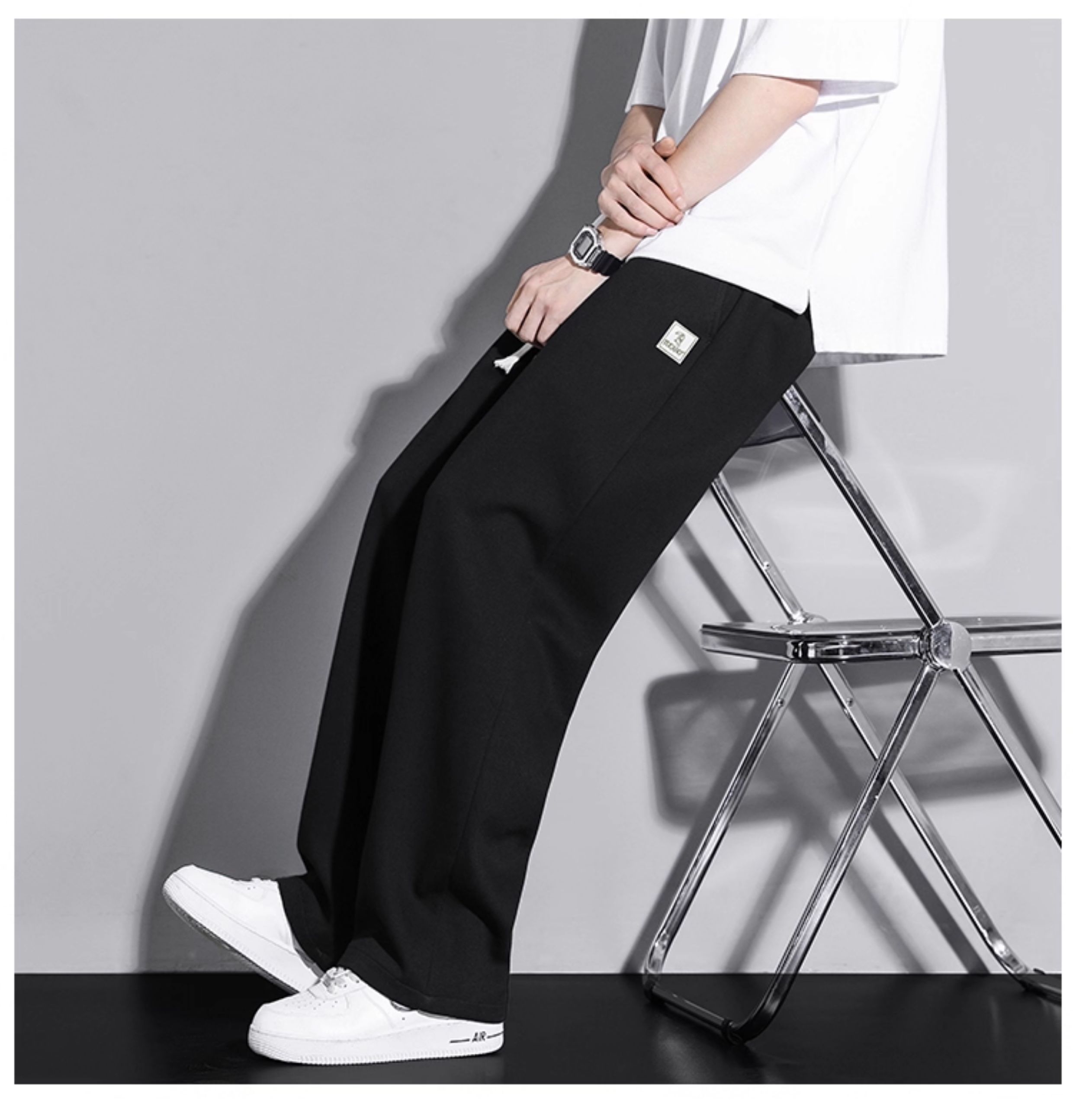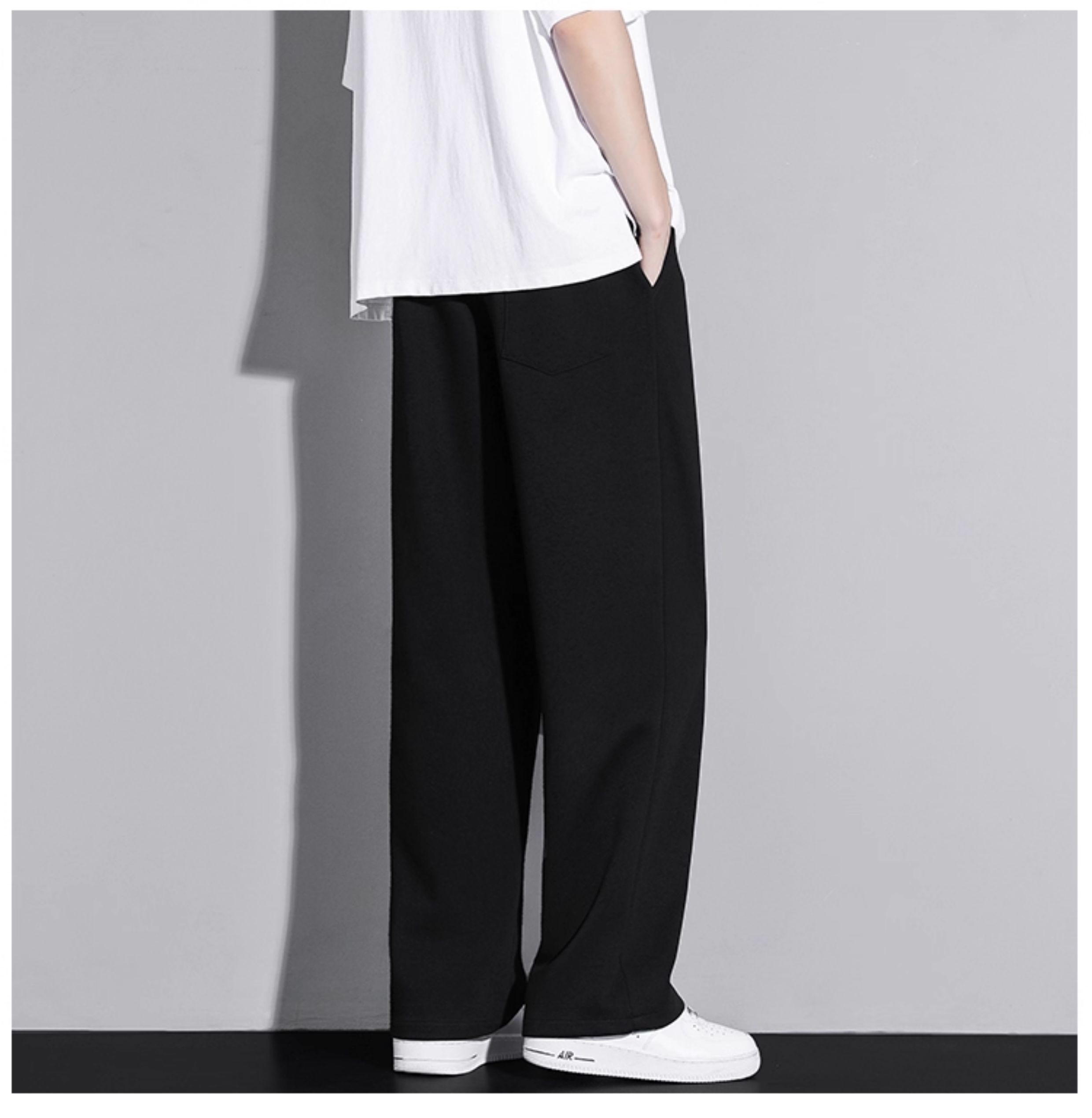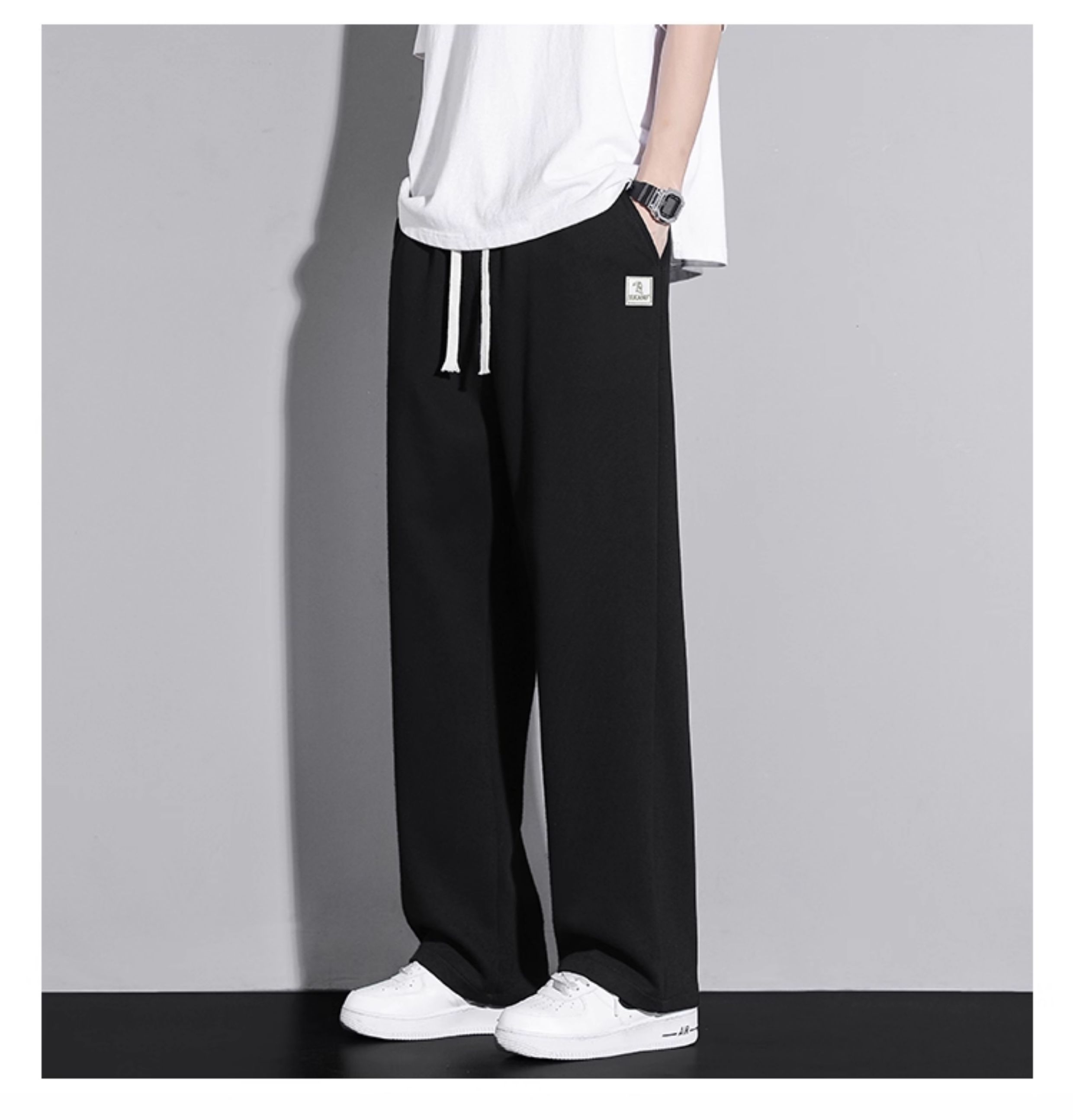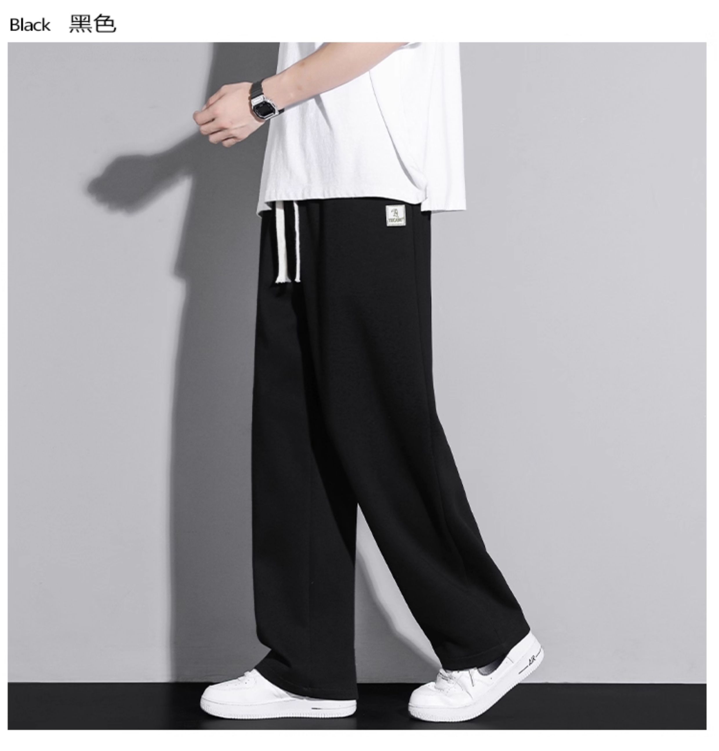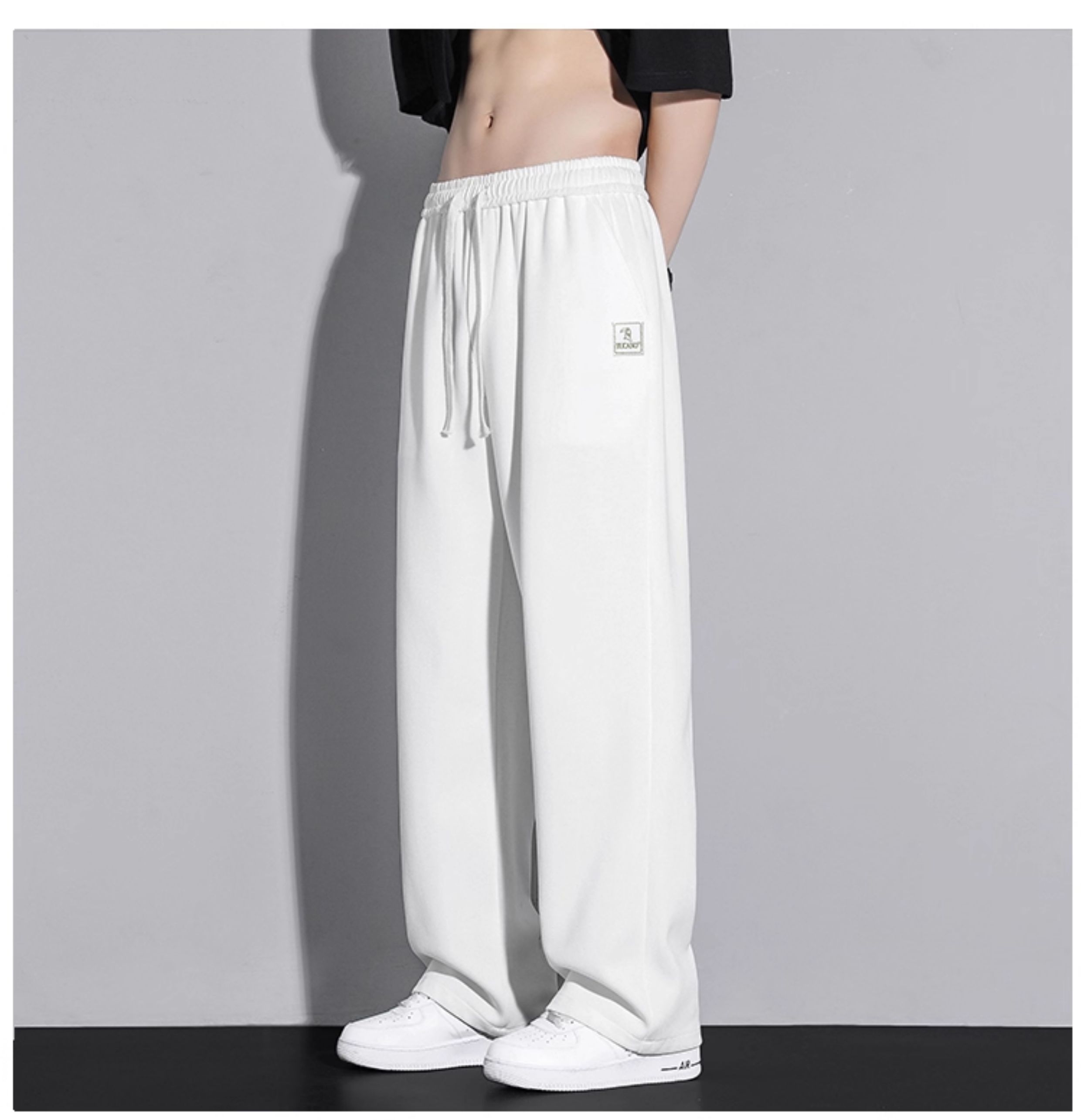 啄木鳥垂感寬松休閒褲男士白色褲子秋冬2025新款加絨加厚運動褲K