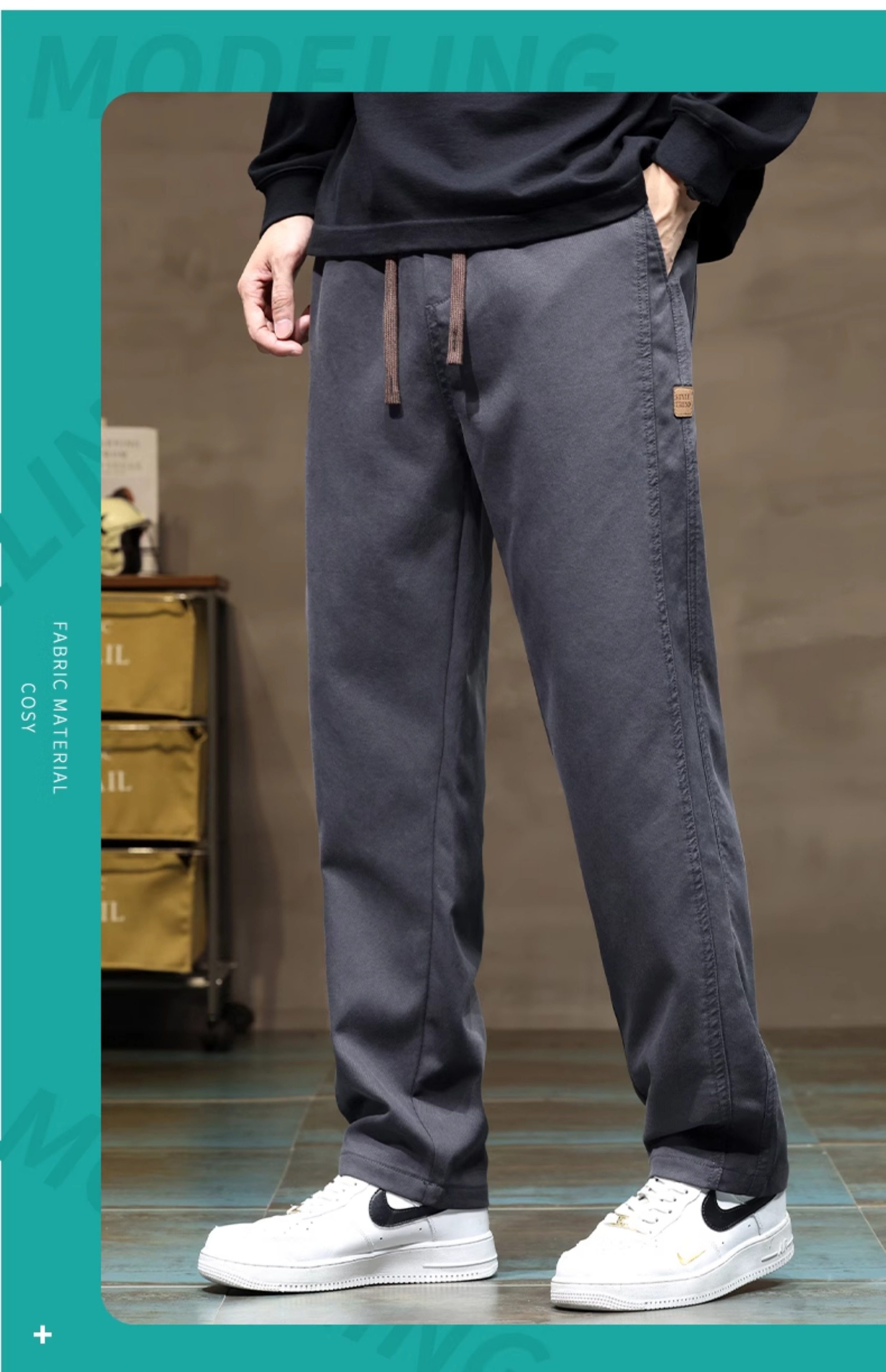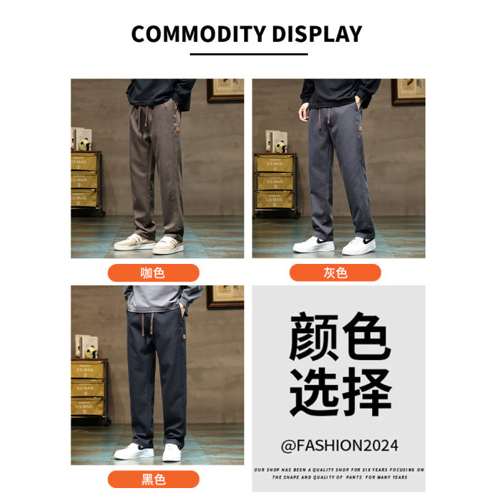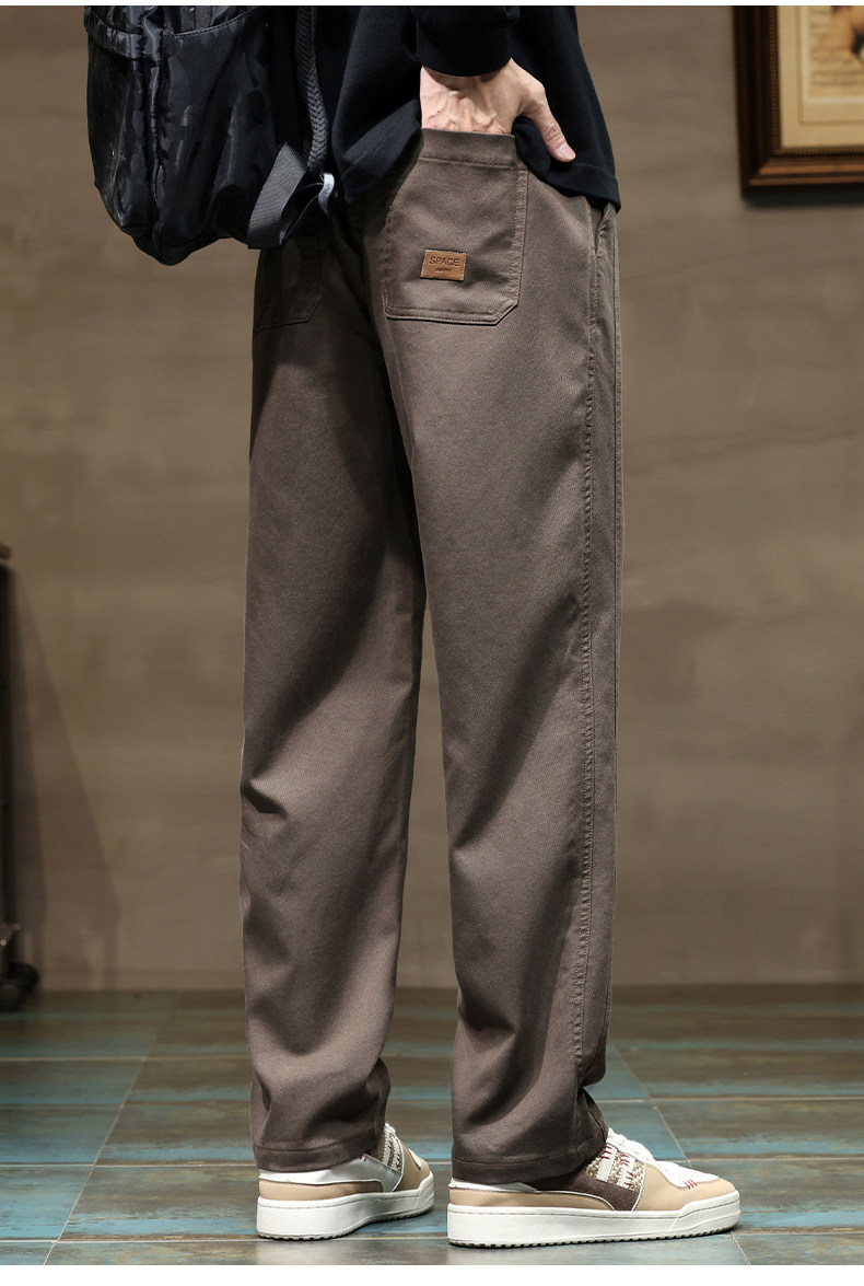啄木鳥秋冬季新款寬鬆休閒褲子男冬季加絨加厚直筒運動褲工裝褲K