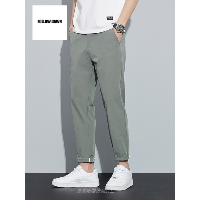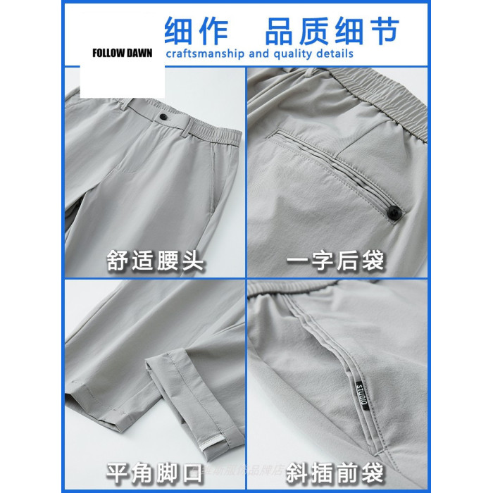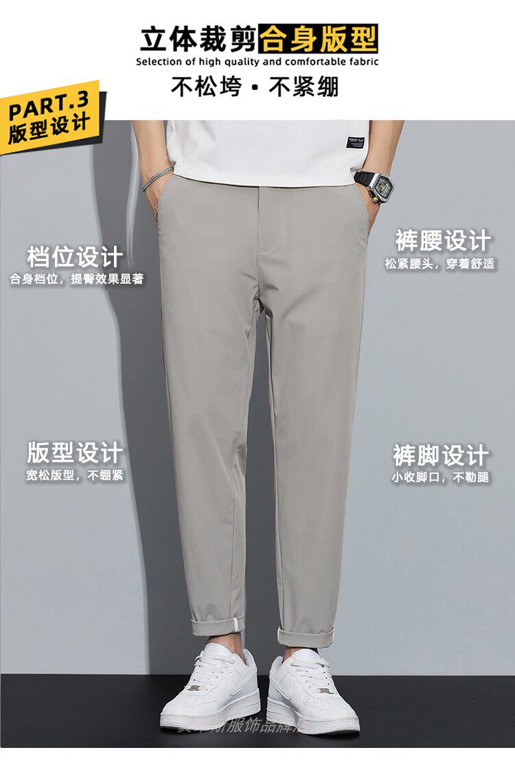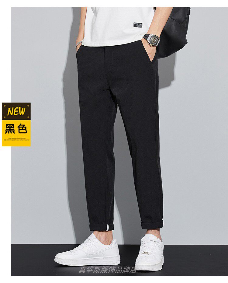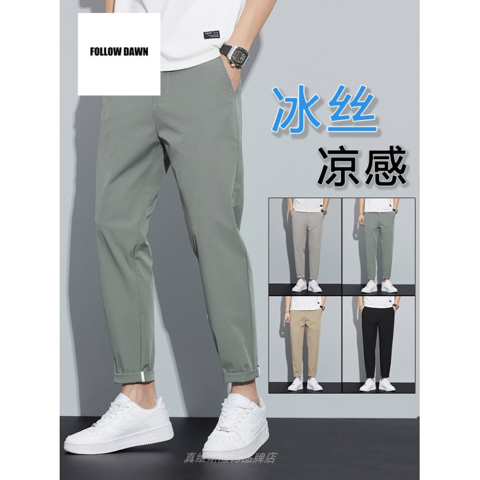 冰絲褲子男款夏季休閒薄款百搭直筒西褲男士夏天九分運動