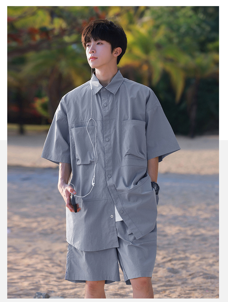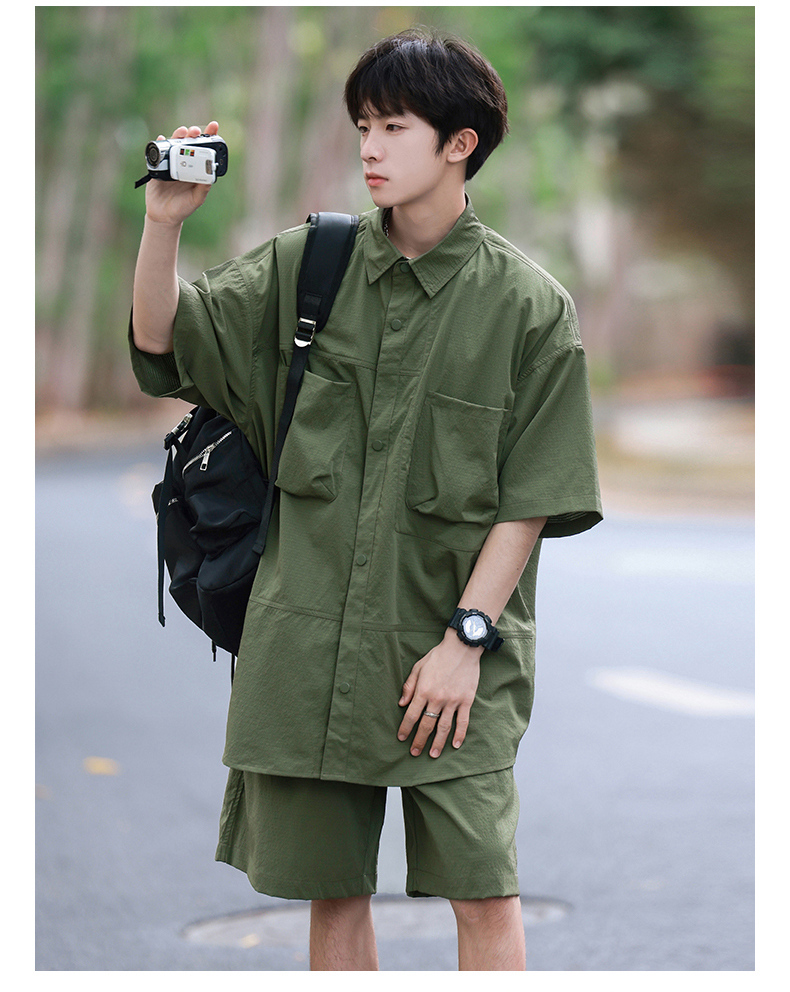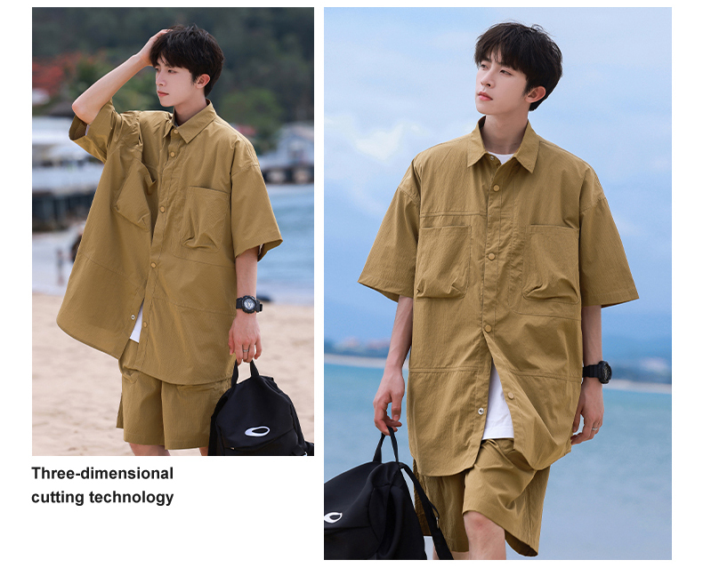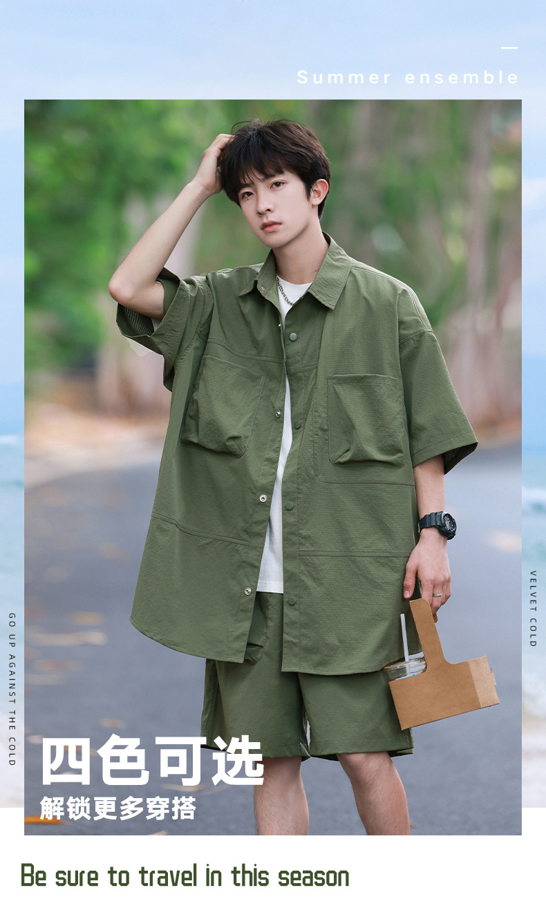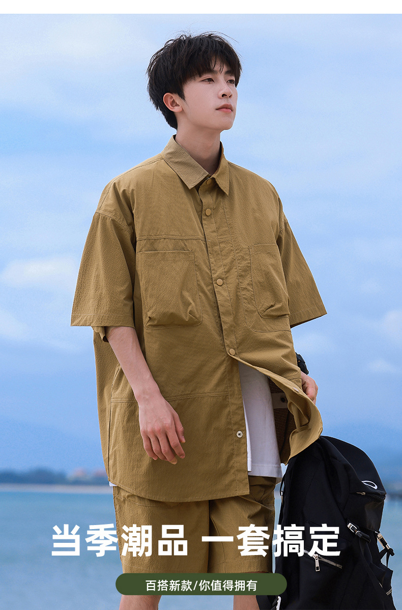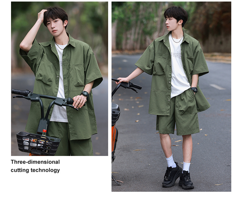WASSUP NURAYA潮牌t恤襯衫男士夏季寬松休閒短袖套裝痞帥搭配一套
