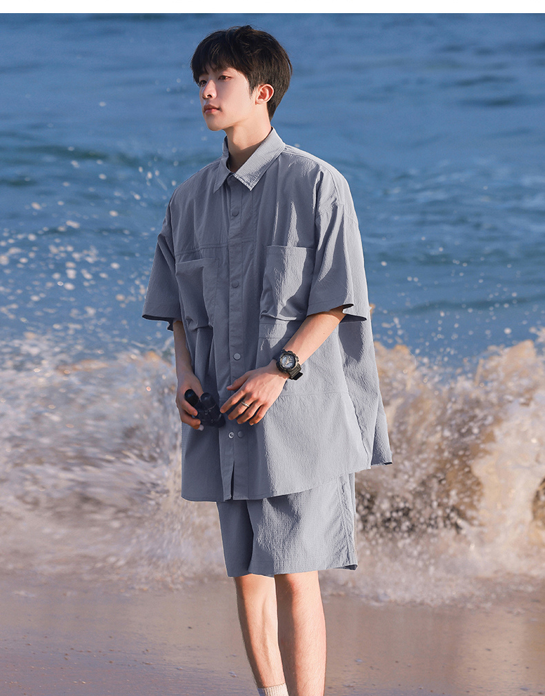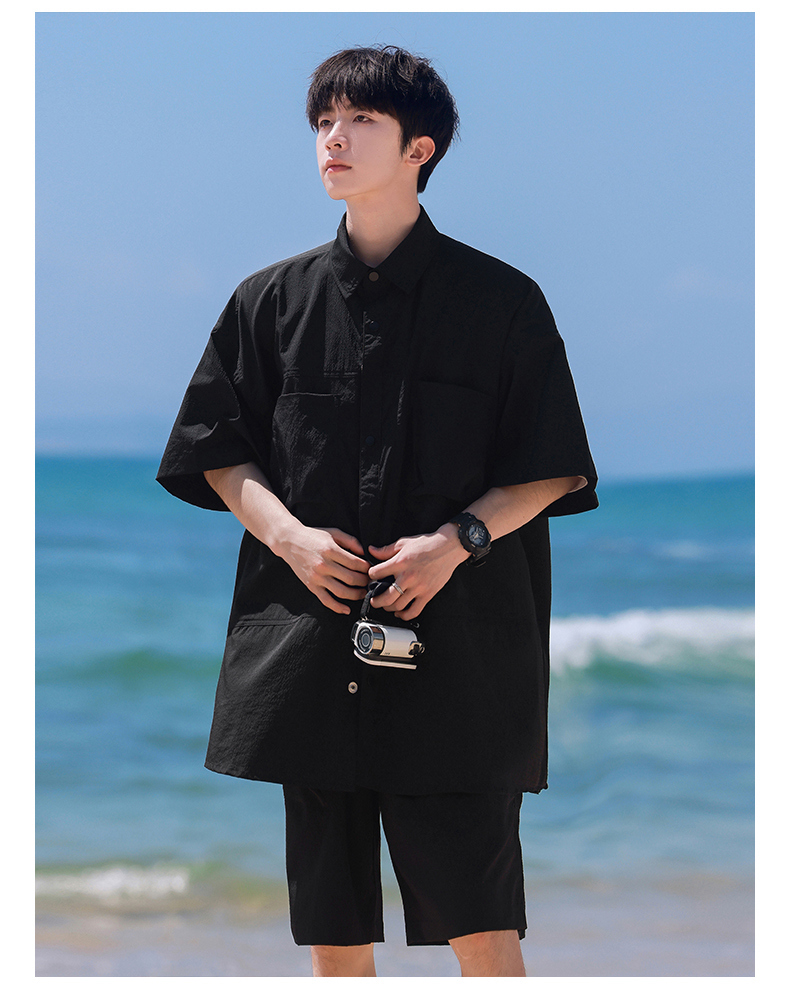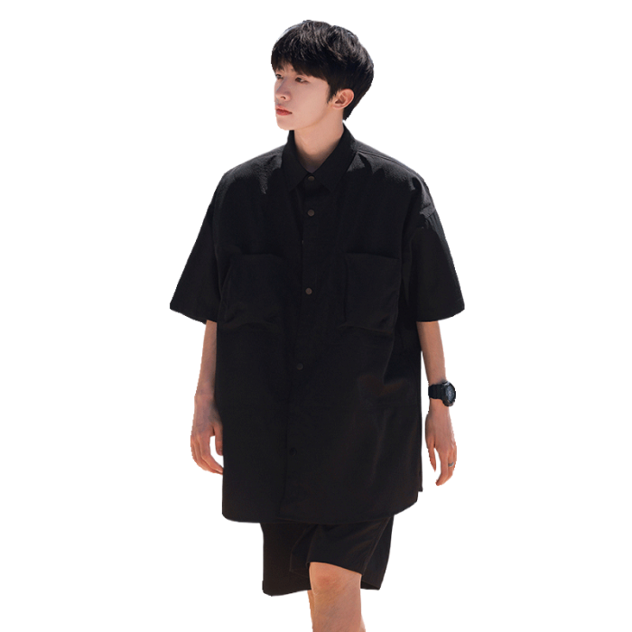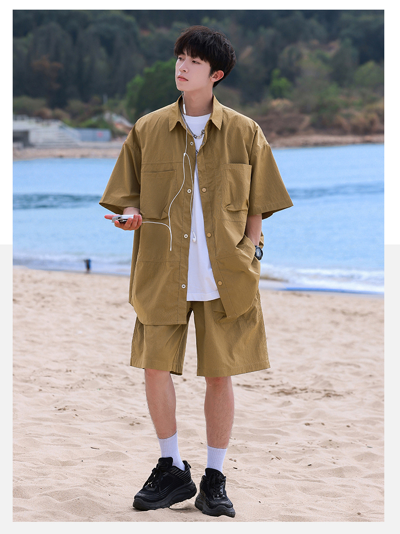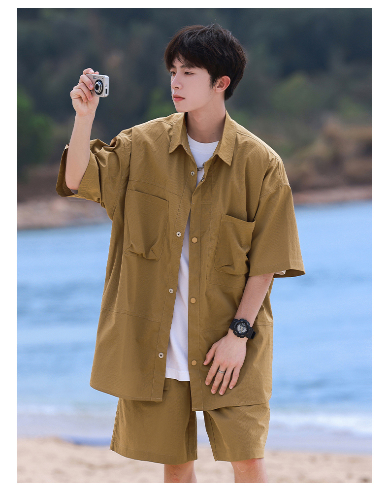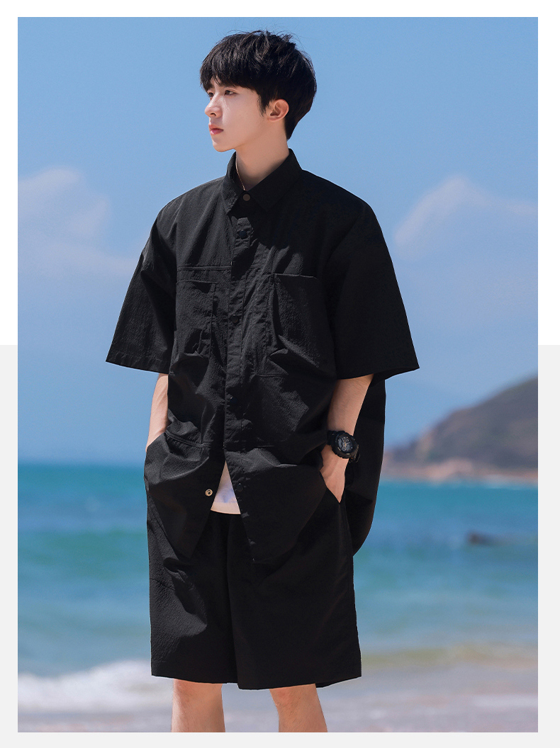 WASSUP NURAYA潮牌t恤襯衫男士夏季寬松休閒短袖套裝痞帥搭配一套