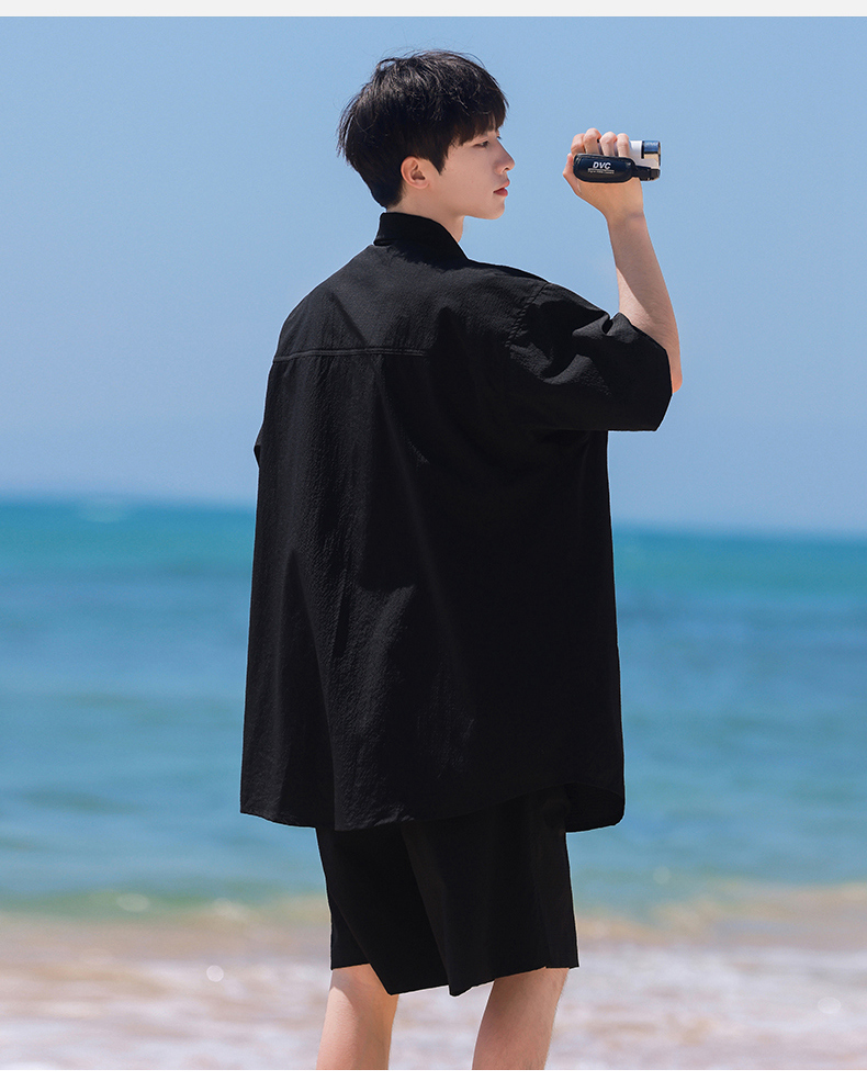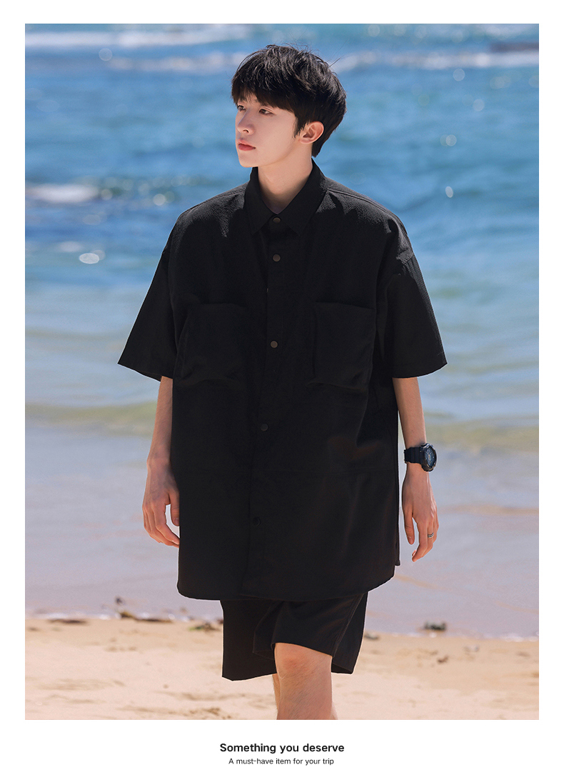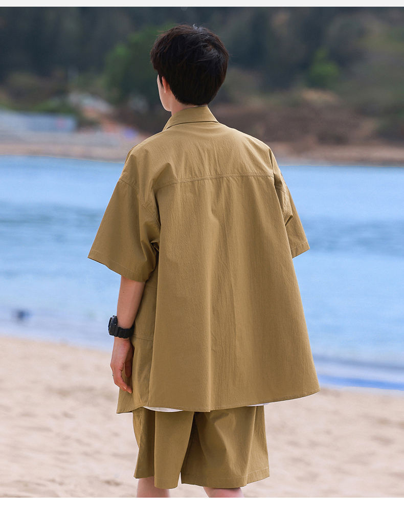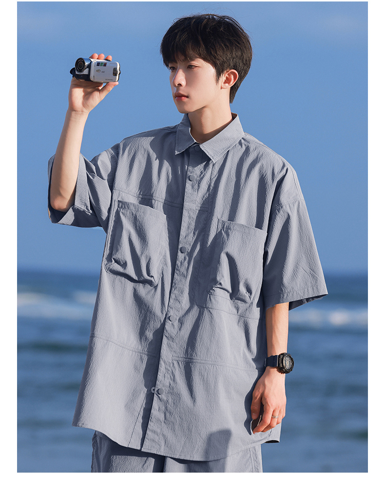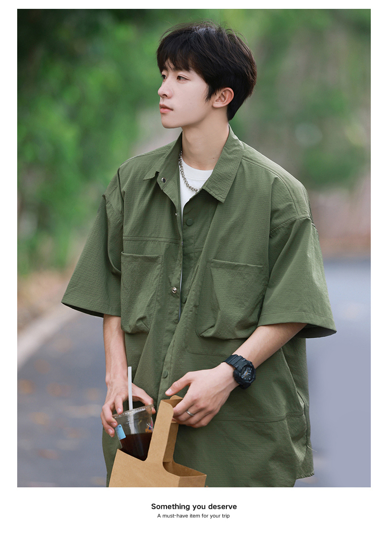 WASSUP NURAYA潮牌t恤襯衫男士夏季寬松休閒短袖套裝痞帥搭配一套