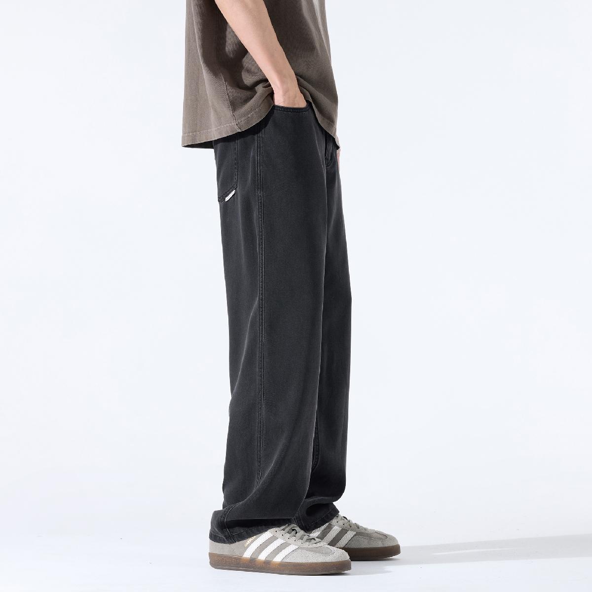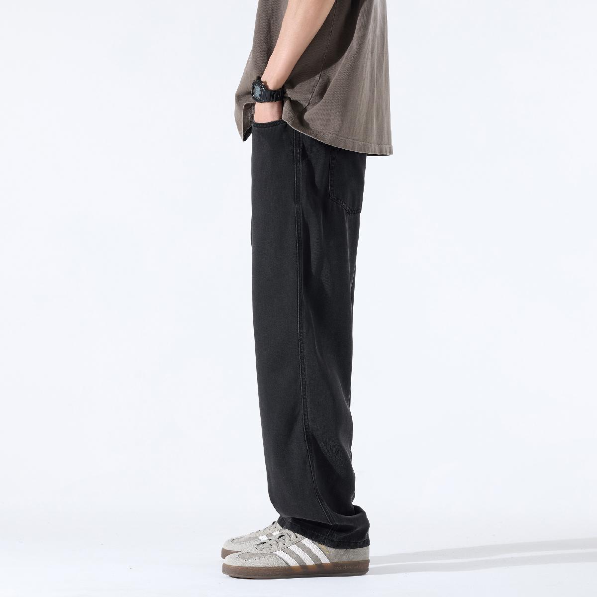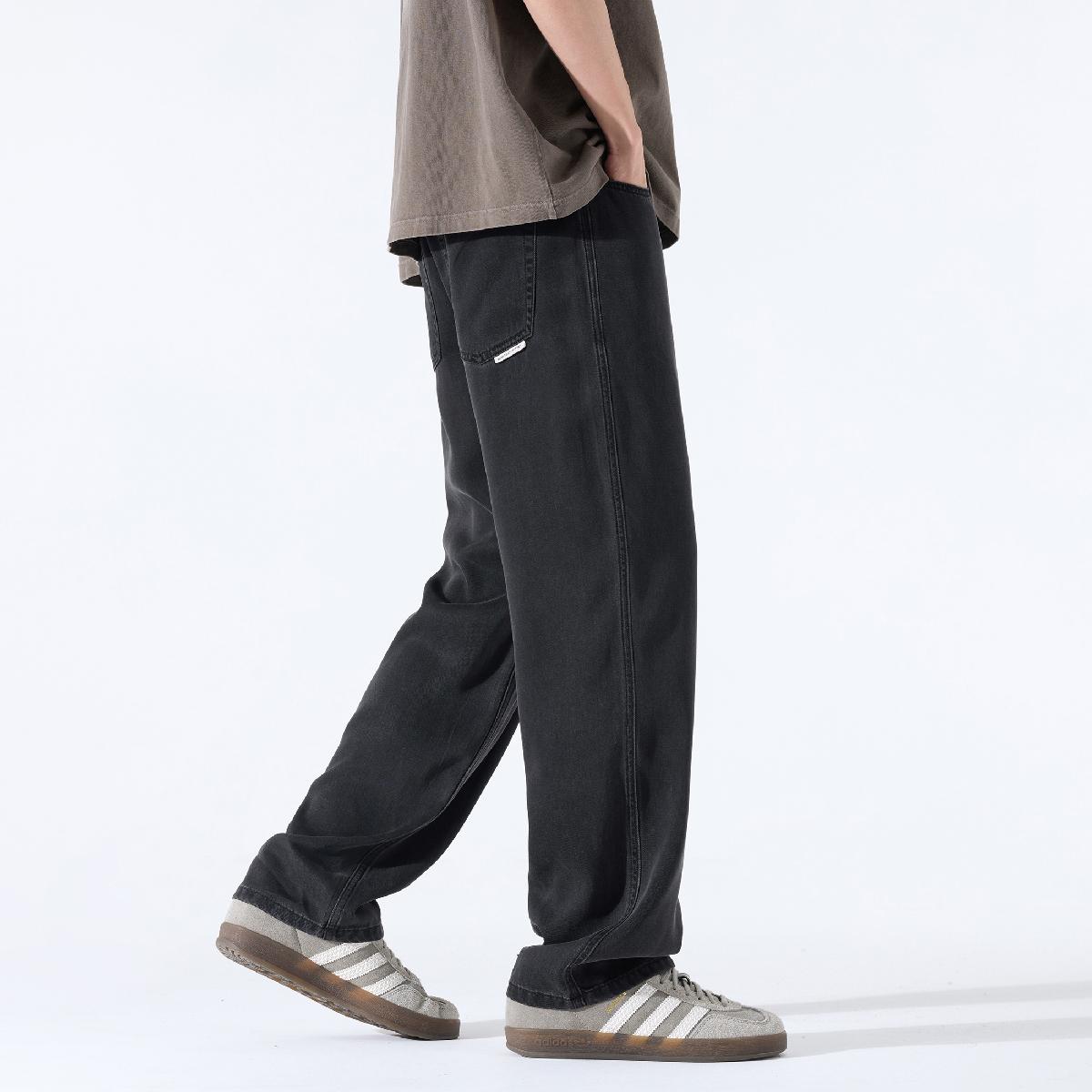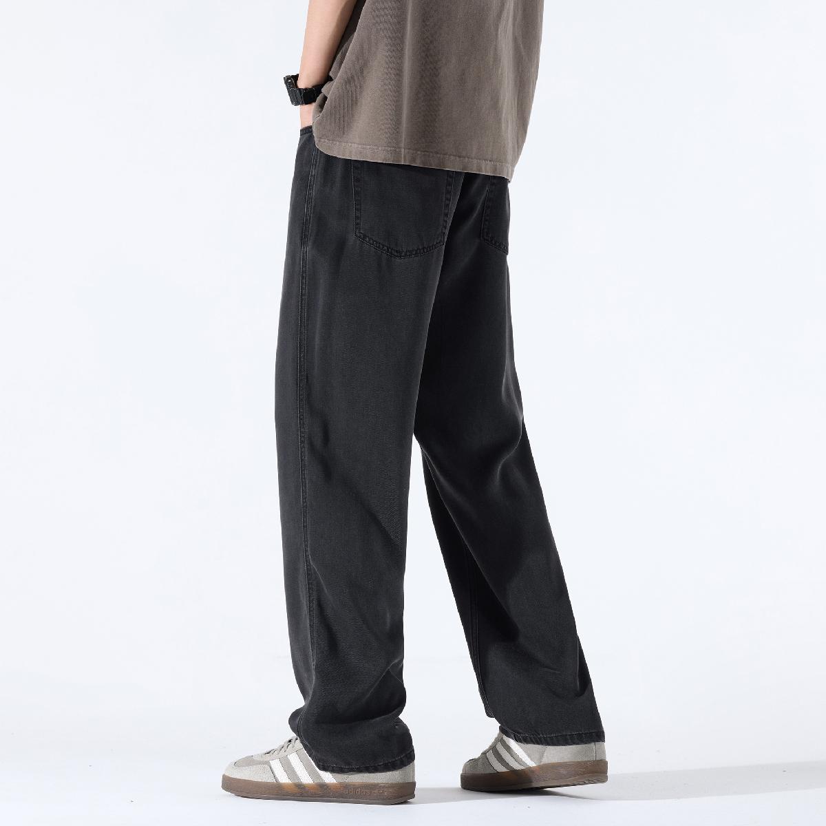 萊賽爾寬松大碼濶腿褲天絲牛仔褲男垂感美式高街直筒2025春夏薄款