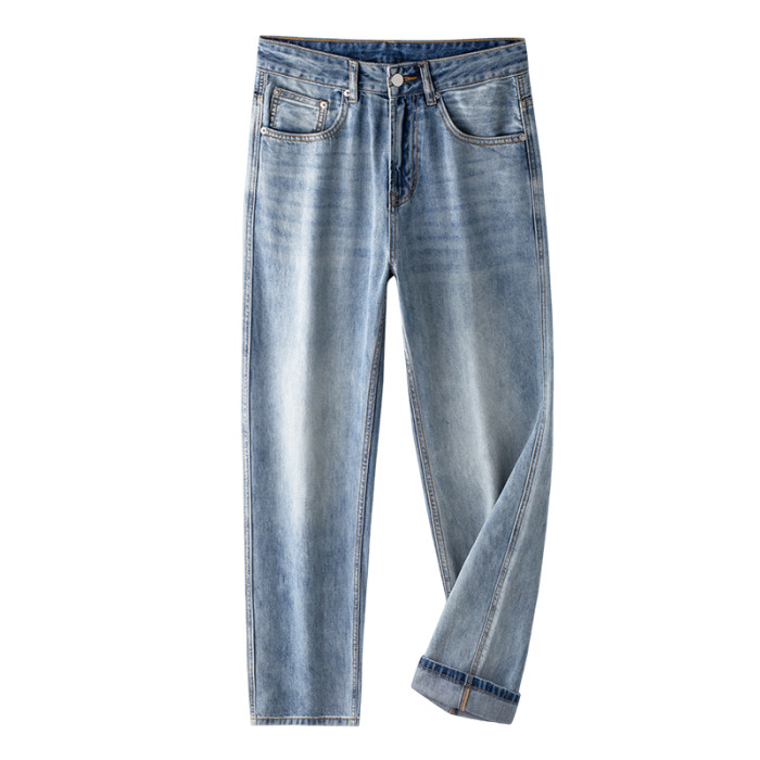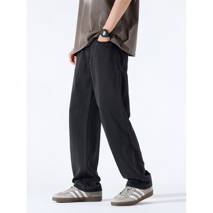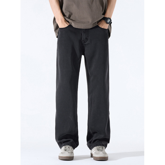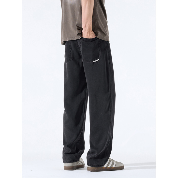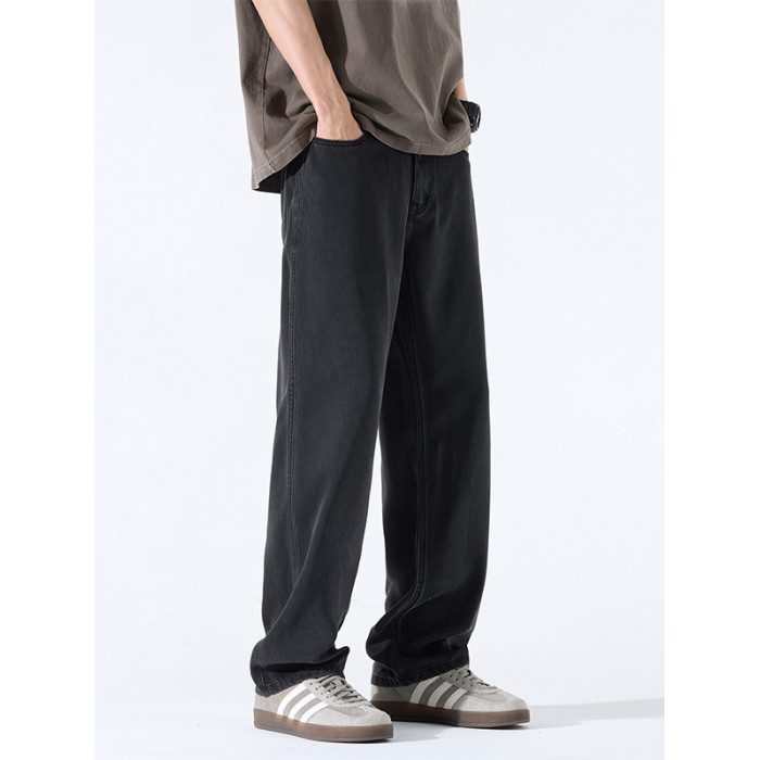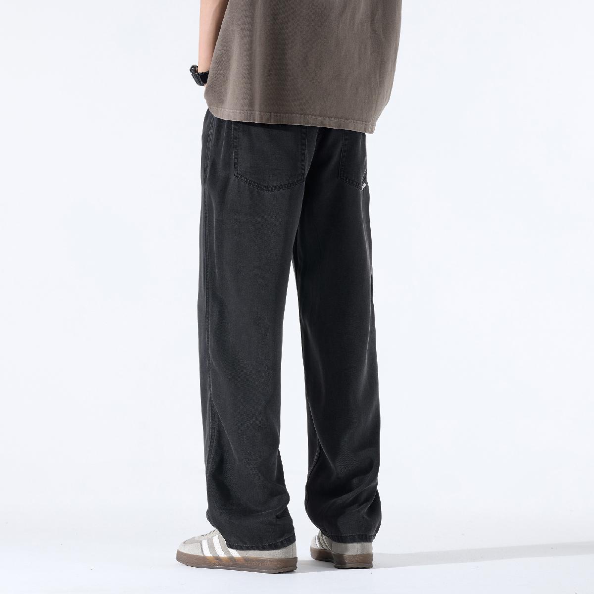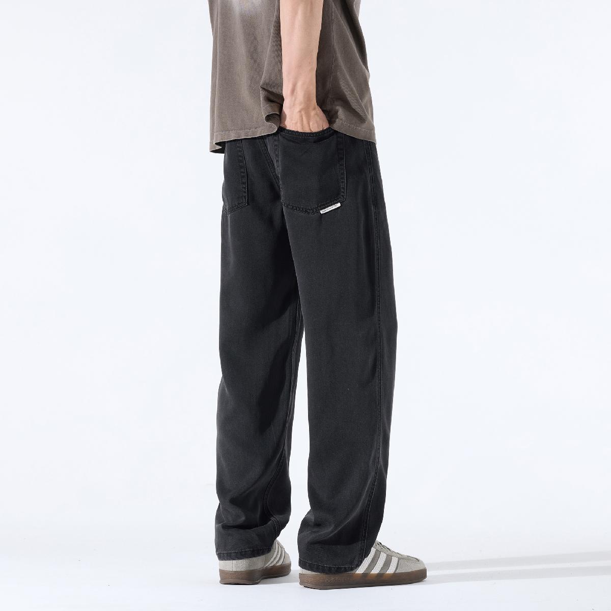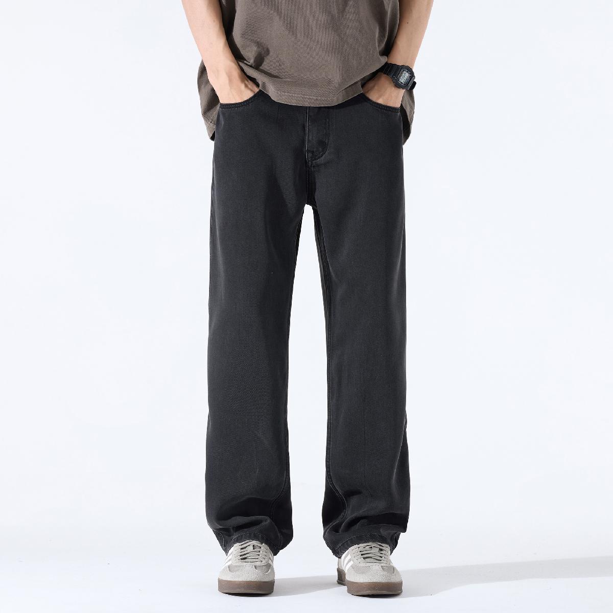 萊賽爾寬松大碼濶腿褲天絲牛仔褲男垂感美式高街直筒2025春夏薄款