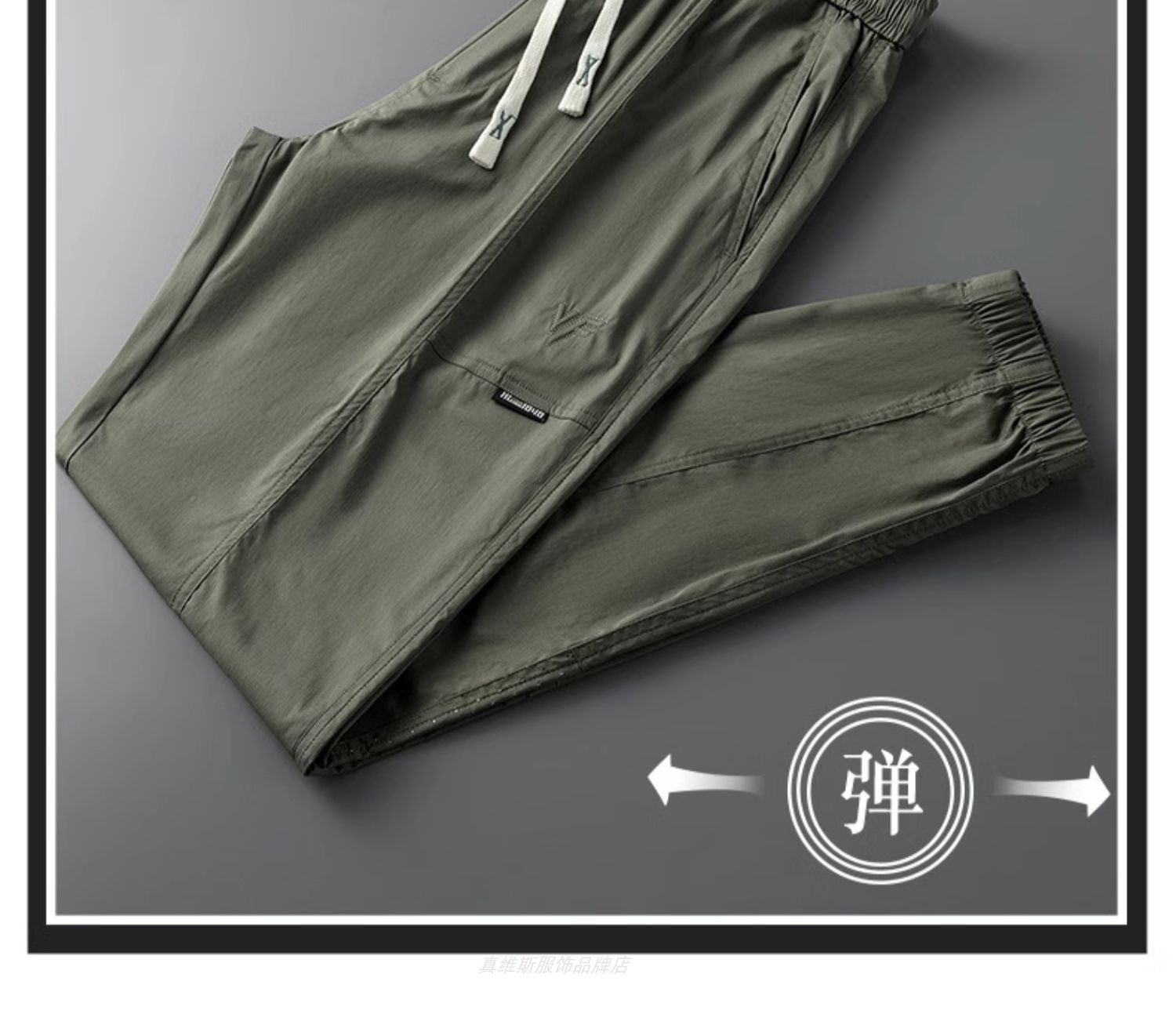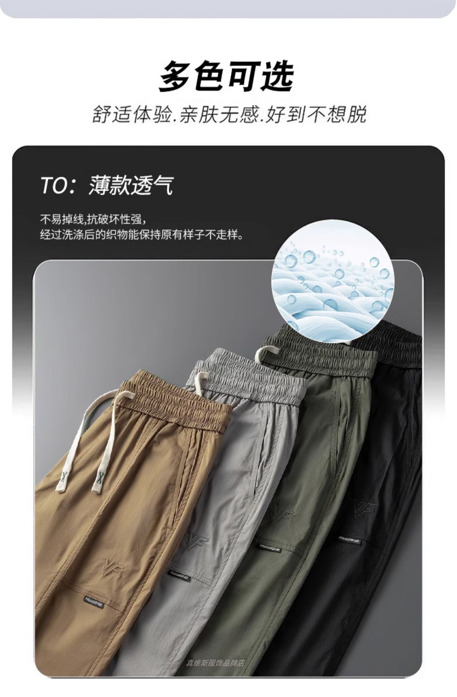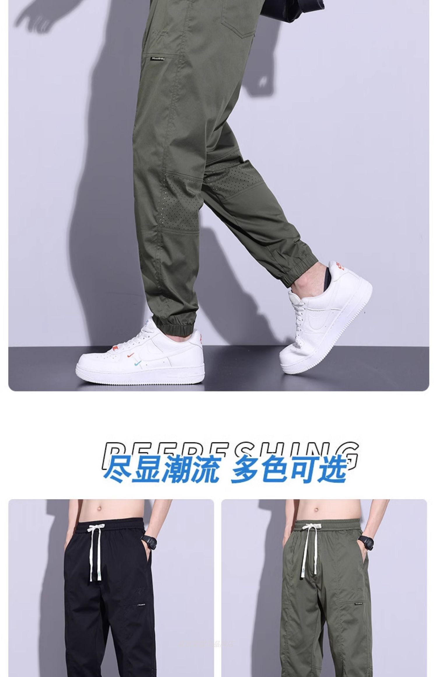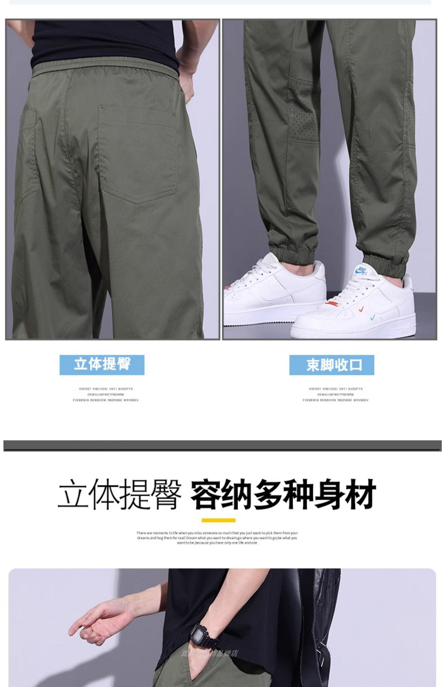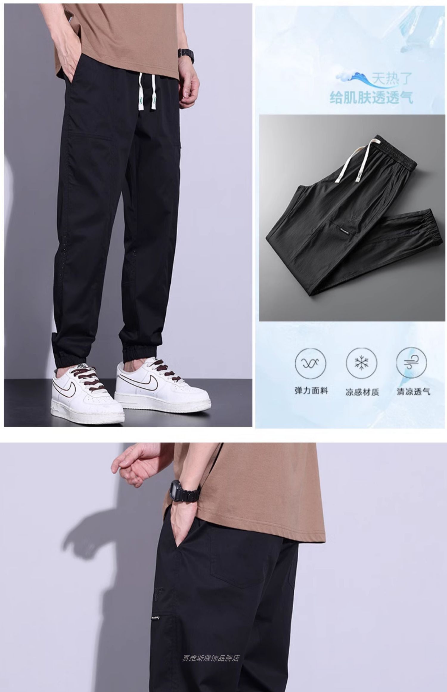 休閒褲2025夏冰絲薄款潮牌束腳九分褲夏季速乾哈倫工裝褲子男