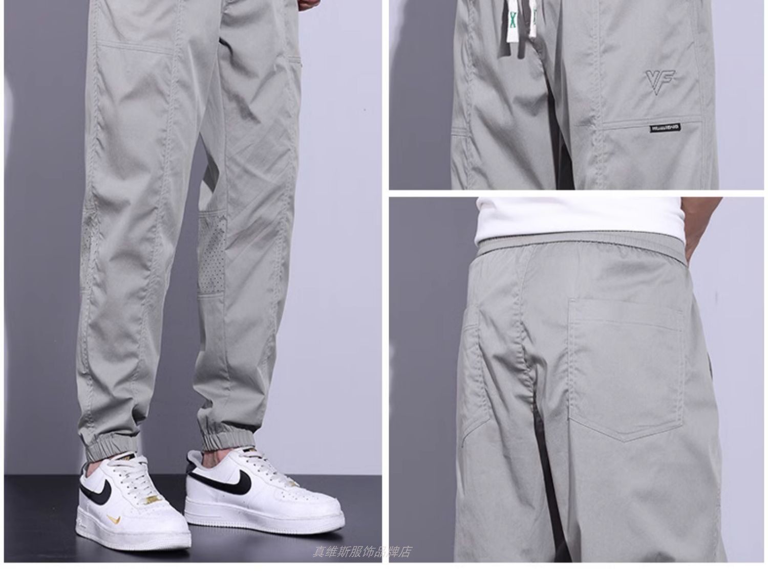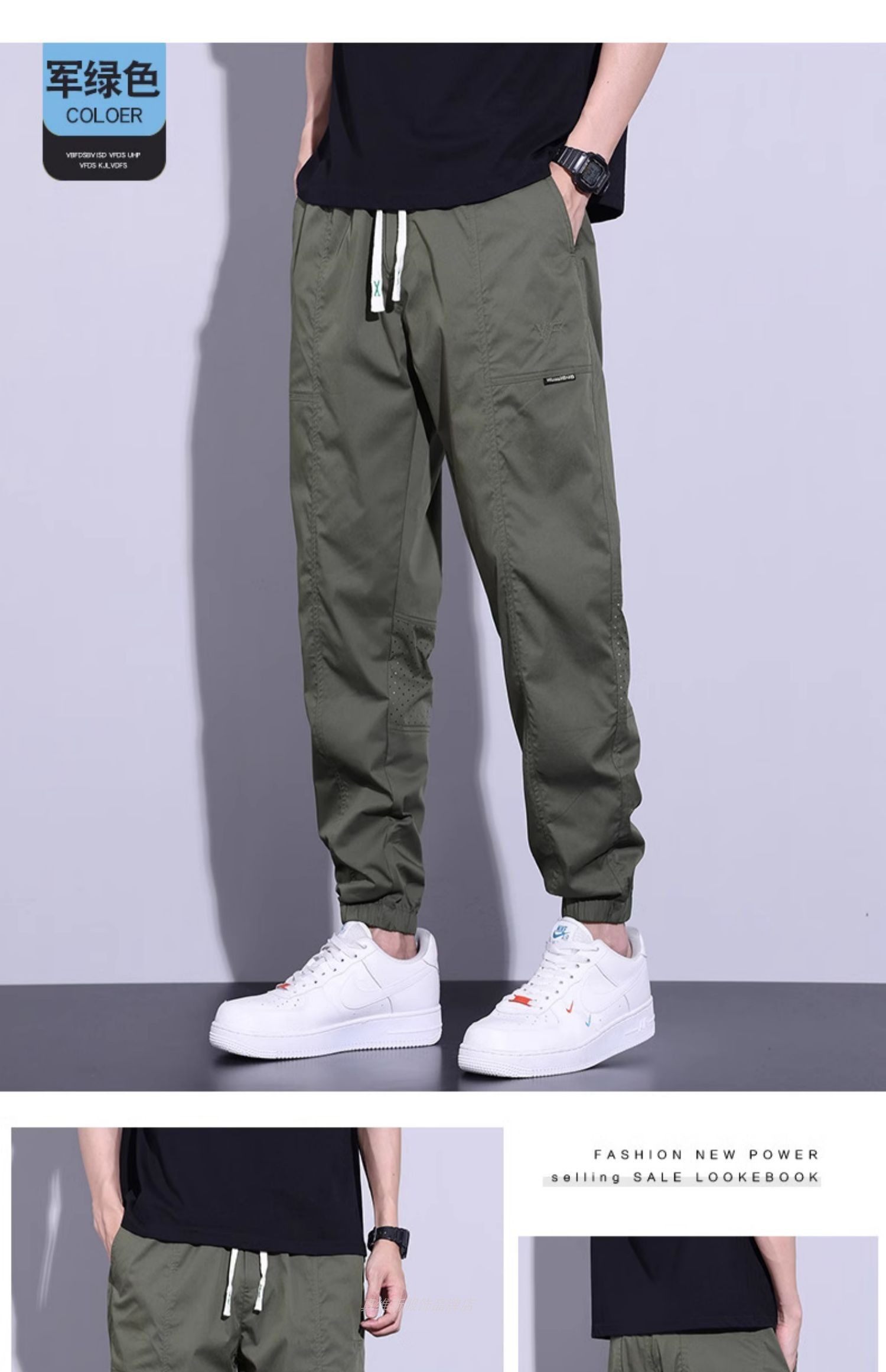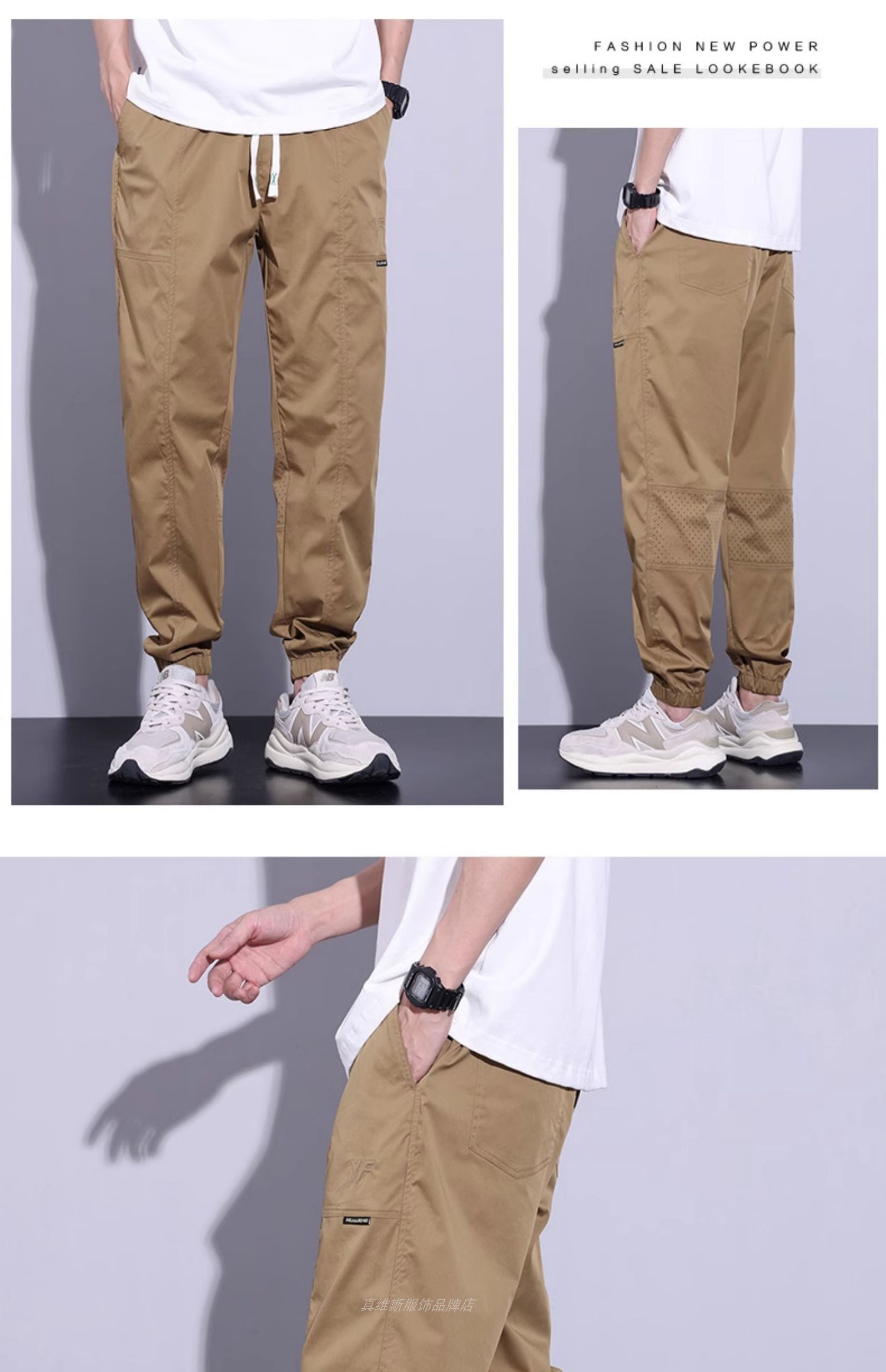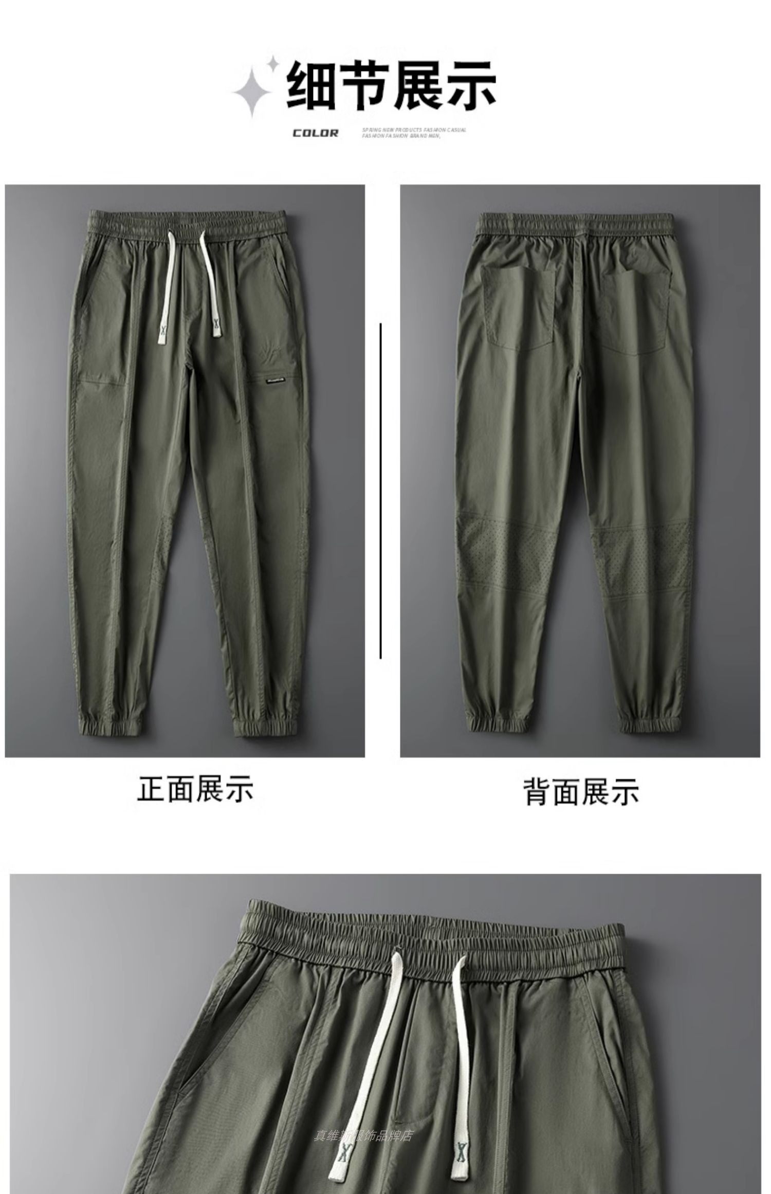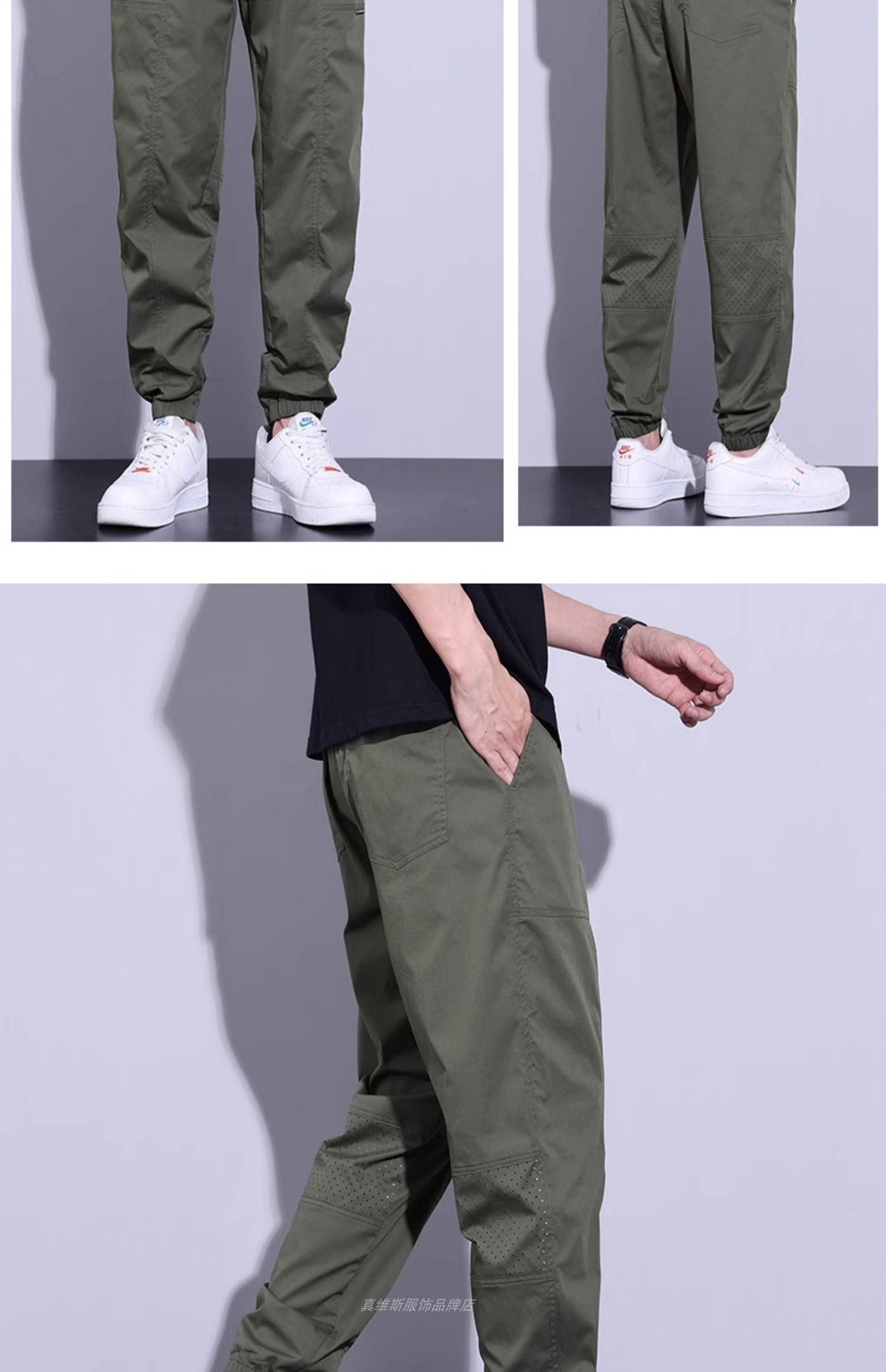休閒褲2025夏冰絲薄款潮牌束腳九分褲夏季速乾哈倫工裝褲子男