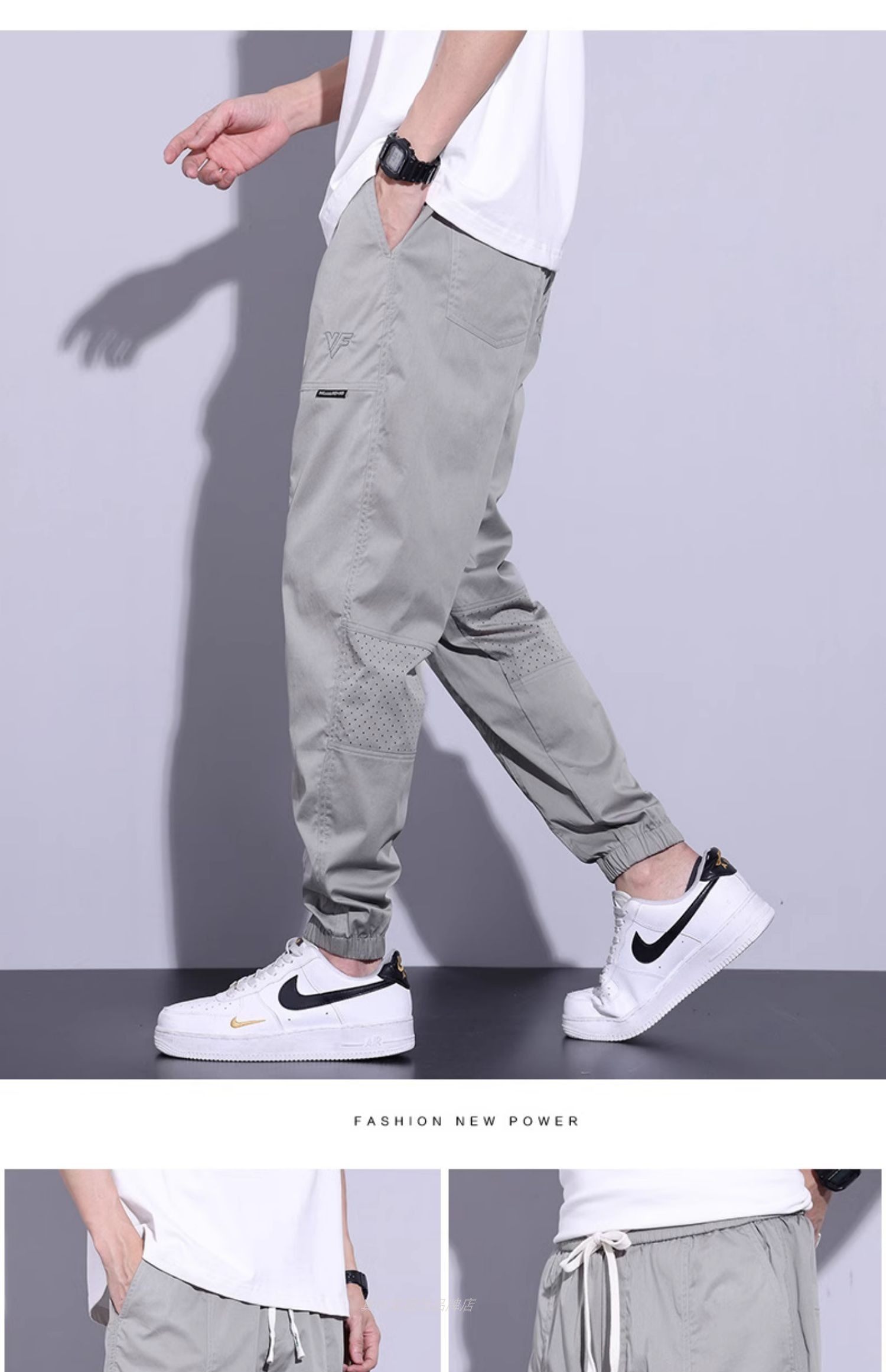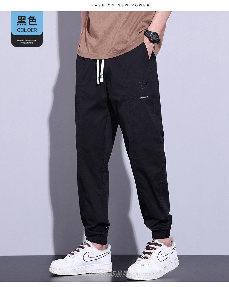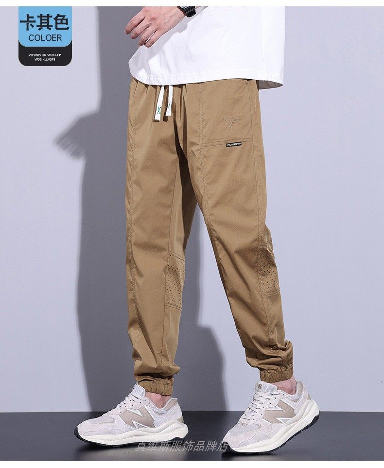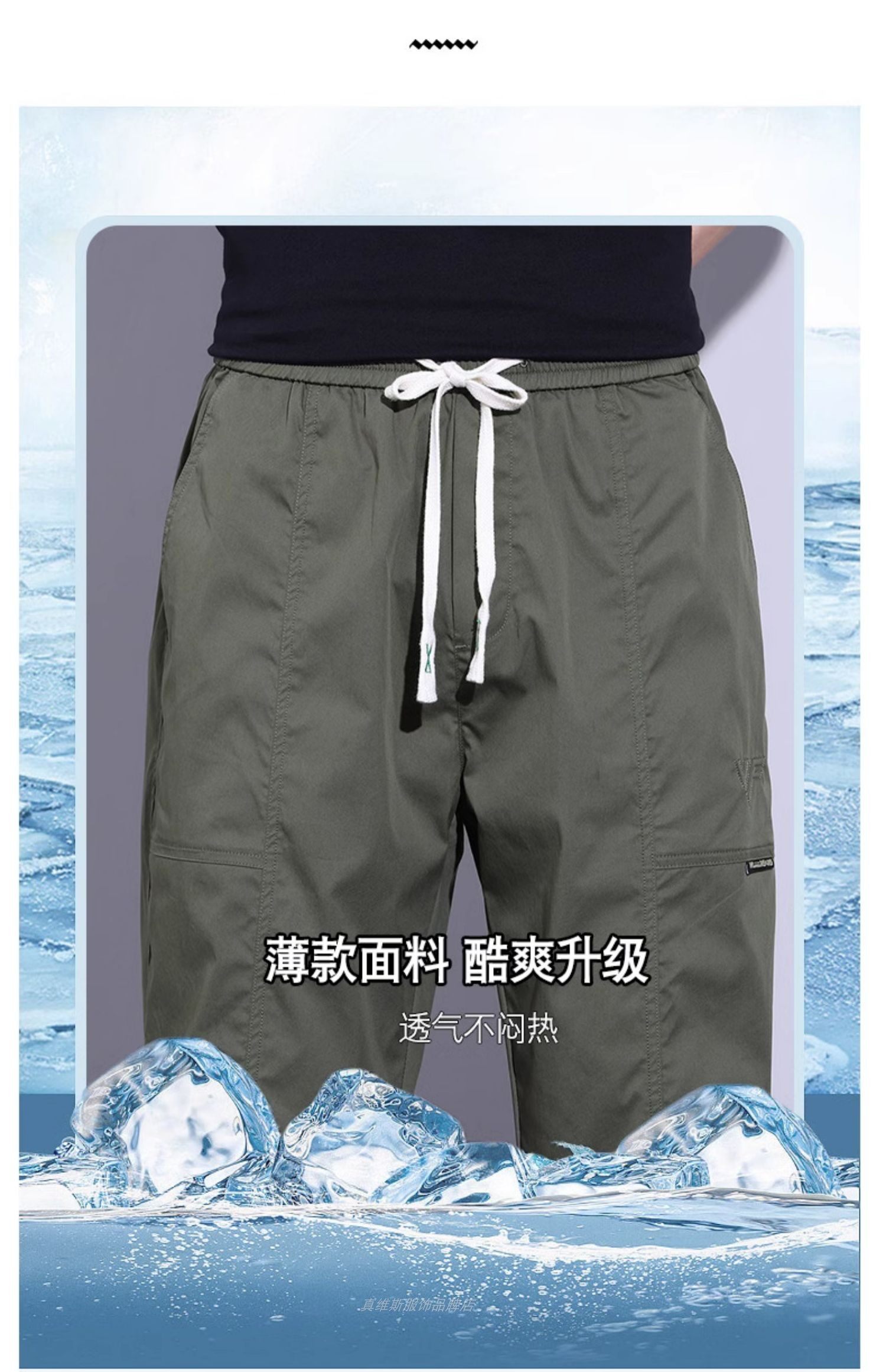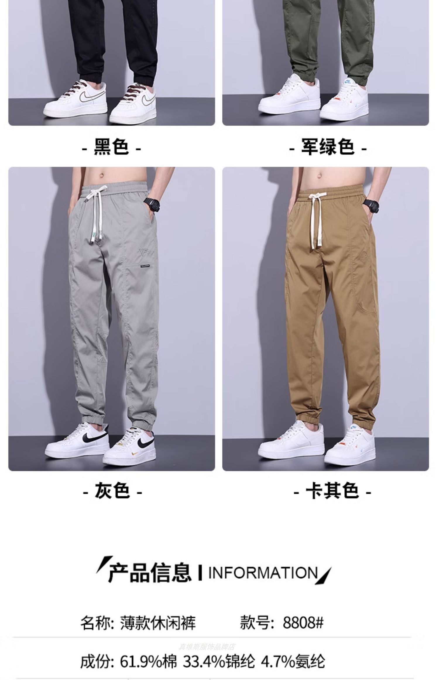 休閒褲2025夏冰絲薄款潮牌束腳九分褲夏季速乾哈倫工裝褲子男