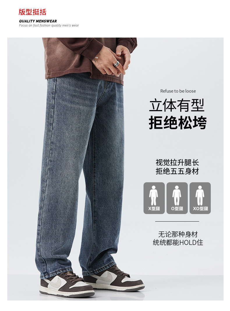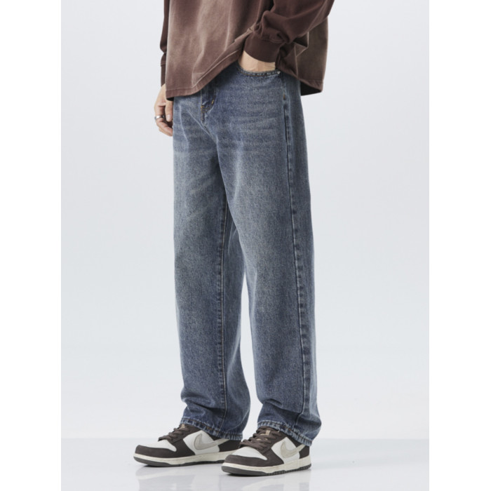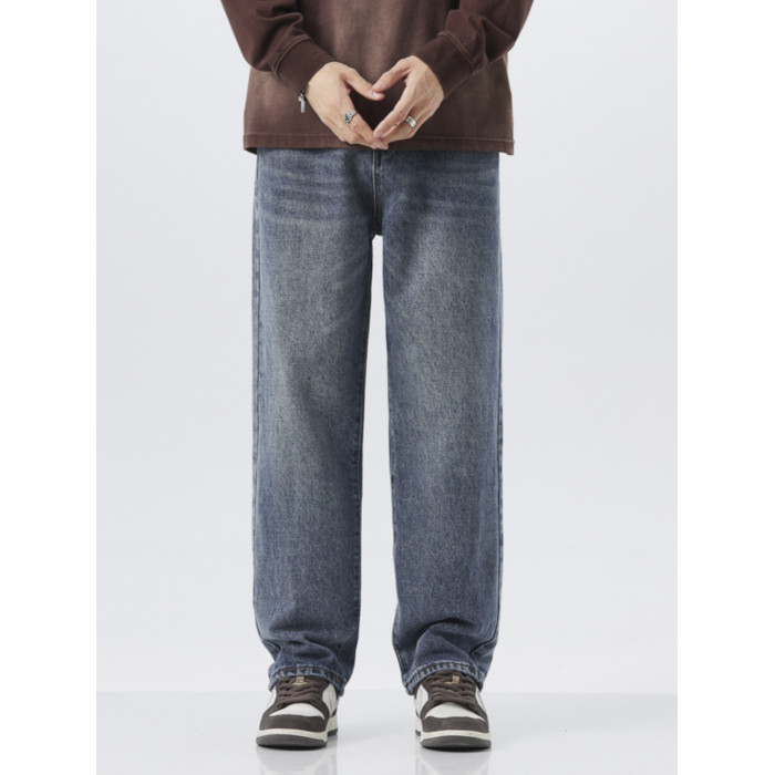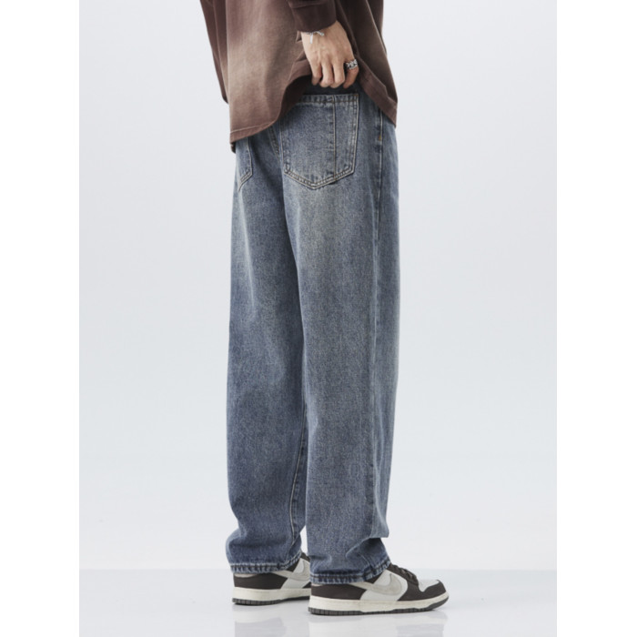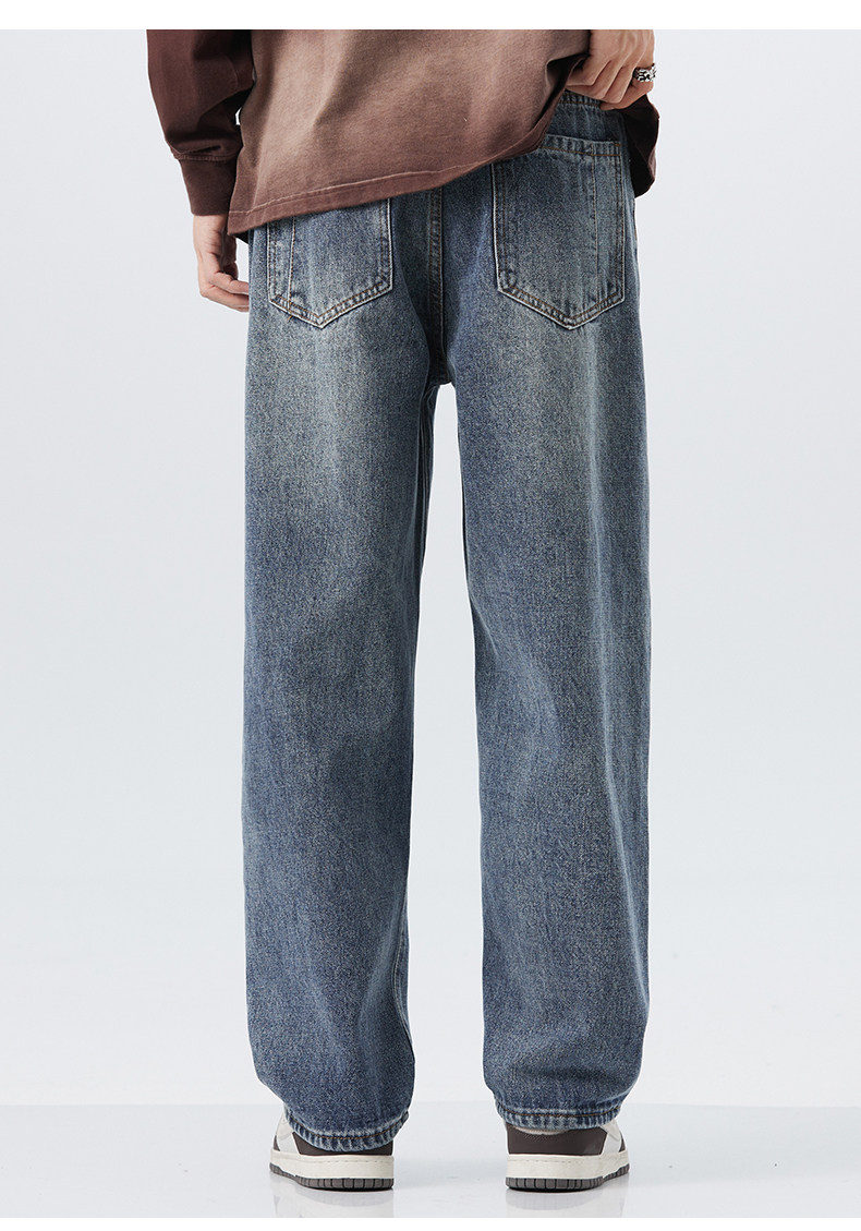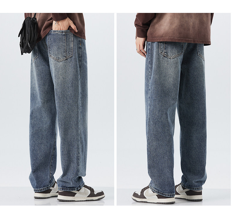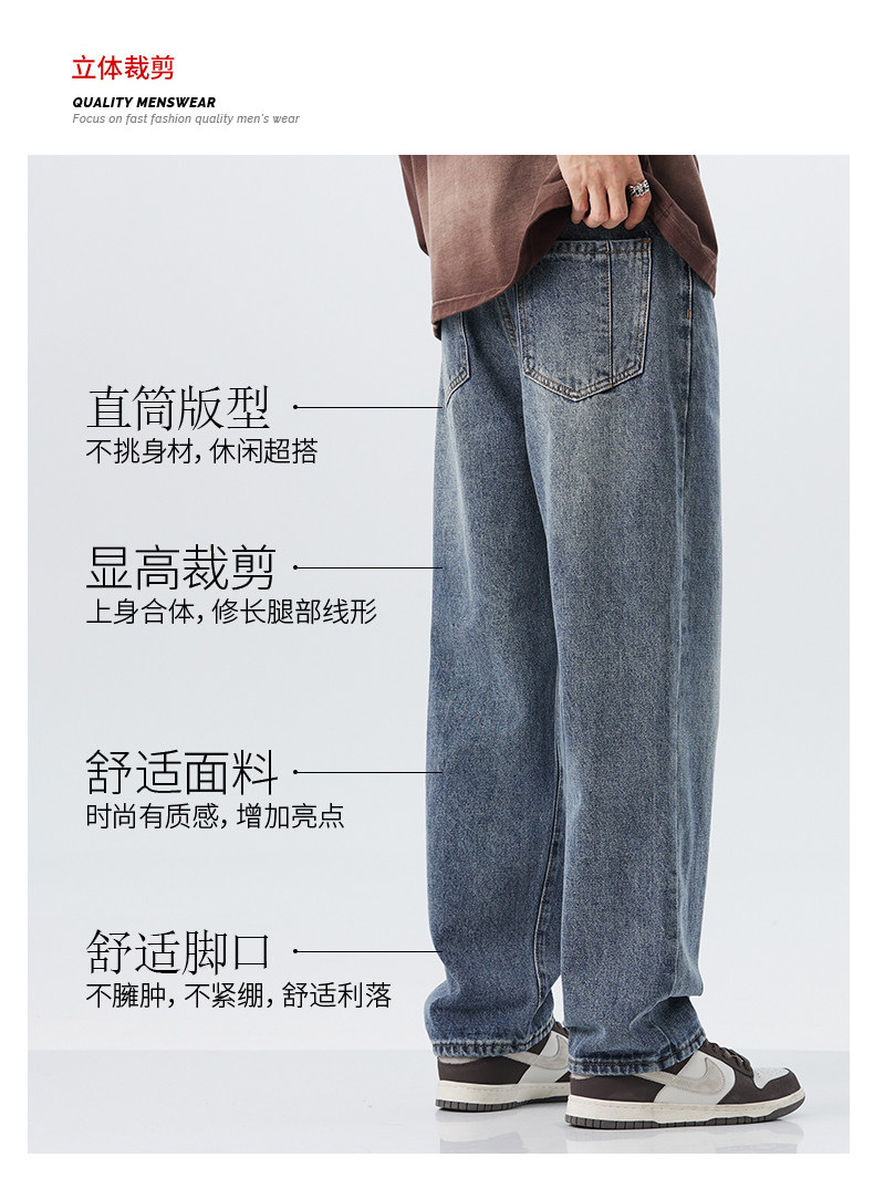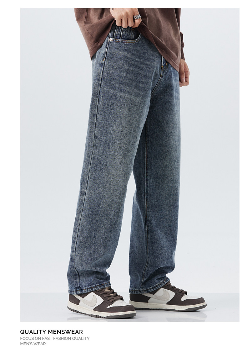直筒牛仔褲2025新款男秋冬款美式高街休閒寬鬆濶腿長褲子