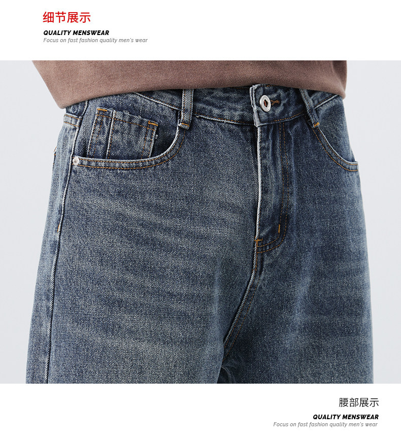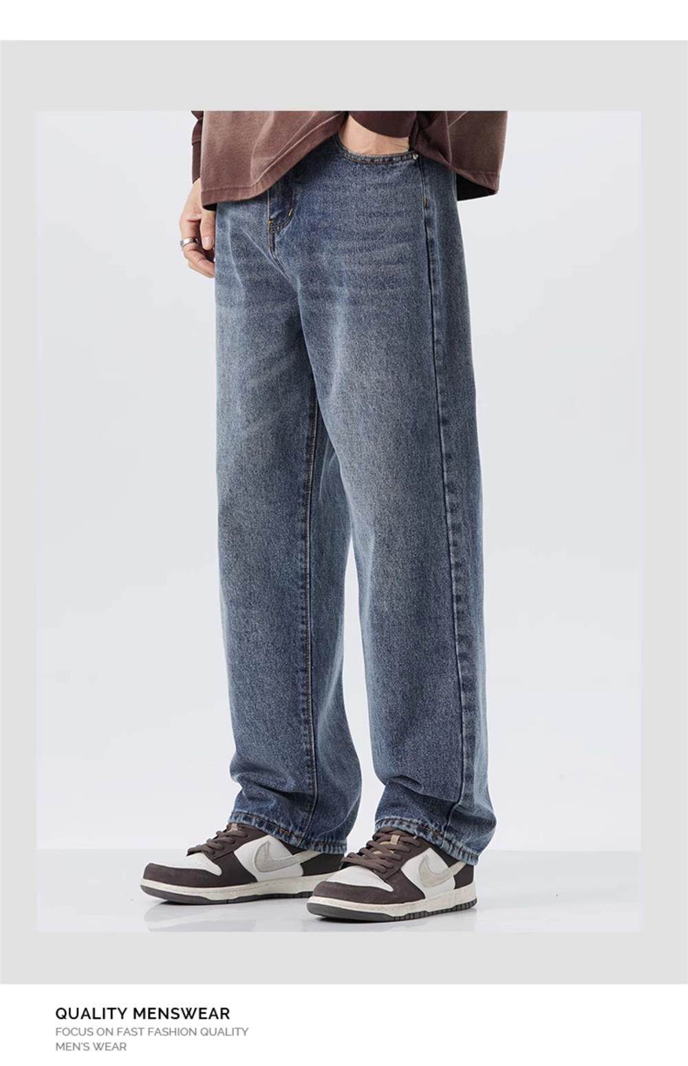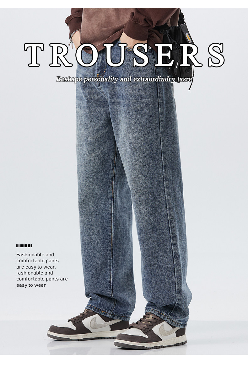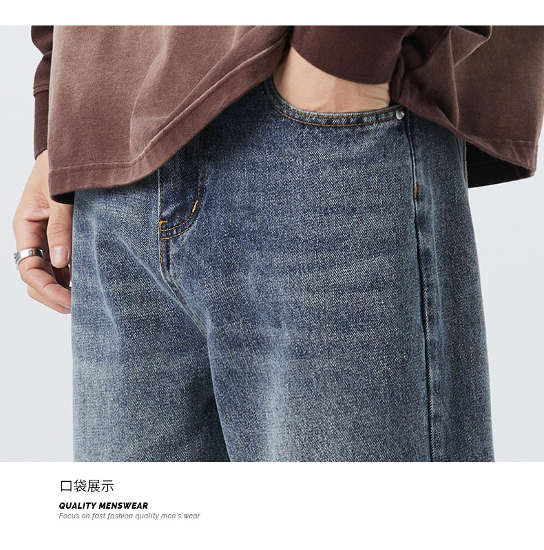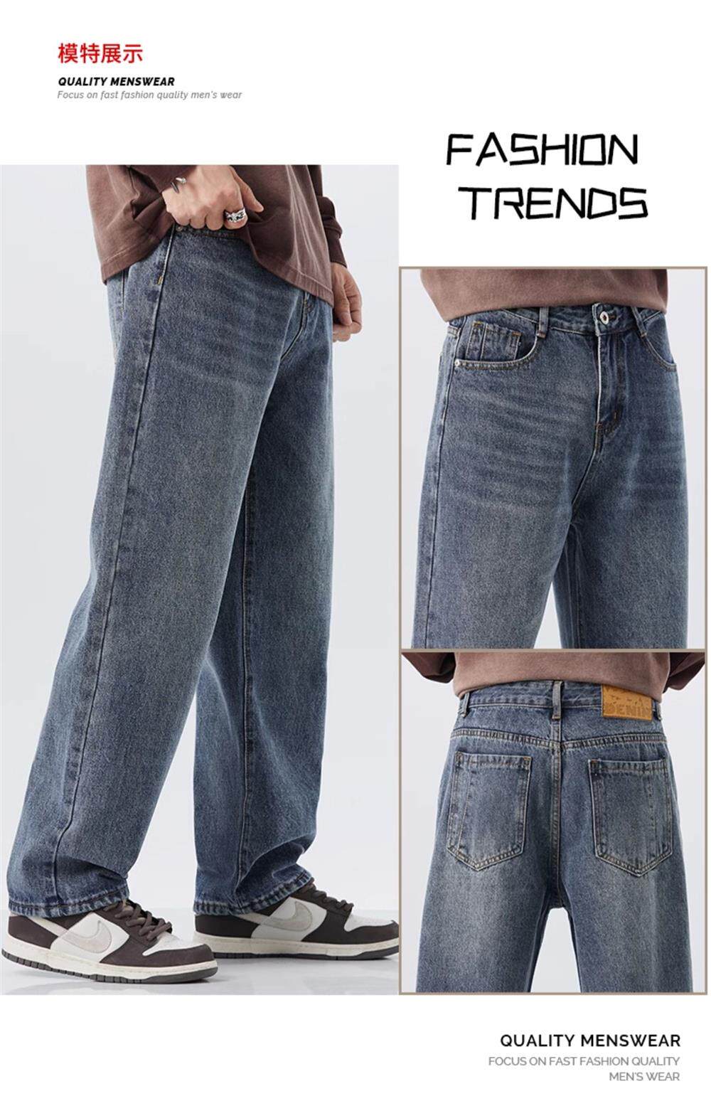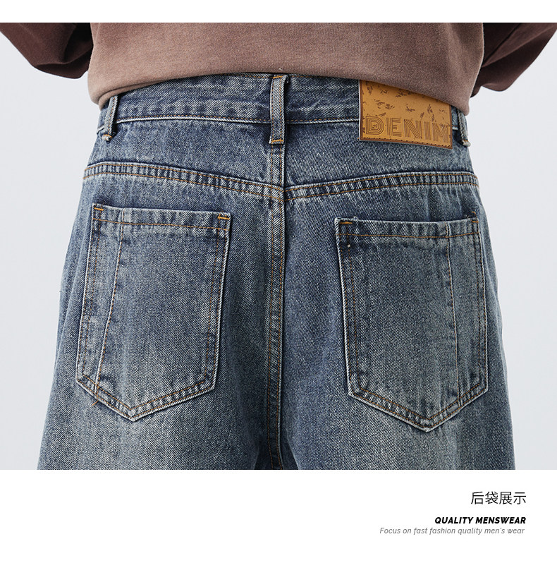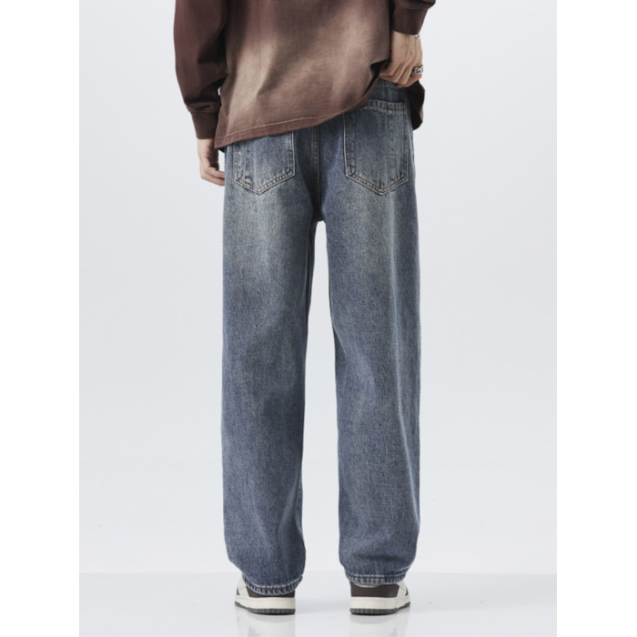 直筒牛仔褲2025新款男秋冬款美式高街休閒寬鬆濶腿長褲子