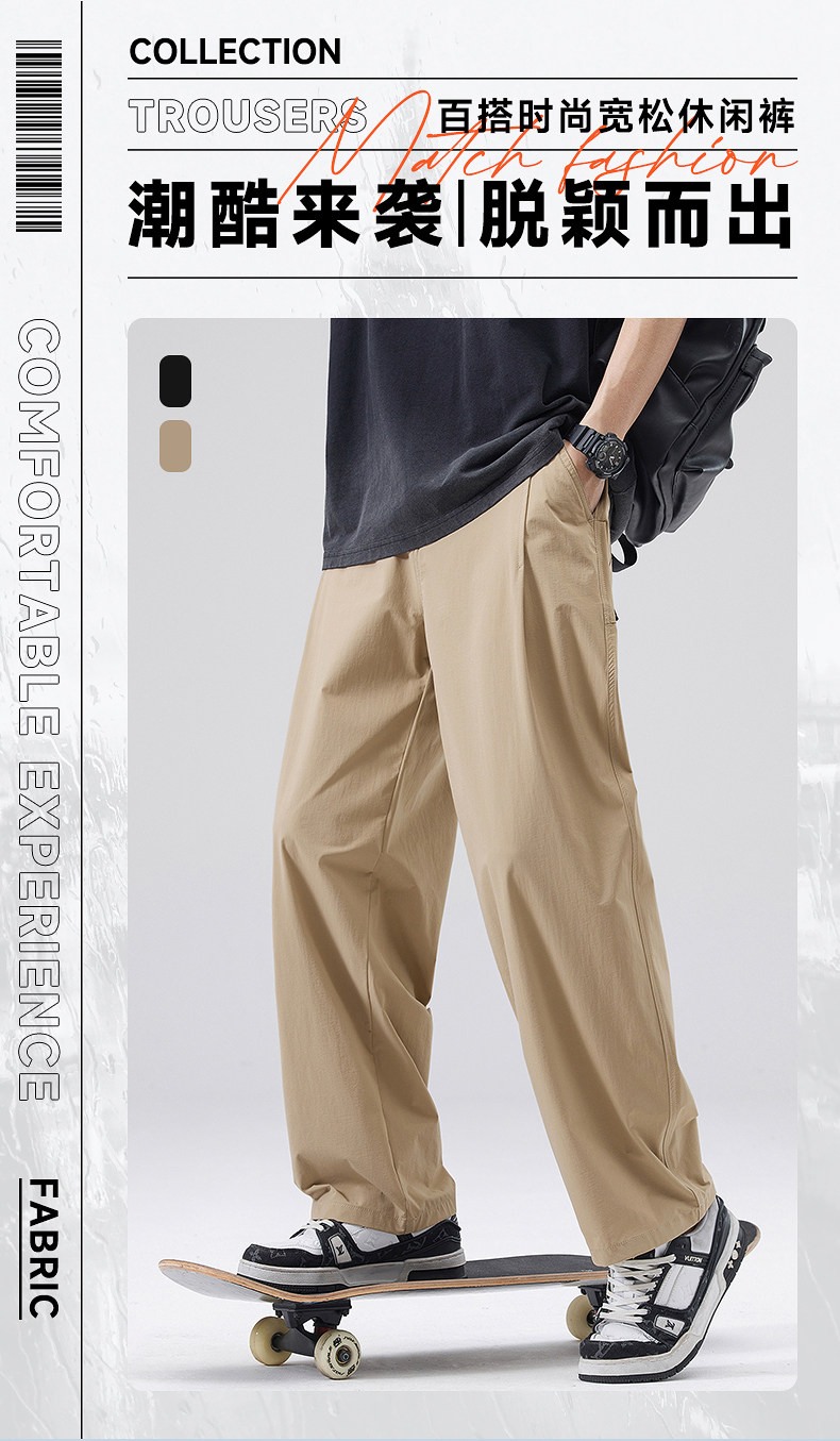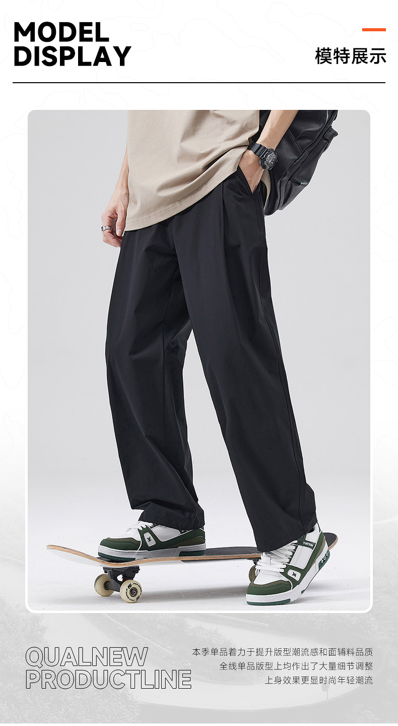 男士休閒褲男2025新款垂感褲子春季寬鬆濶腿褲直筒長褲潮牌