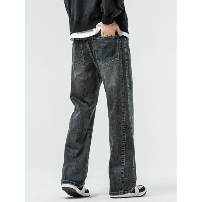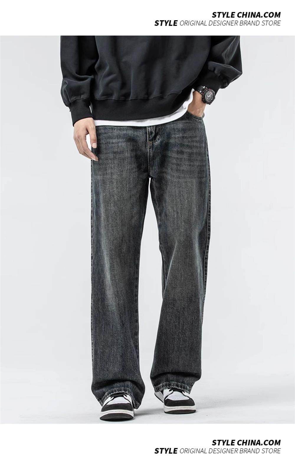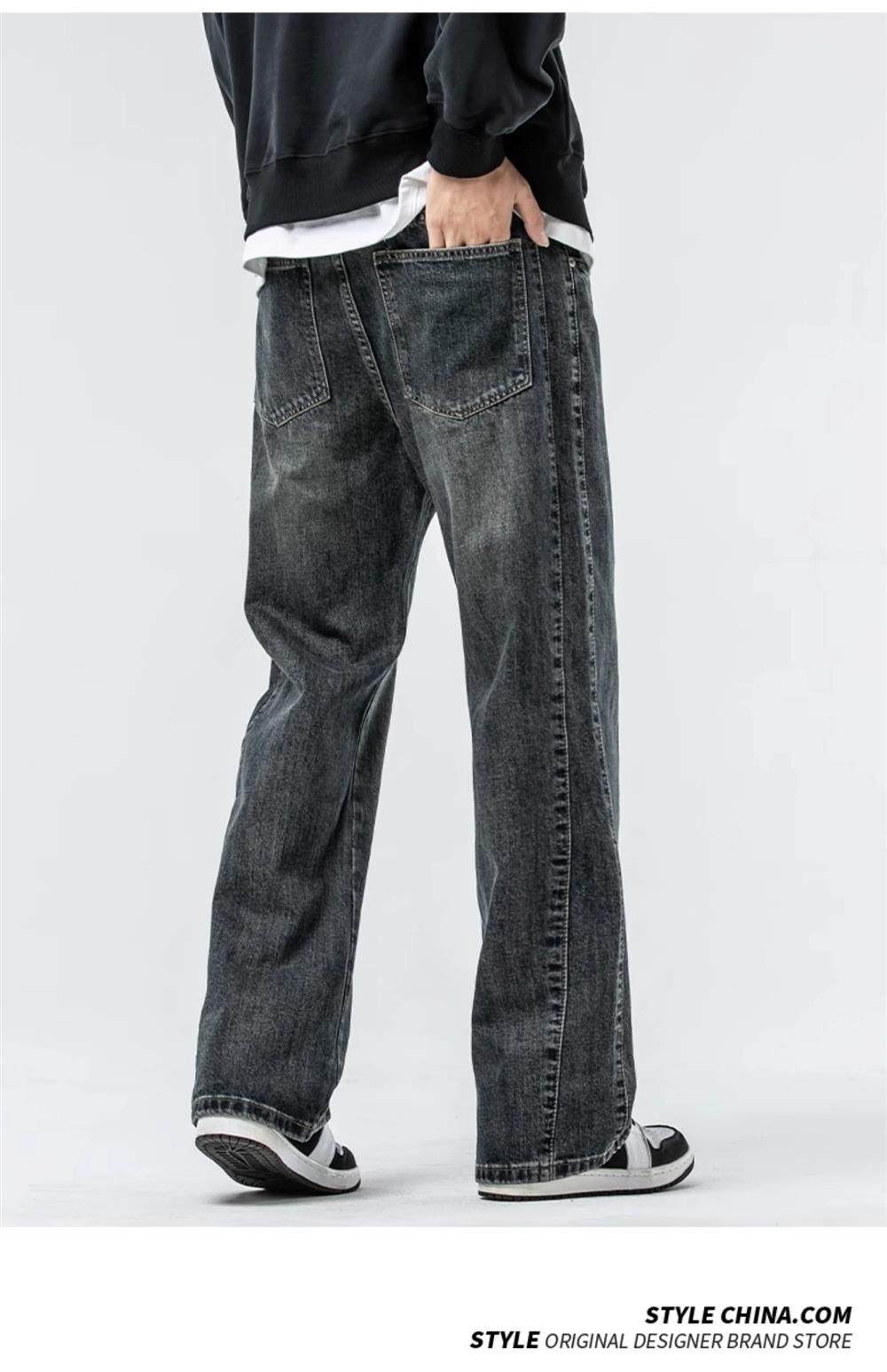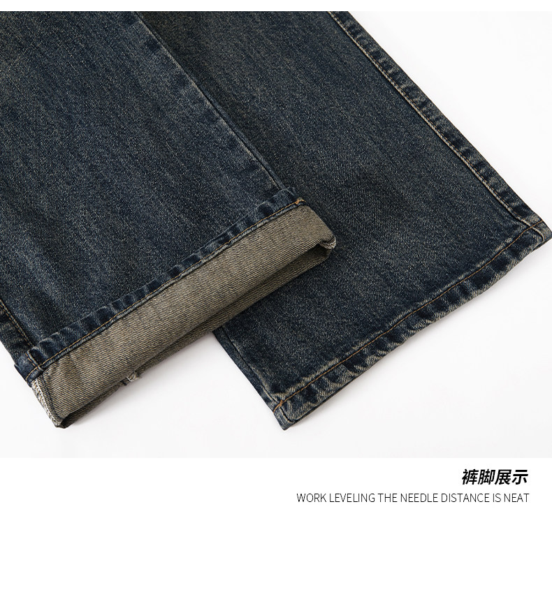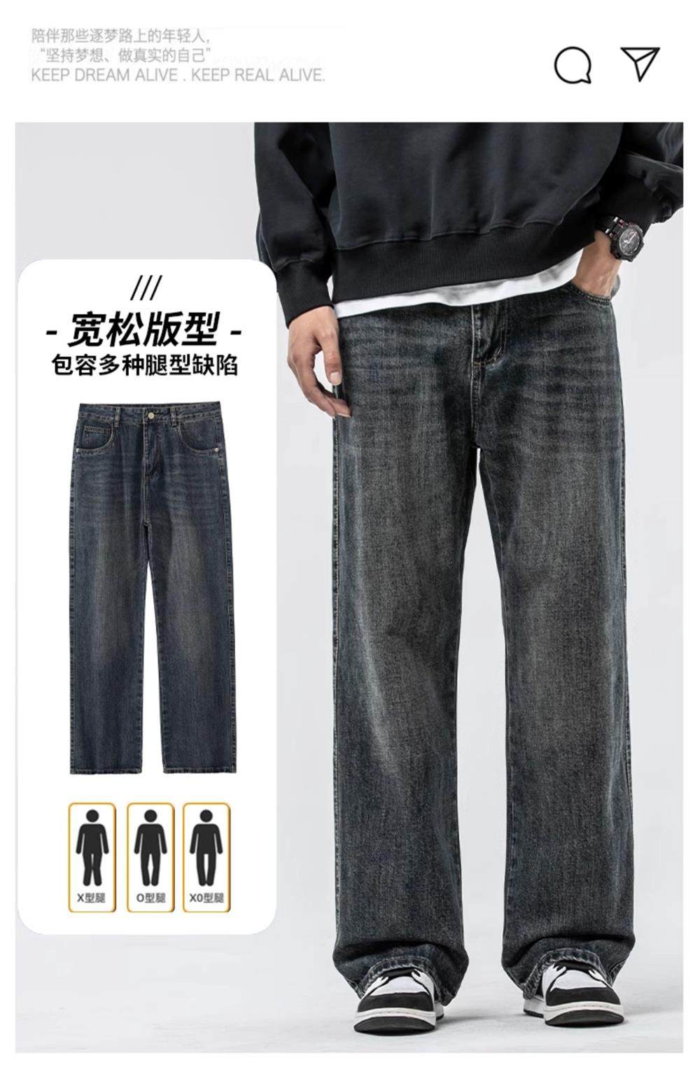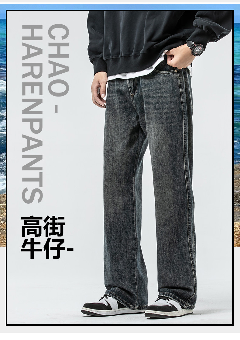 美式高街微喇牛仔褲男秋冬新款潮牌寬鬆直筒重磅休閒長褲子