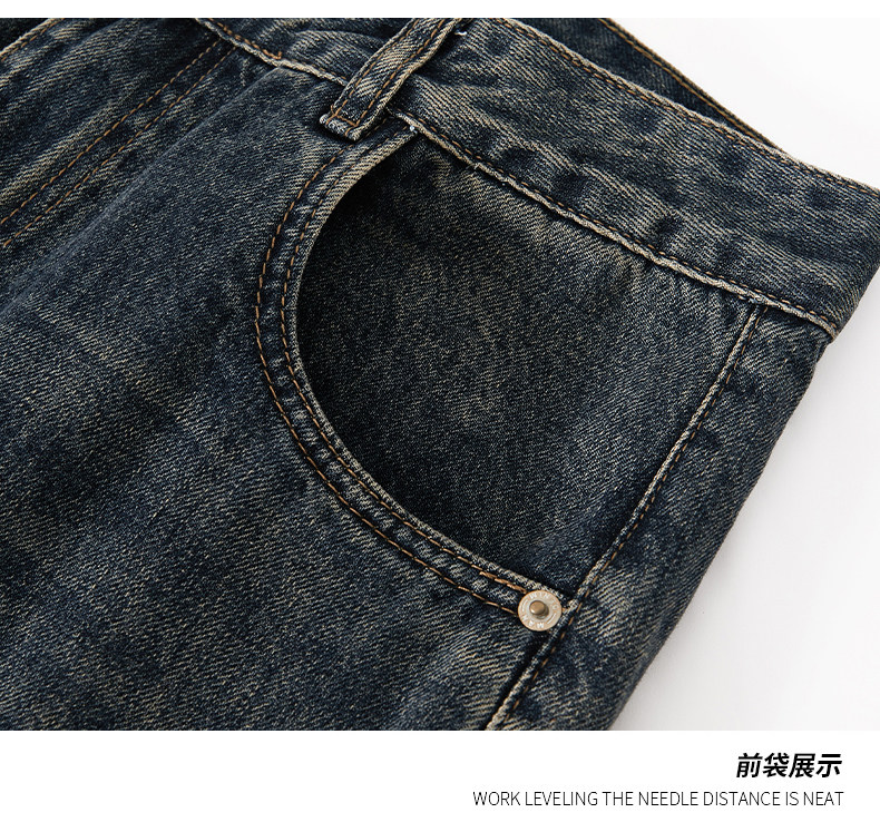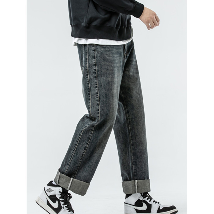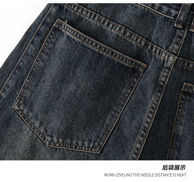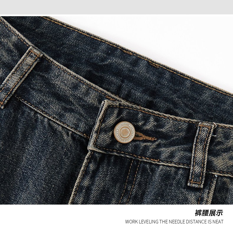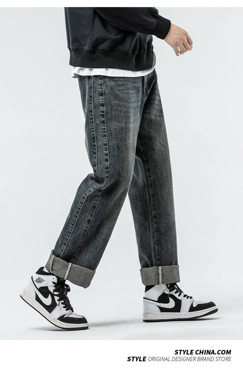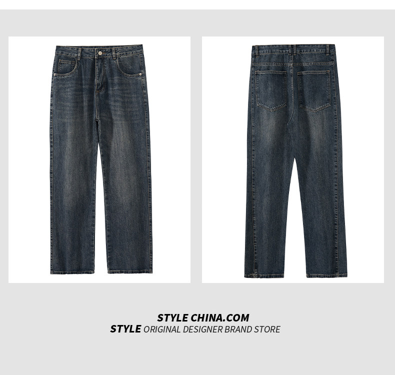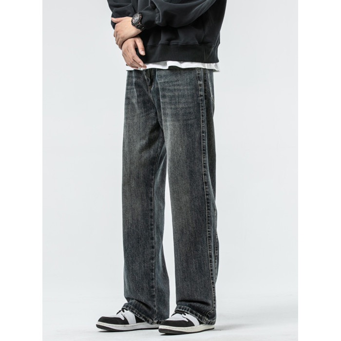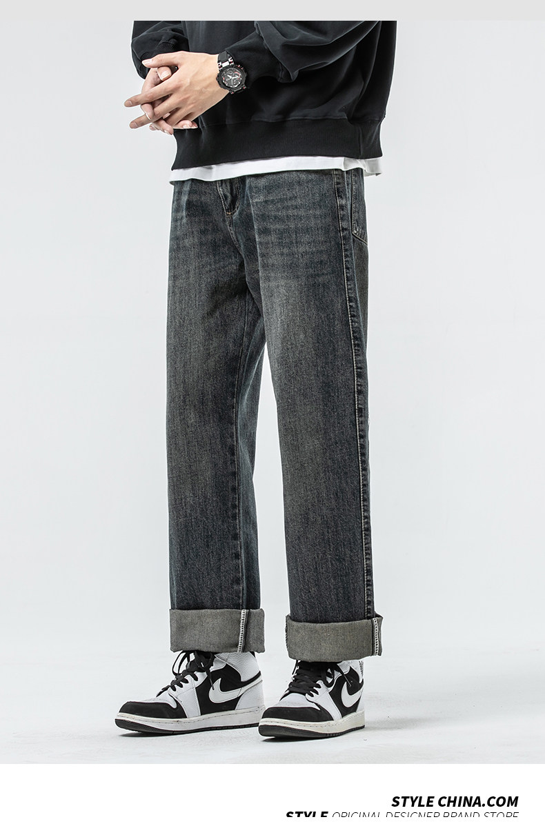 美式高街微喇牛仔褲男秋冬新款潮牌寬鬆直筒重磅休閒長褲子