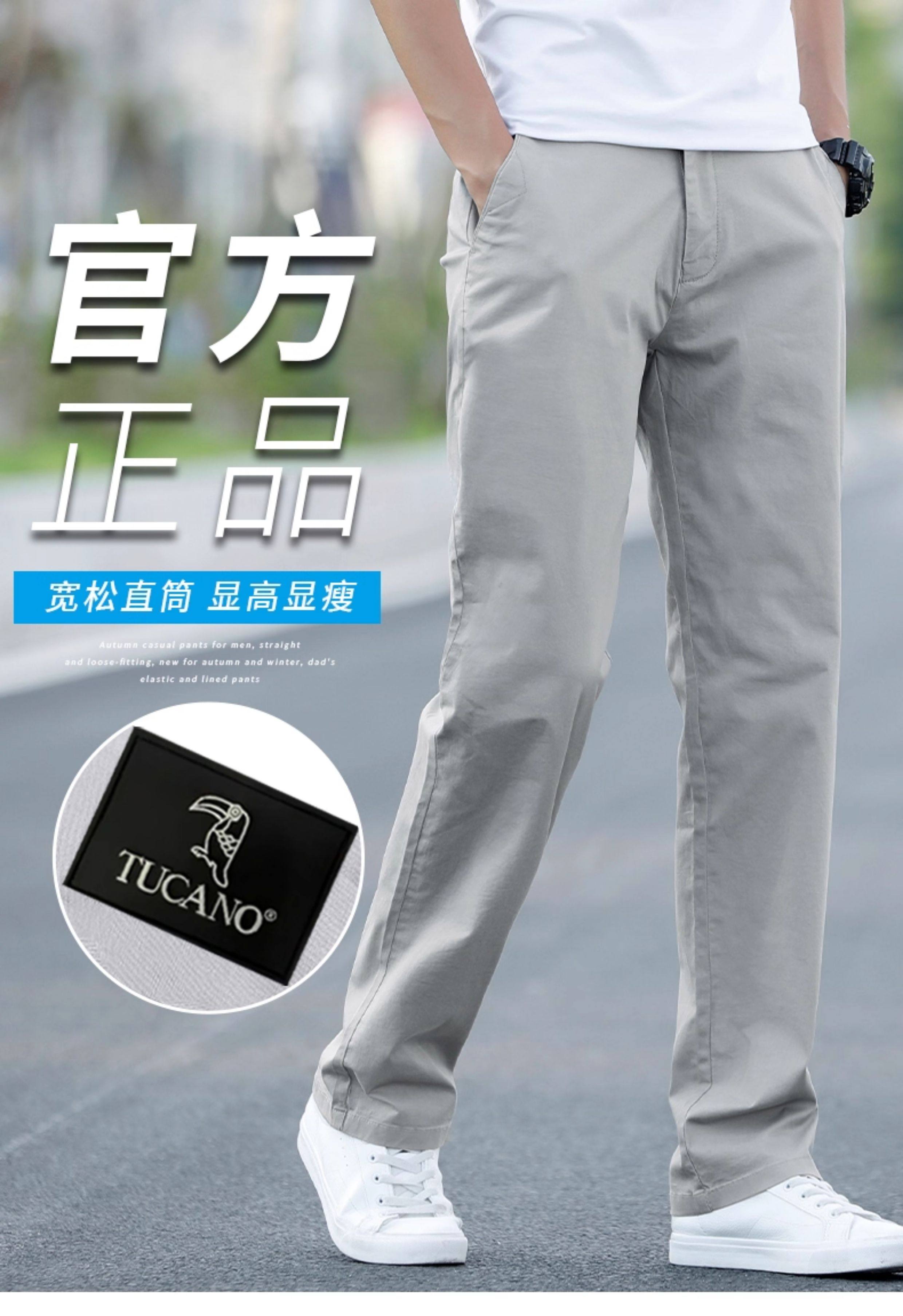 啄木鳥官方旗艦純棉男士休閒褲秋冬季加絨加厚直筒寬鬆西裝褲子K