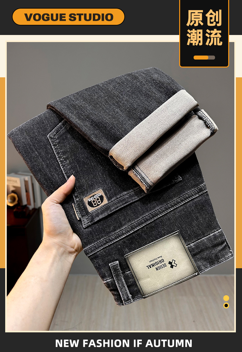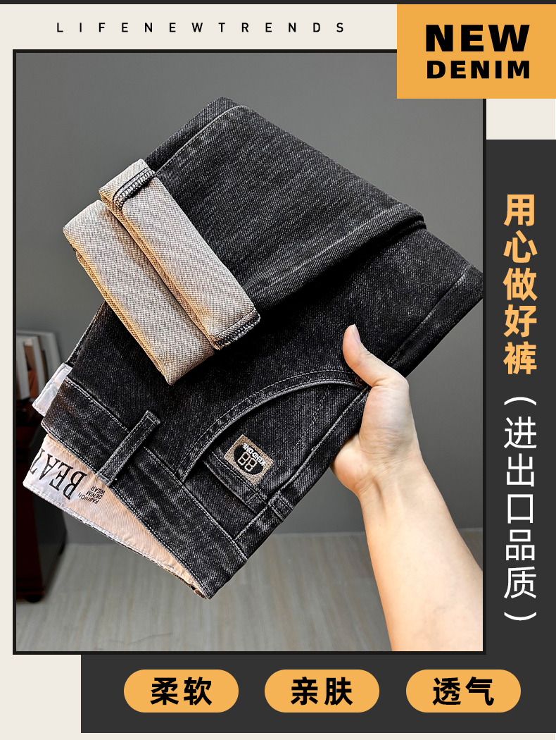 啄木鳥高級直筒牛仔褲男2025新款春秋季彈力寬松休閒長褲子秋冬K