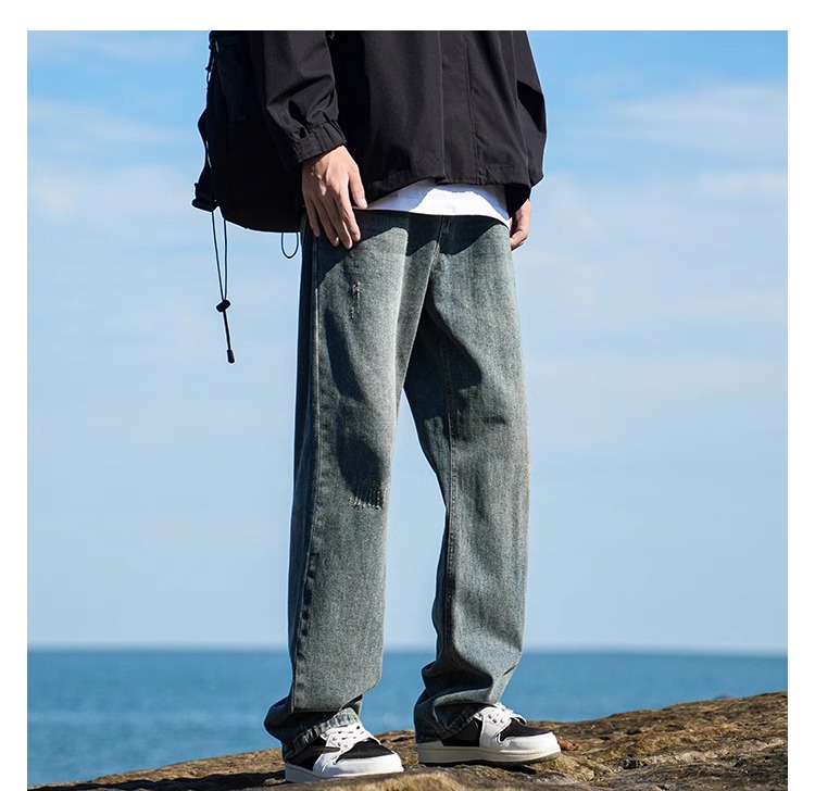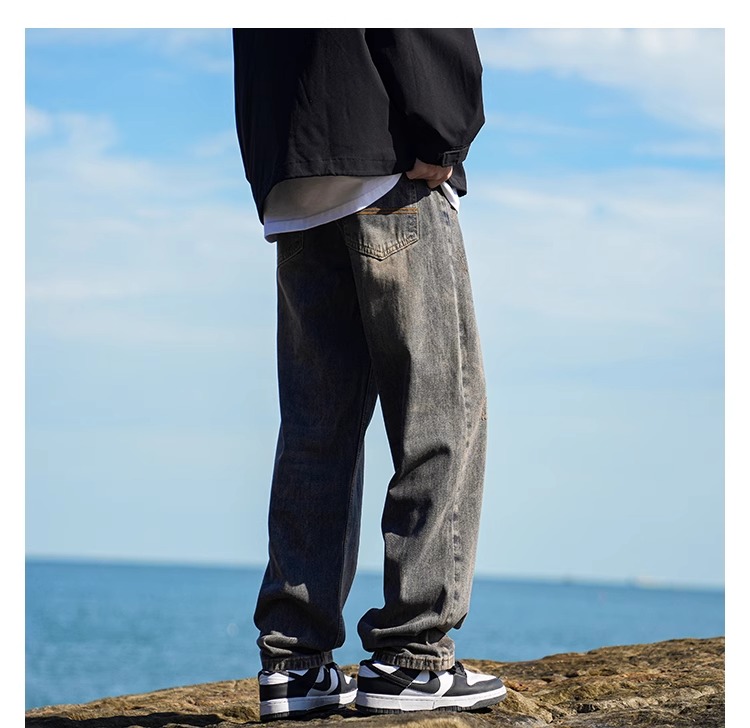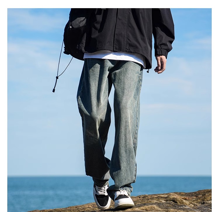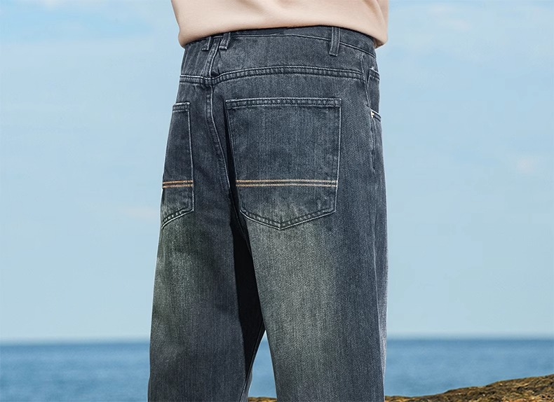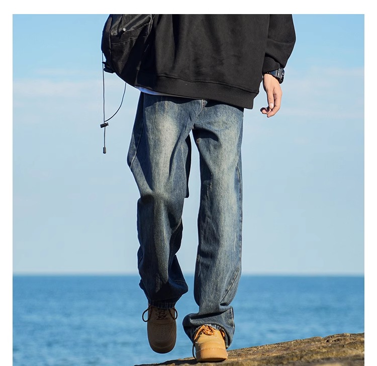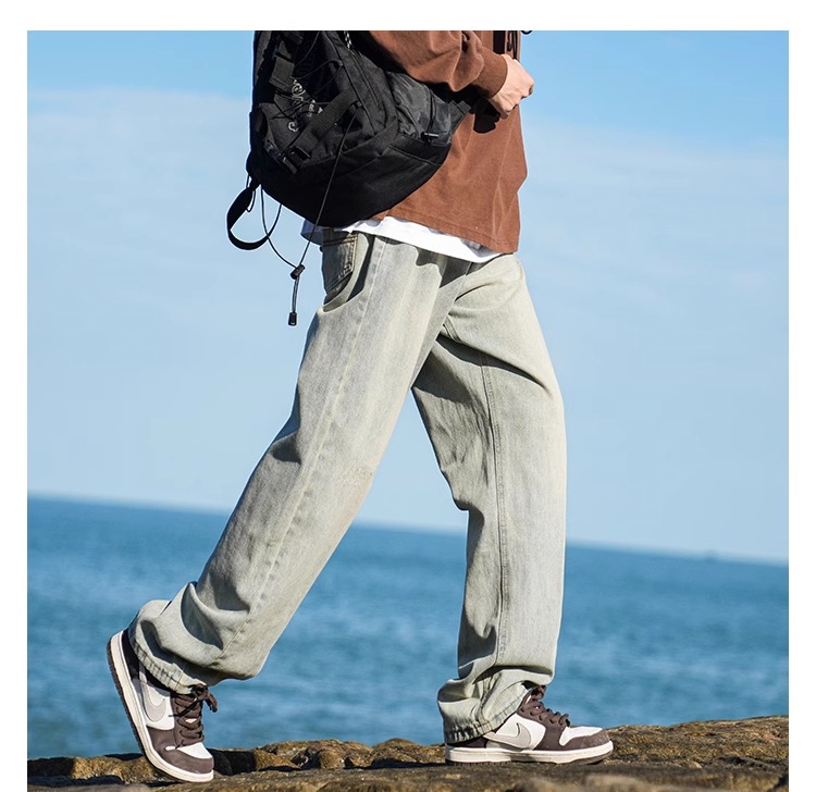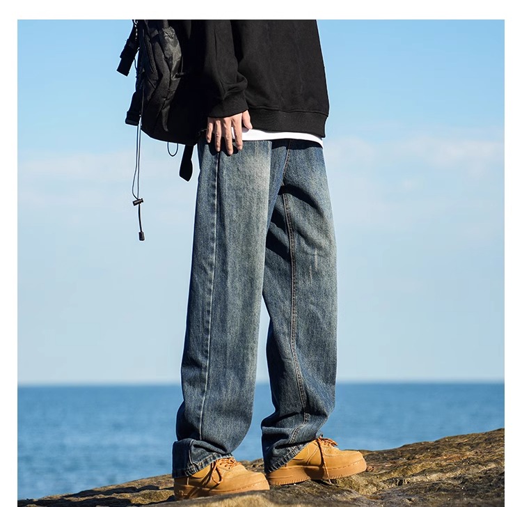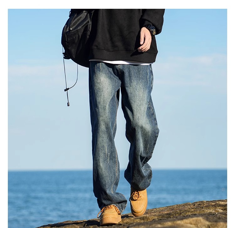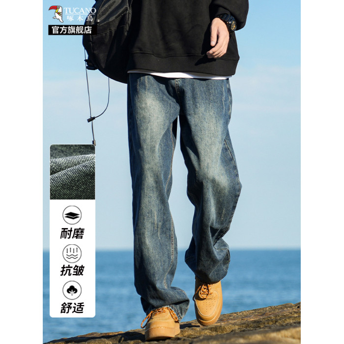 啄木鳥復古牛仔褲男士直筒寬松春夏季2025新款美式濶腿休閒褲子K