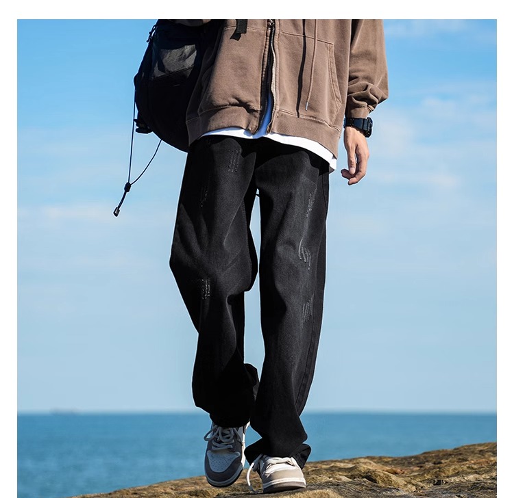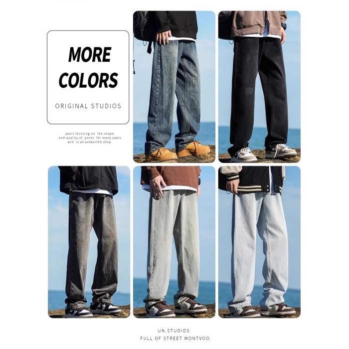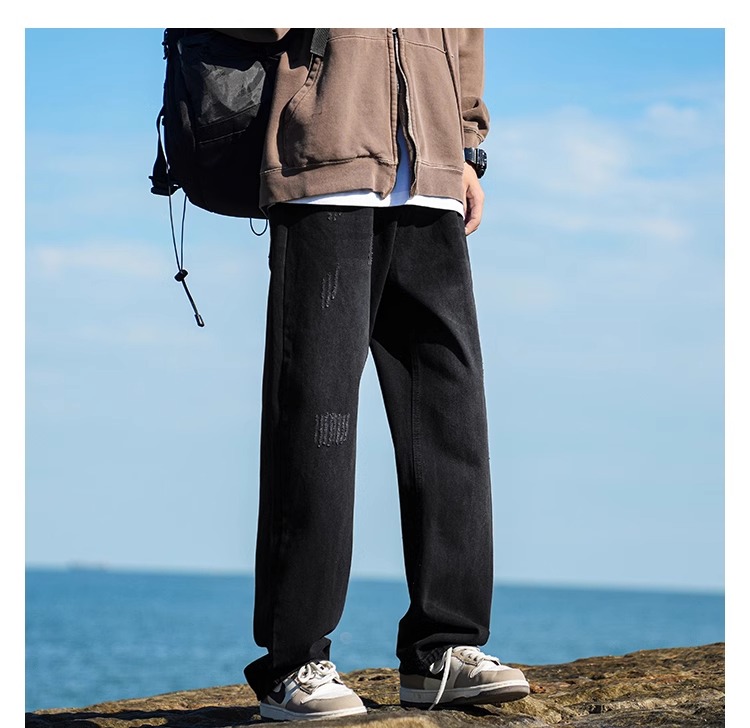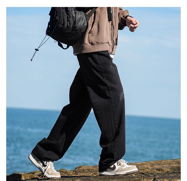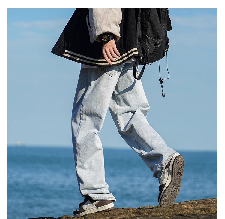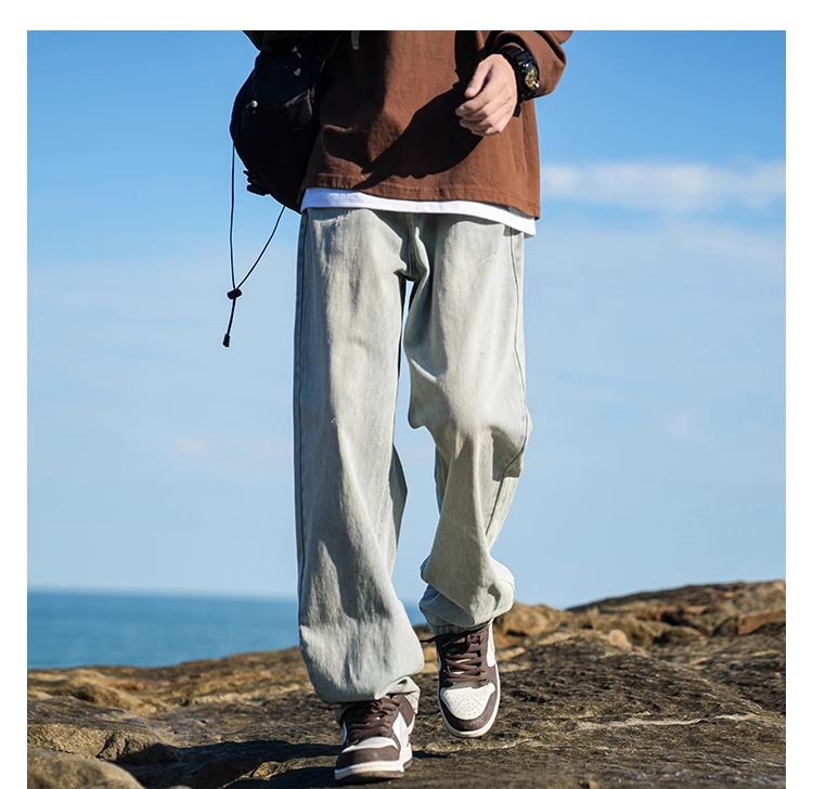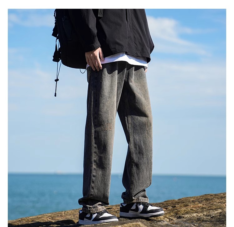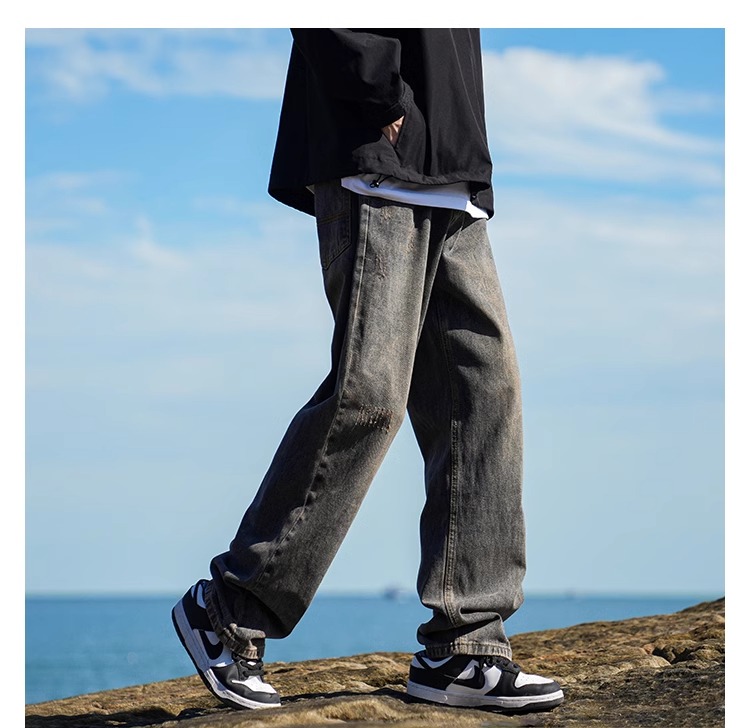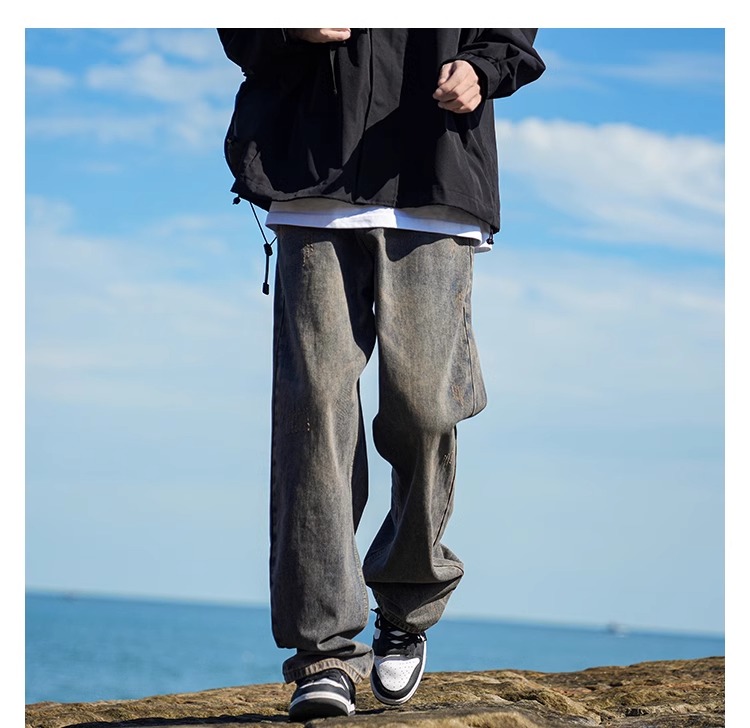 啄木鳥復古牛仔褲男士直筒寬松春夏季2025新款美式濶腿休閒褲子K