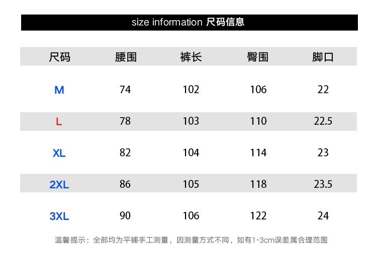 | 褲長 | 長褲 |