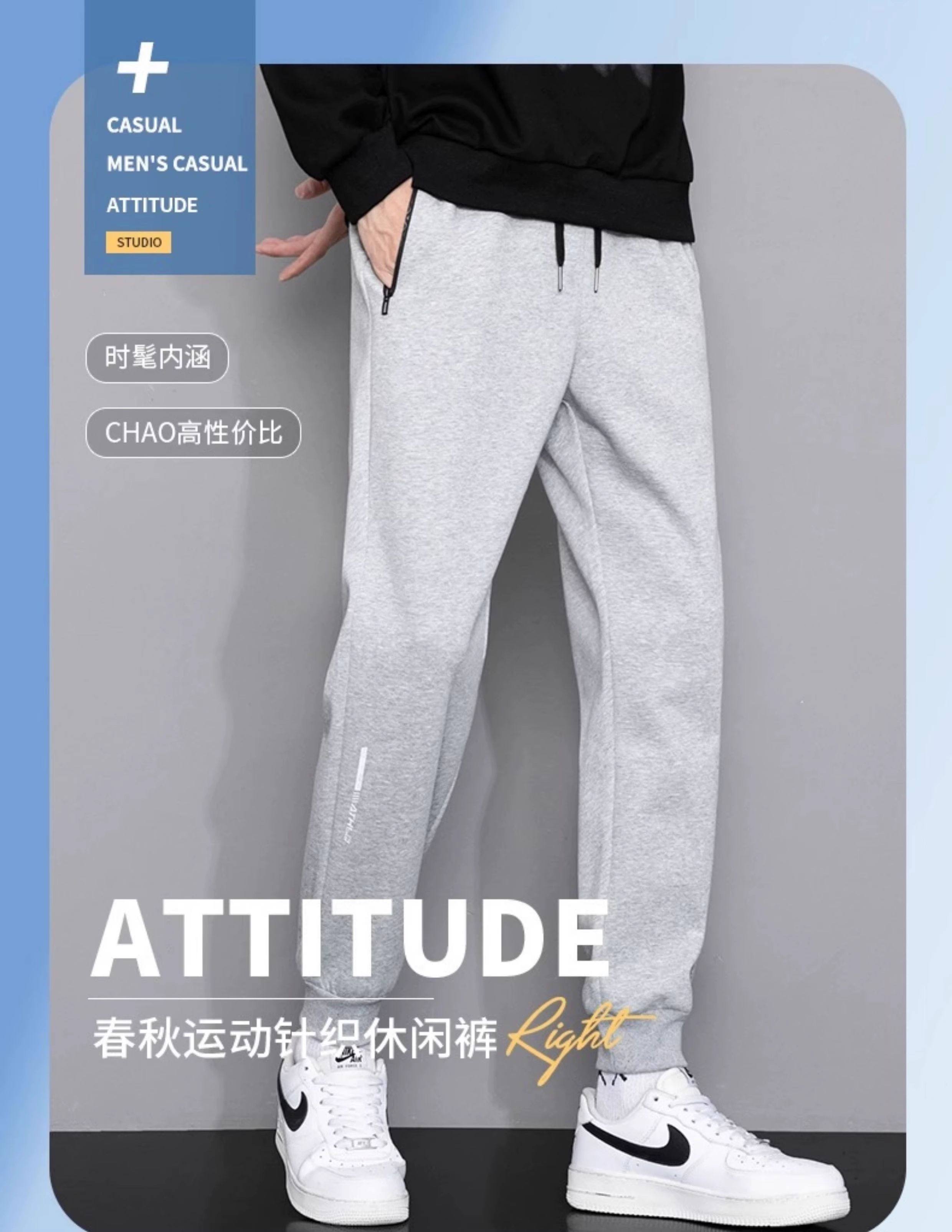 啄木鳥運動休閒褲男款2025新款秋冬季寬鬆束腳衛褲加絨加厚褲子K