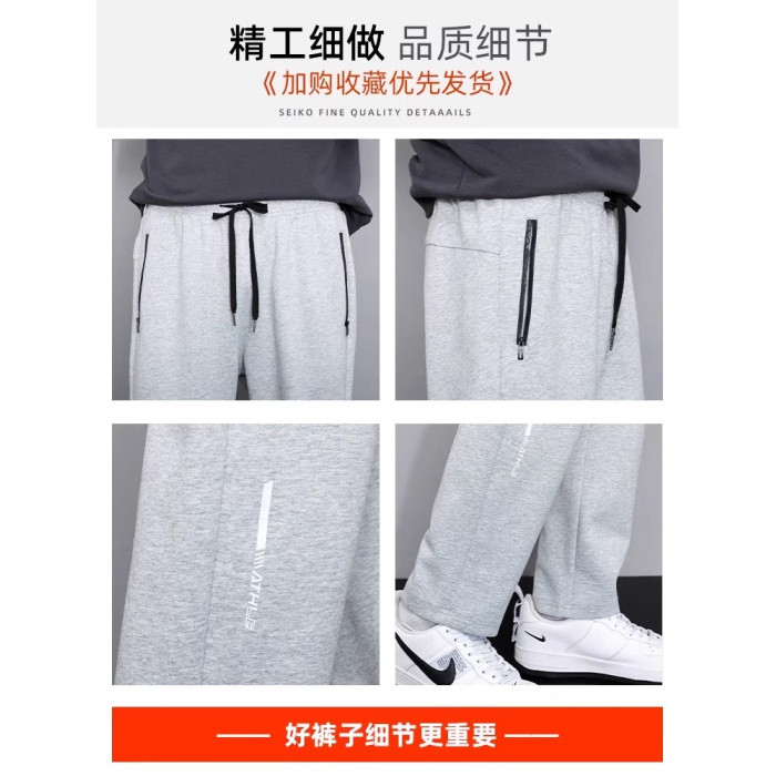 啄木鳥運動休閒褲男士2025新款直筒寬松束腳衛褲黑色褲子春秋季K