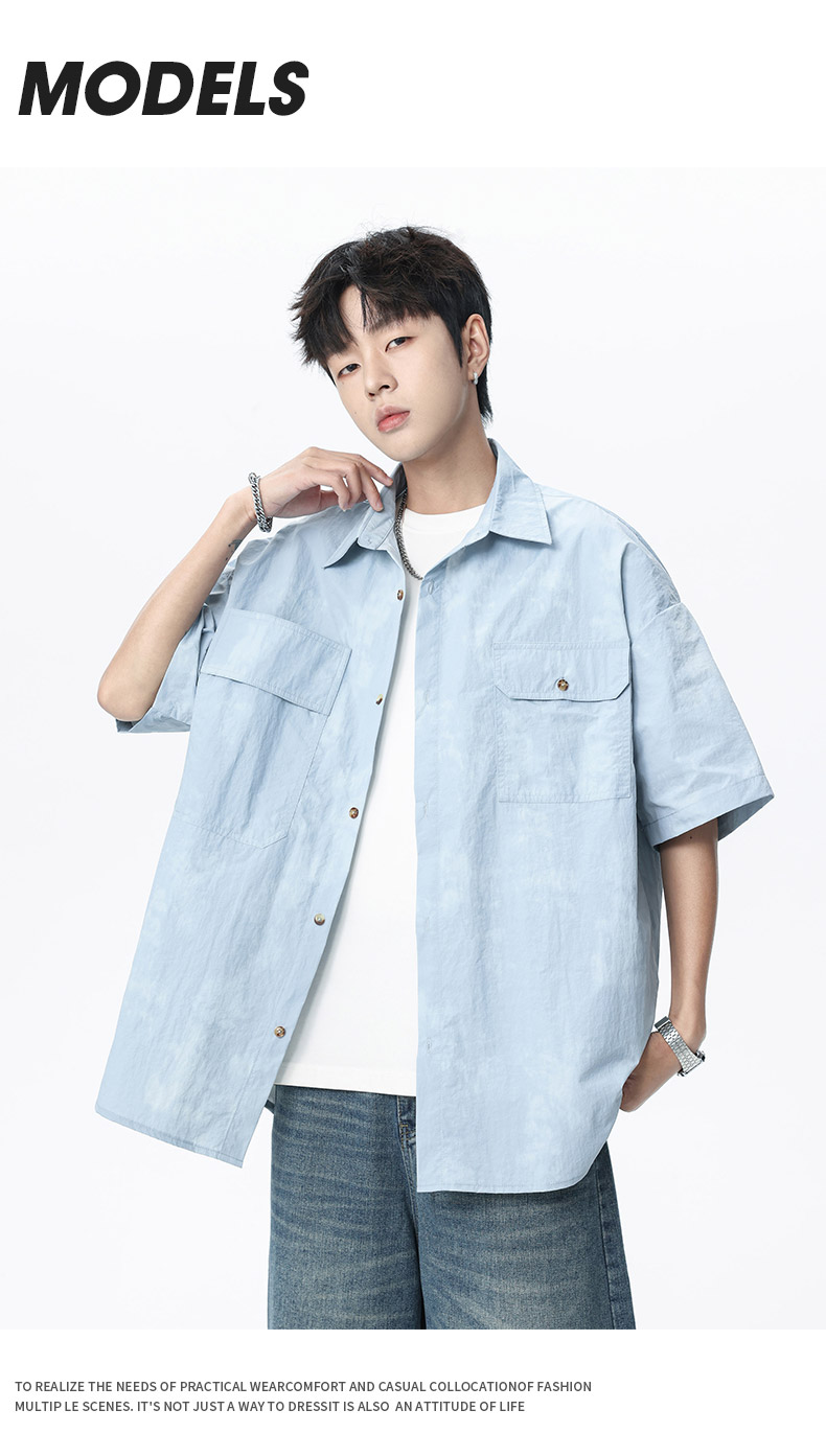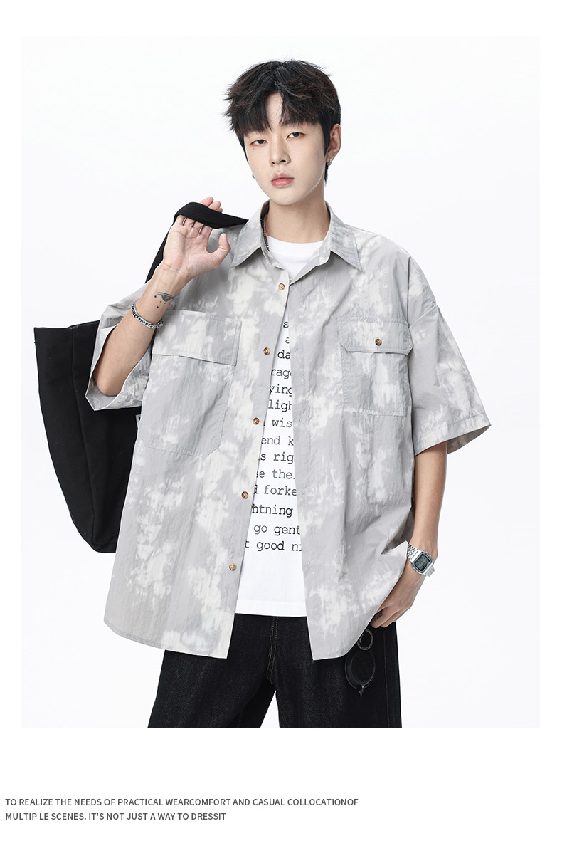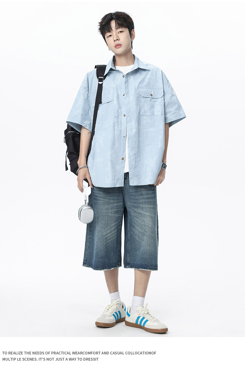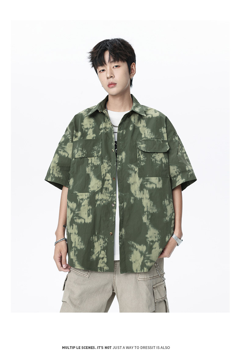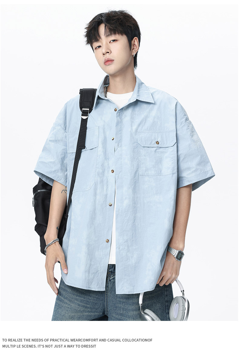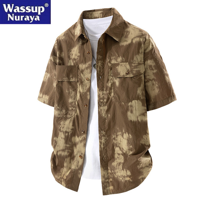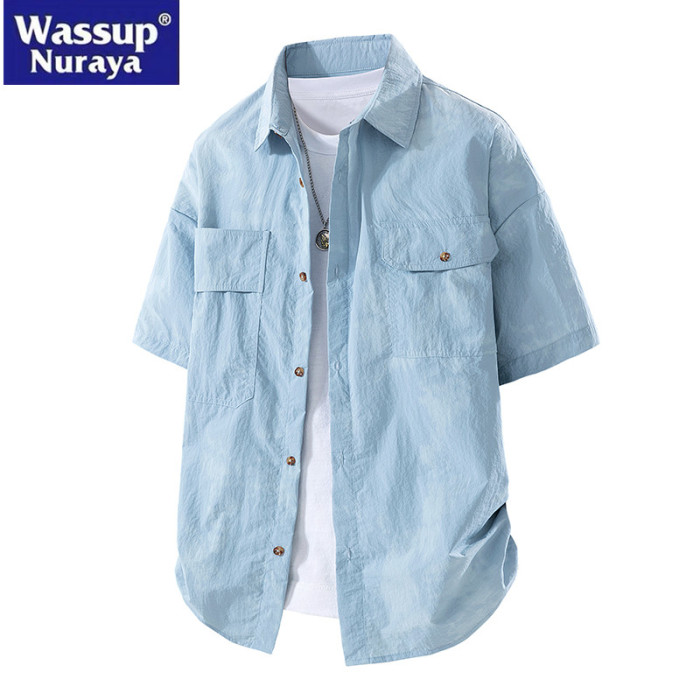 WASSUP Nuraya潮牌大碼加肥加大短袖襯衫男夏季寬松休閒翻領襯衣