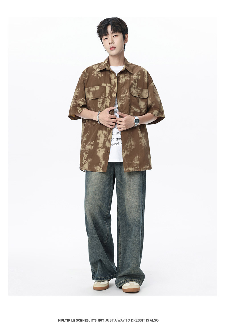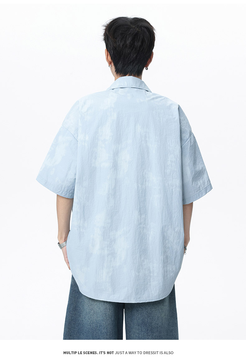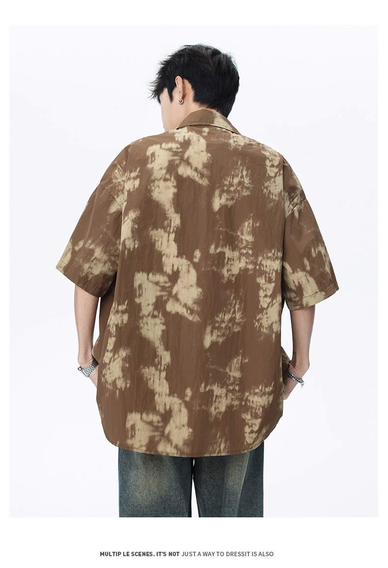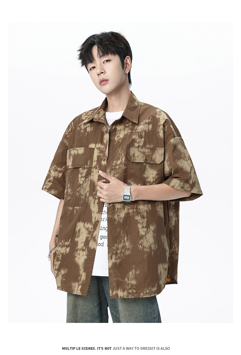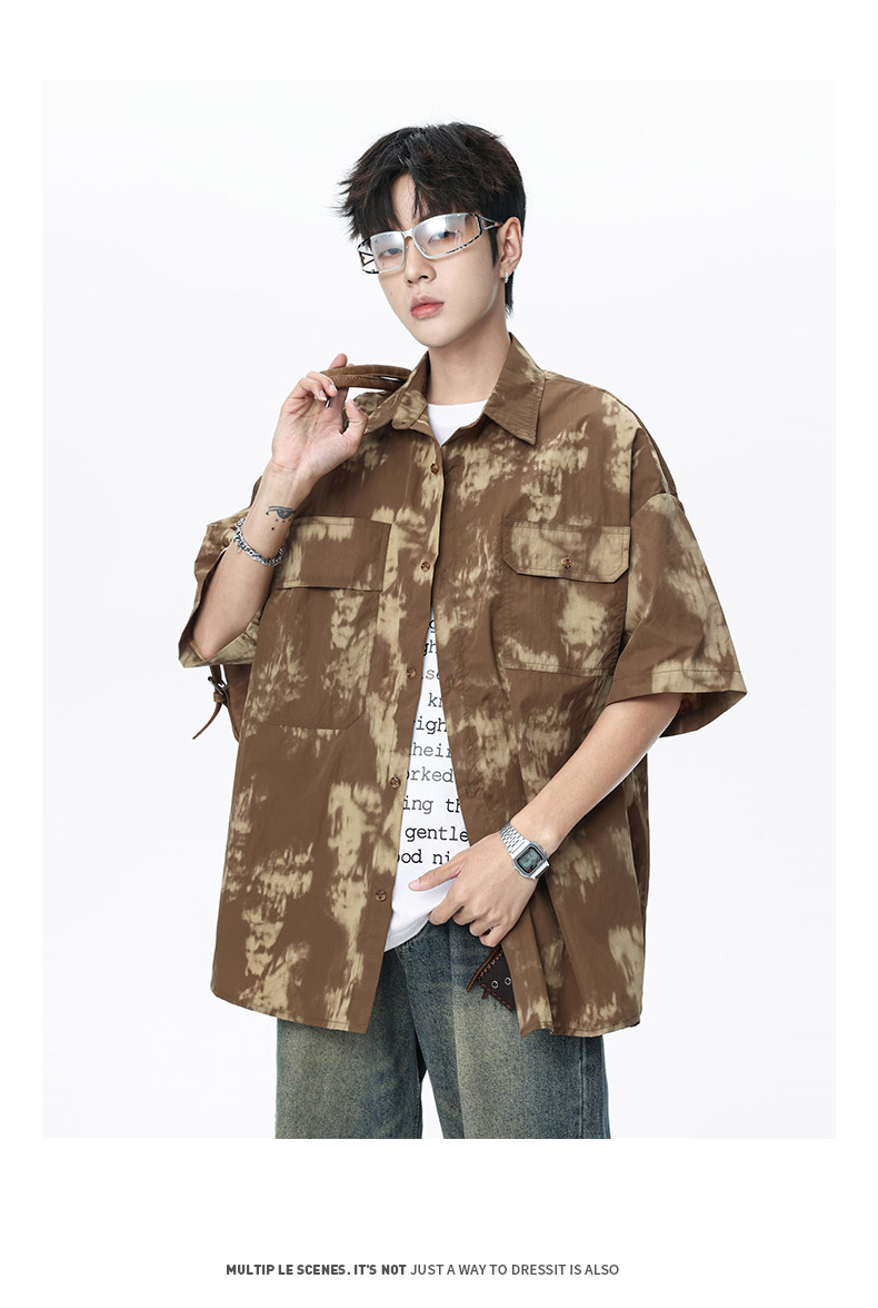 WASSUP Nuraya潮牌大碼加肥加大短袖襯衫男夏季寬松休閒翻領襯衣