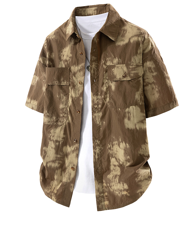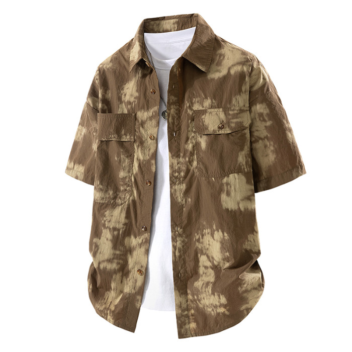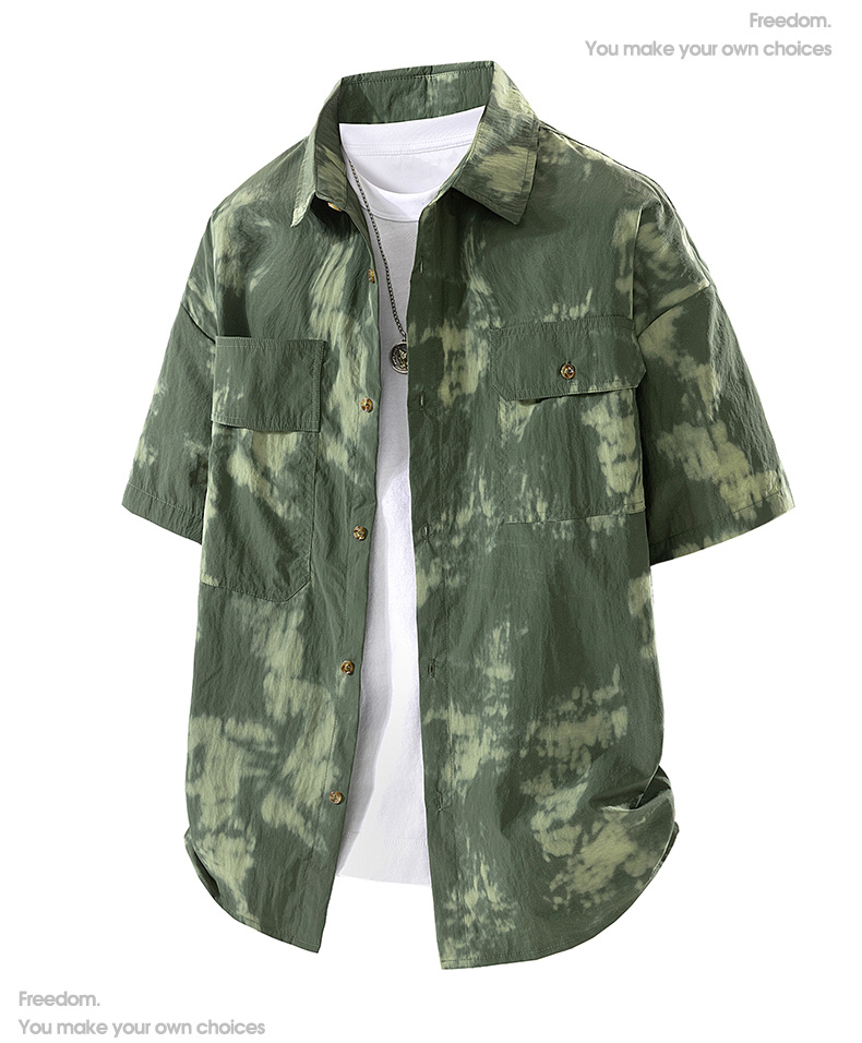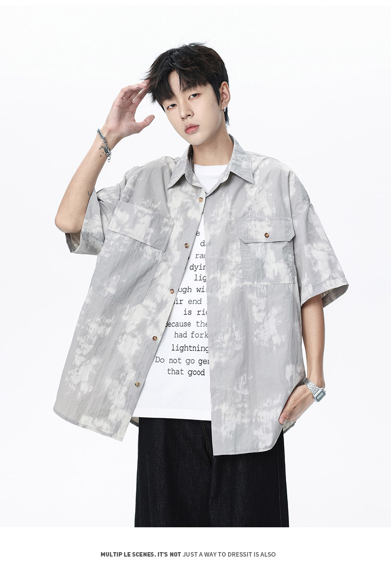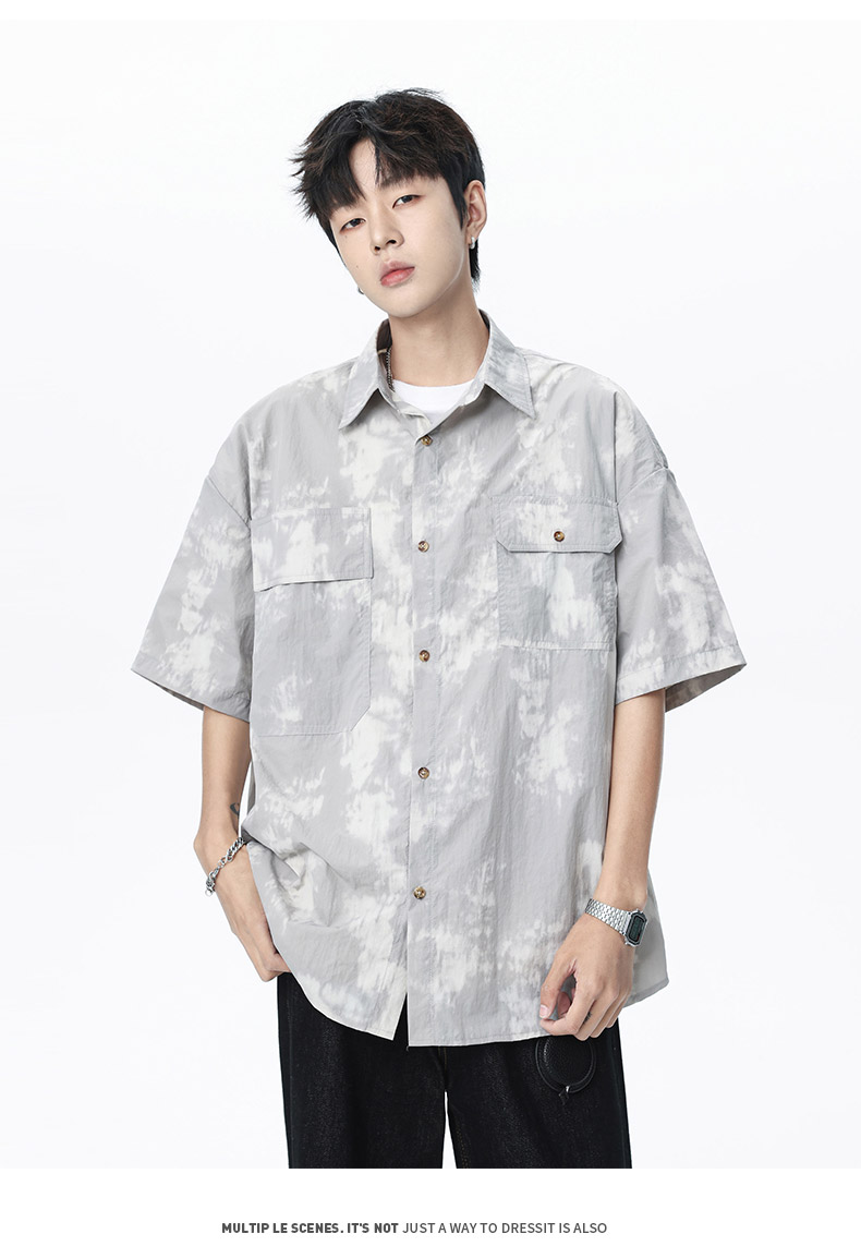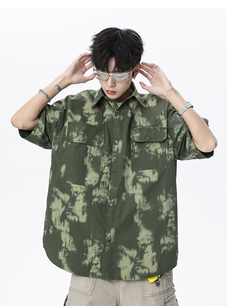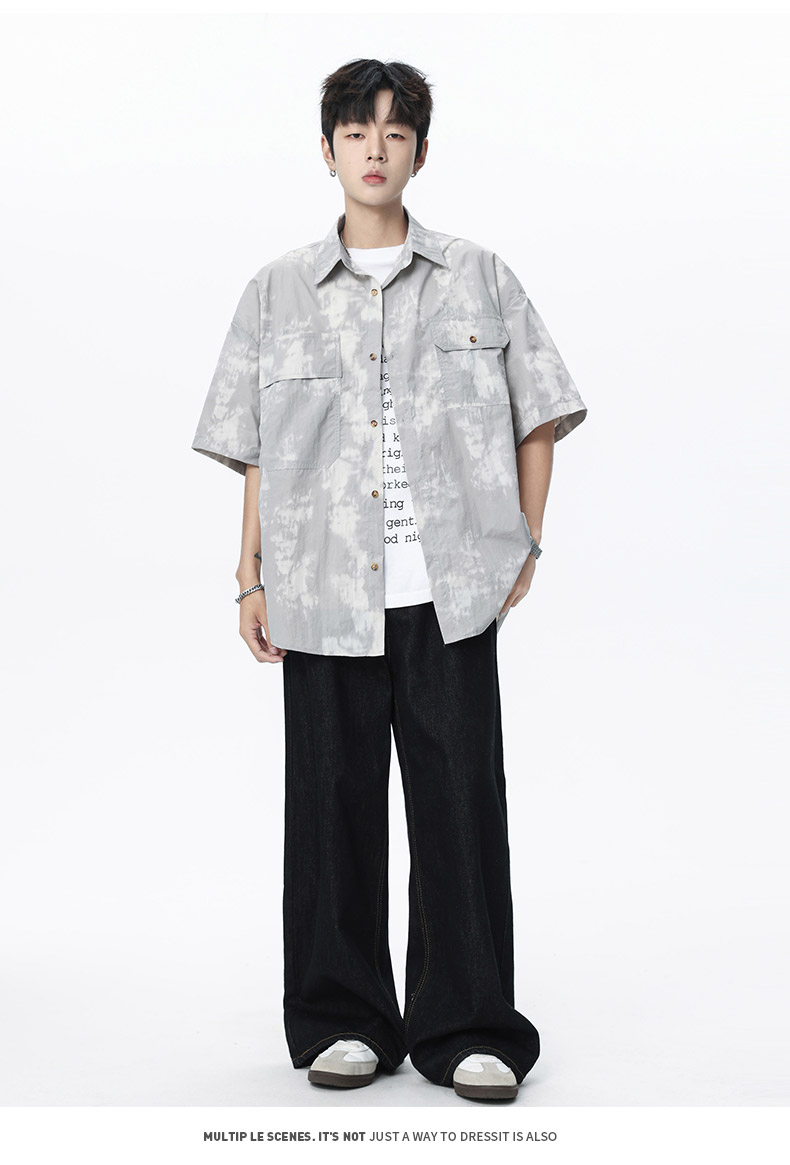 WASSUP Nuraya潮牌大碼加肥加大短袖襯衫男夏季寬松休閒翻領襯衣