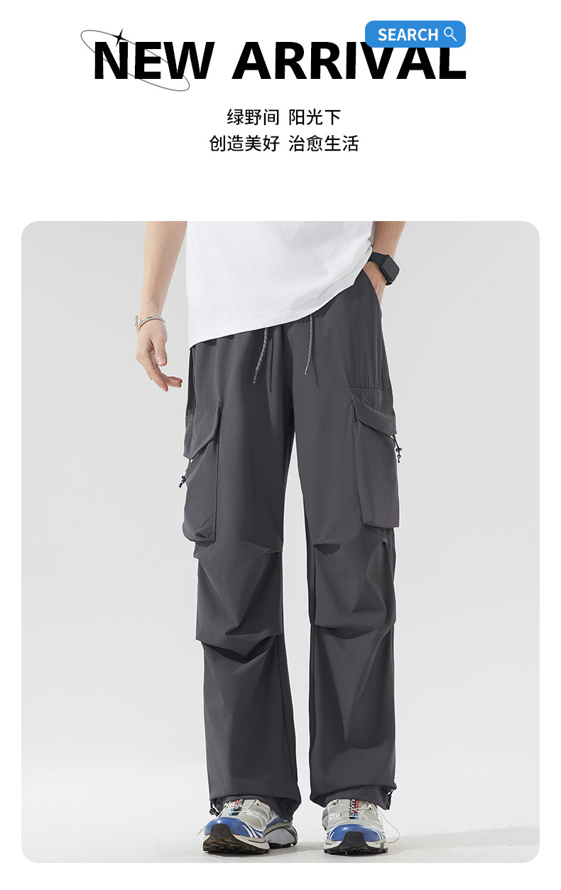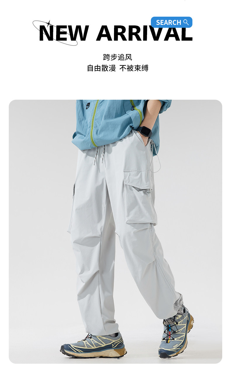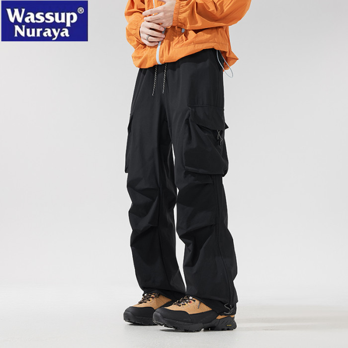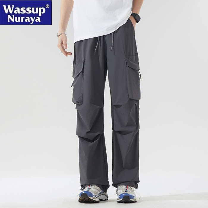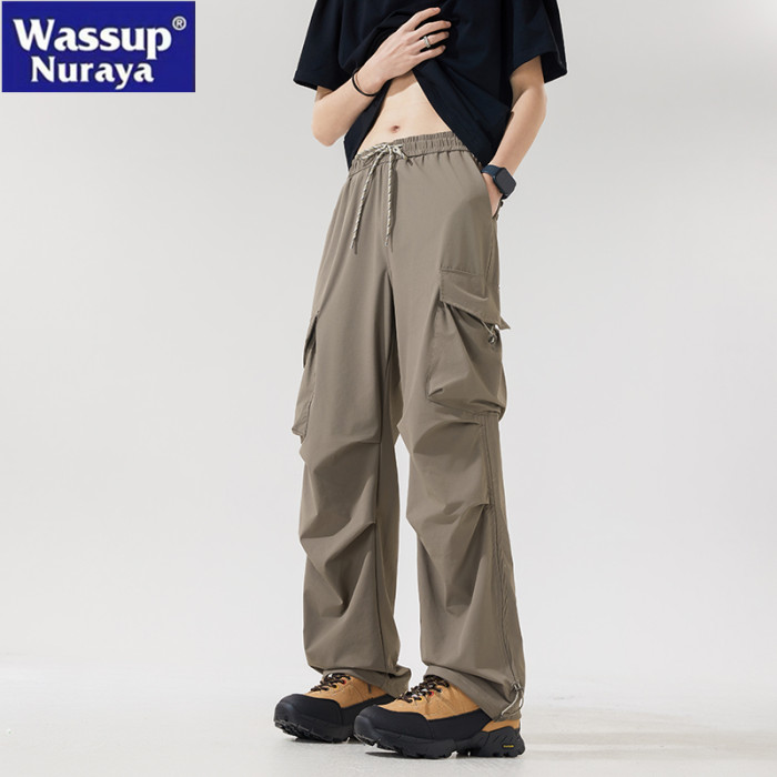 WASSUP NURAYA山系登山沖鋒工裝長褲直筒濶腿速乾冰絲休閒褲男潮