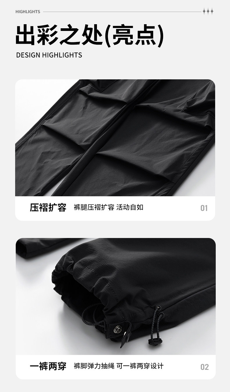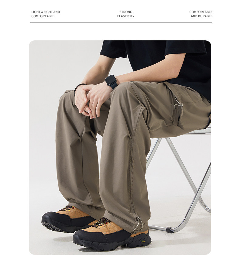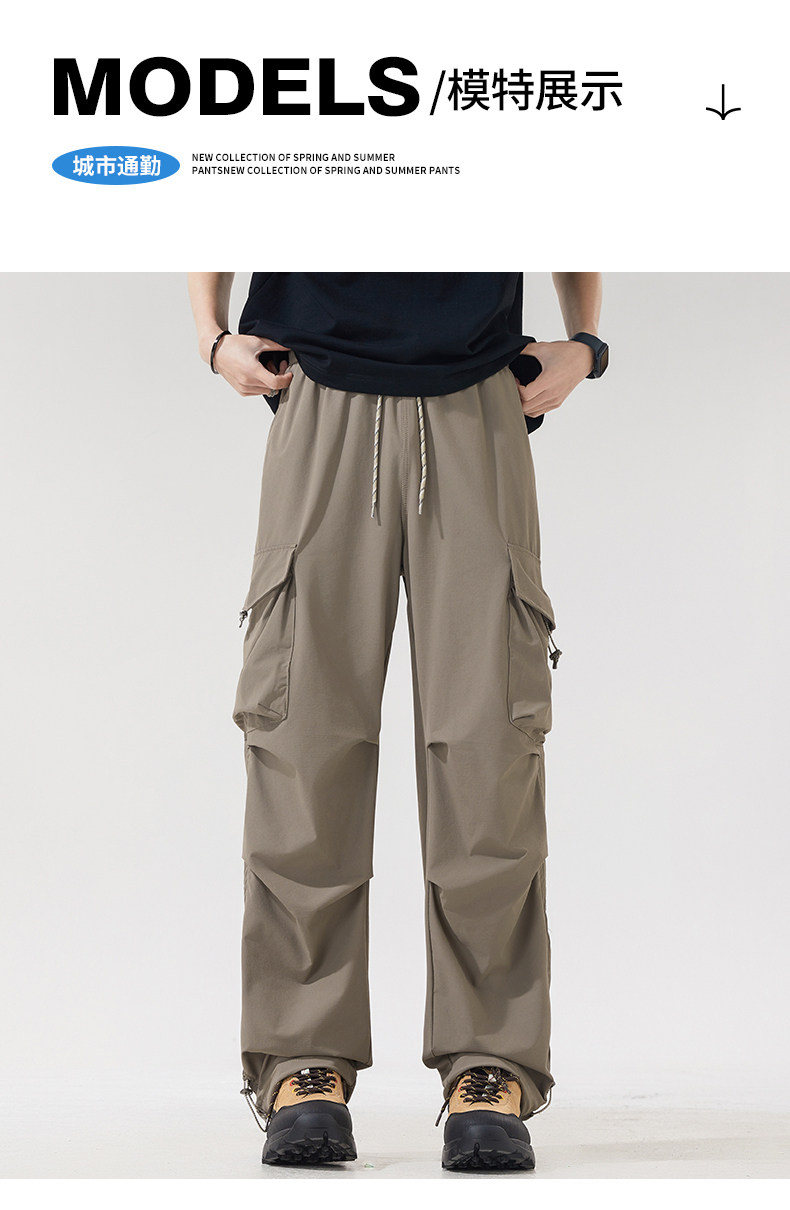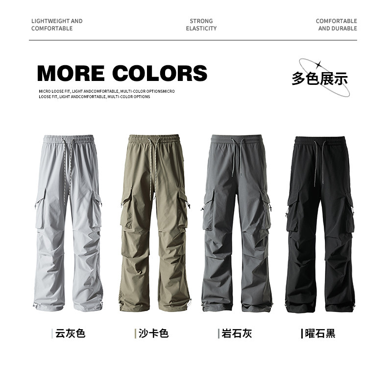 WASSUP NURAYA山系登山沖鋒工裝長褲直筒濶腿速乾冰絲休閒褲男潮