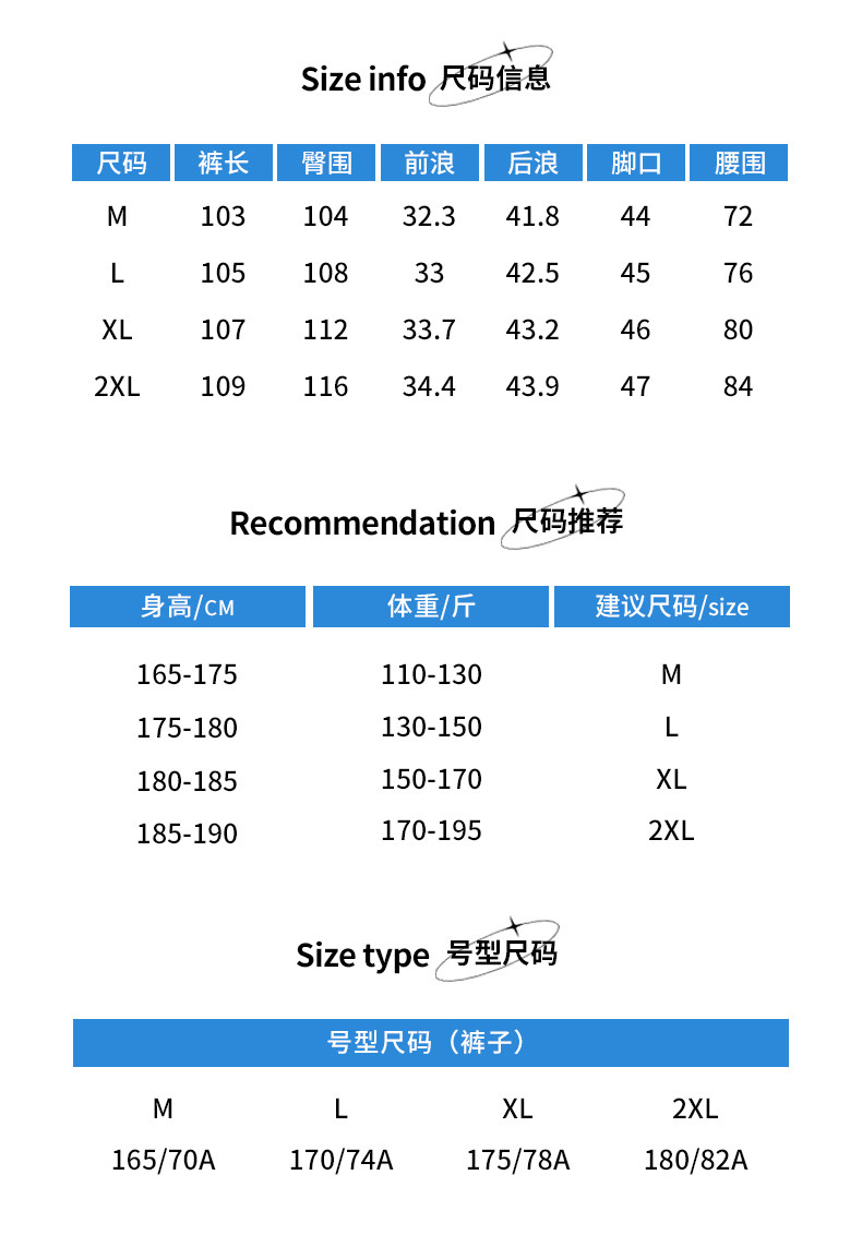 | 褲長 | 長褲 |