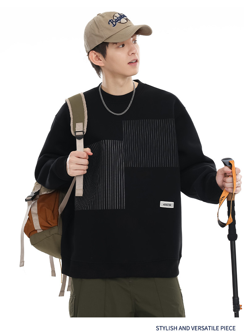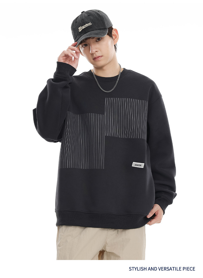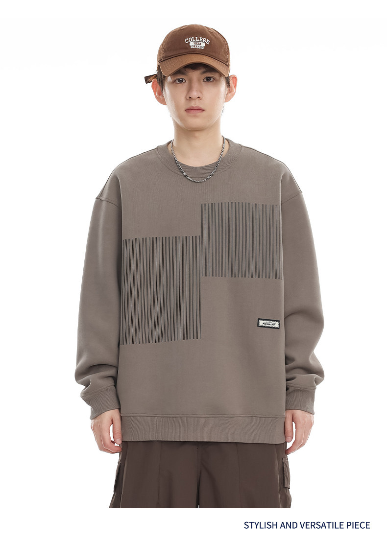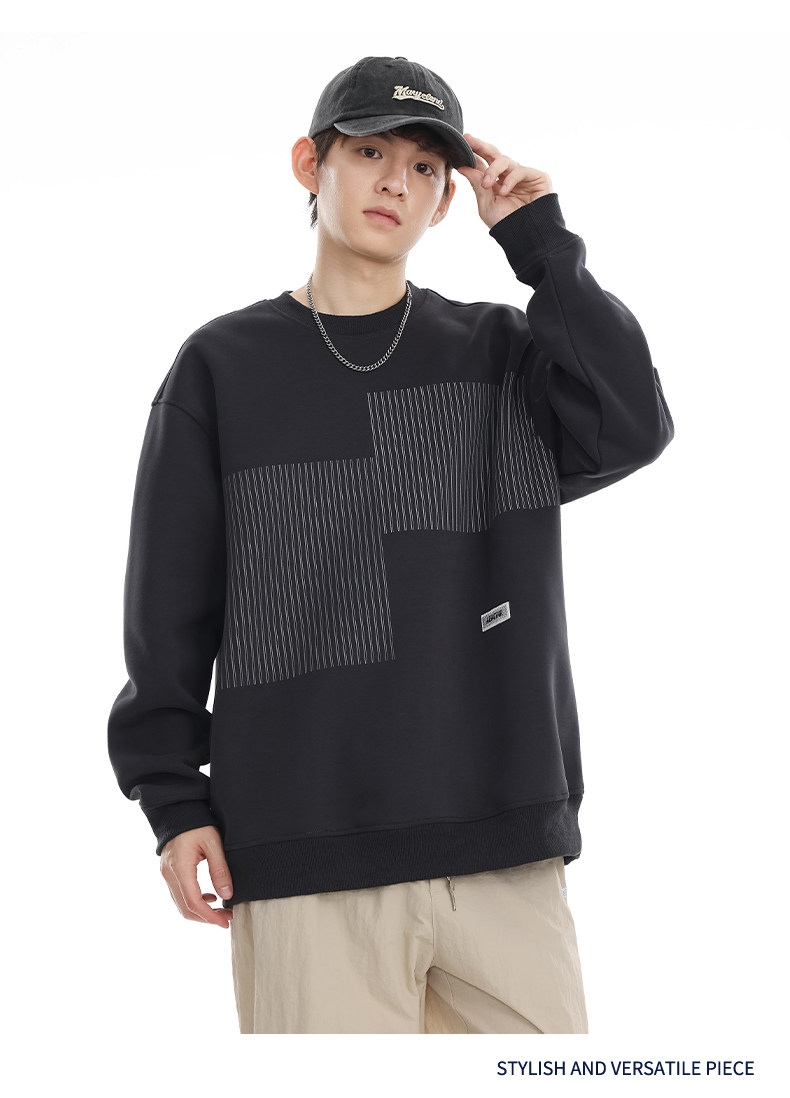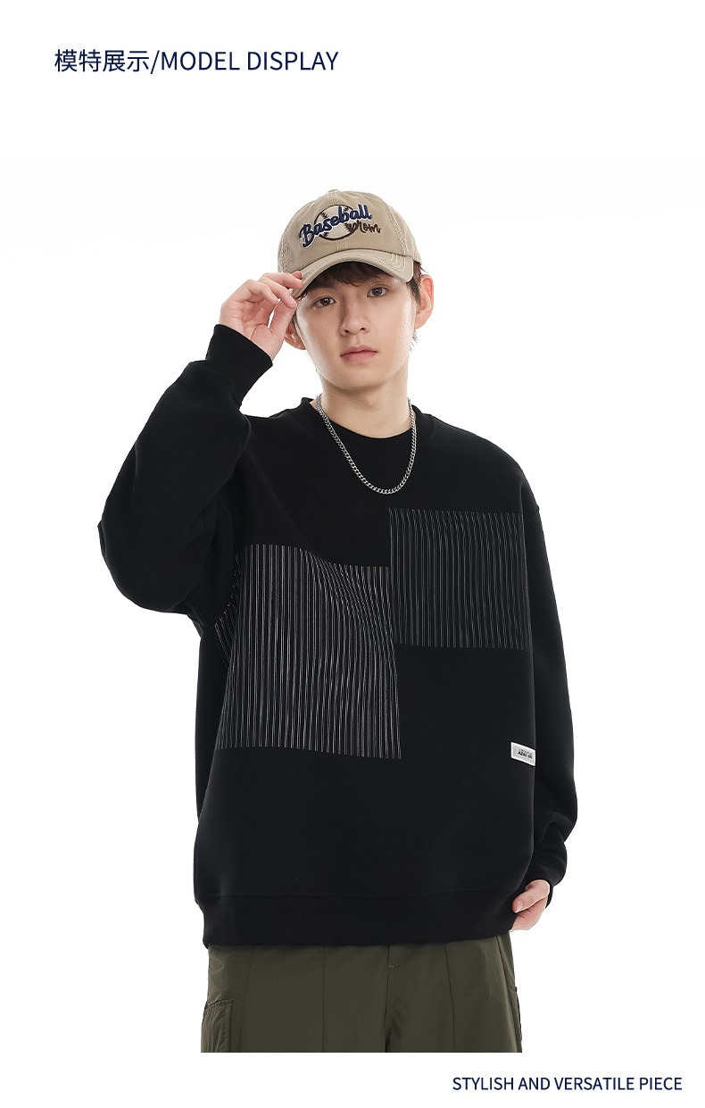 美式重磅圓領衛衣男2025春季潮牌條紋印花休閒寬鬆百搭套頭外套