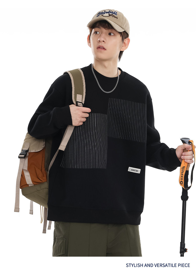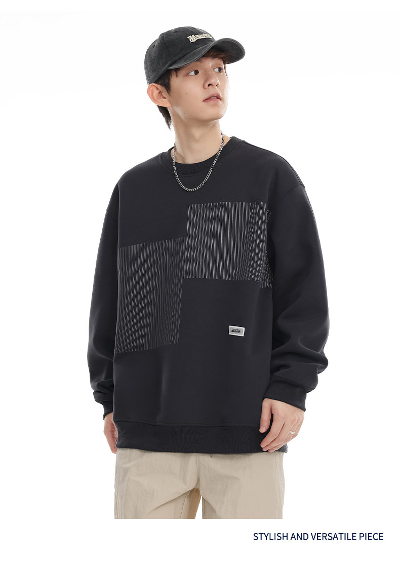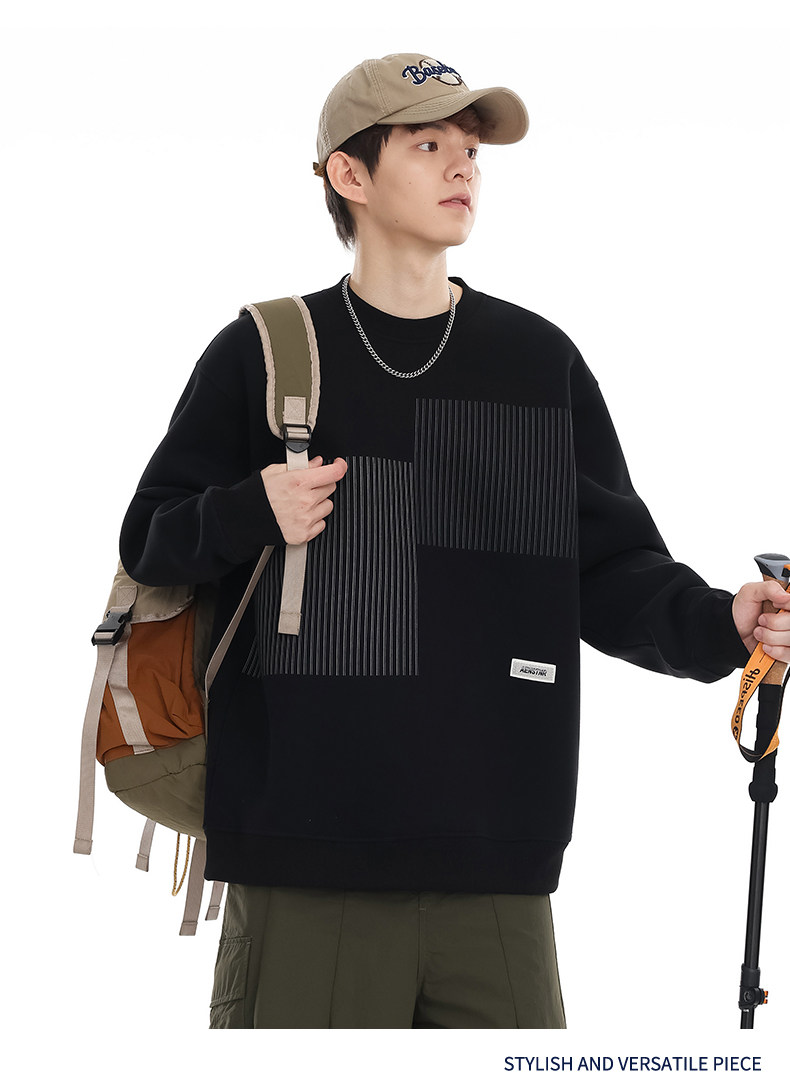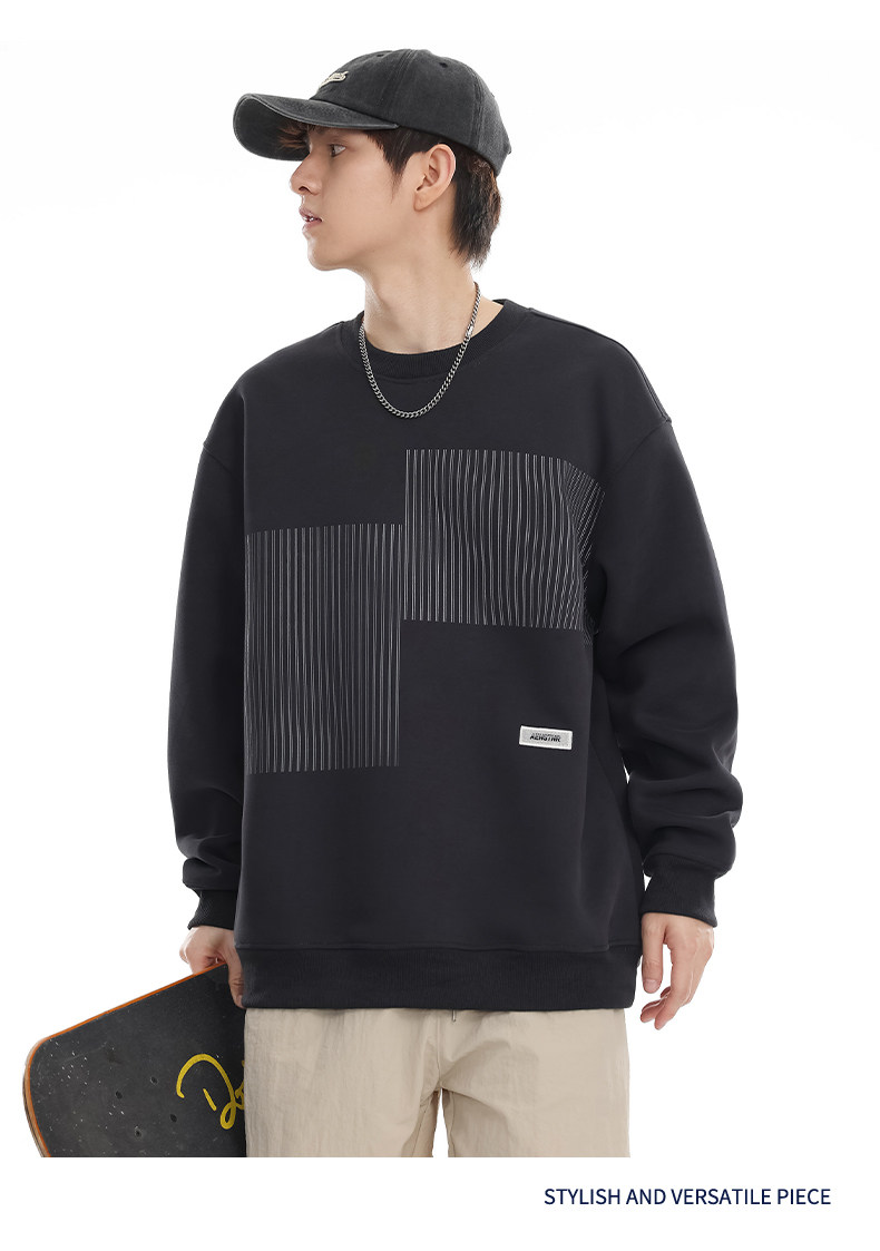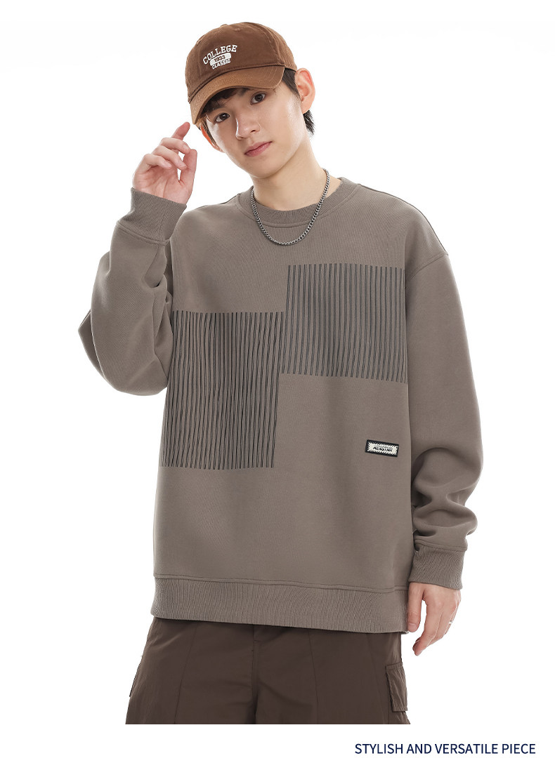 美式重磅圓領衛衣男2025春季潮牌條紋印花休閒寬鬆百搭套頭外套
