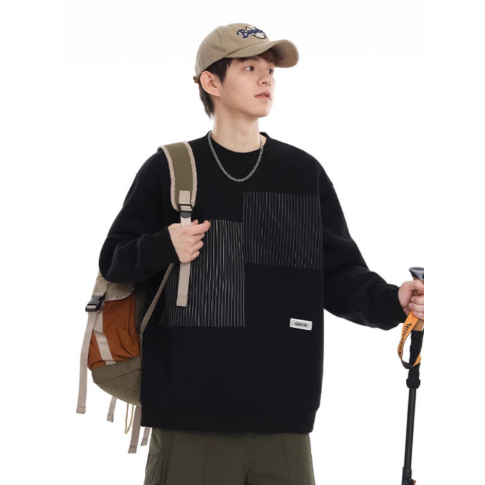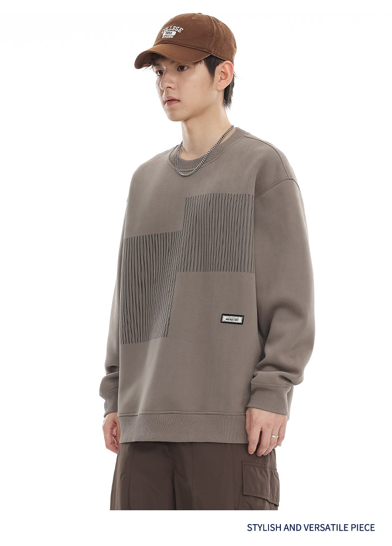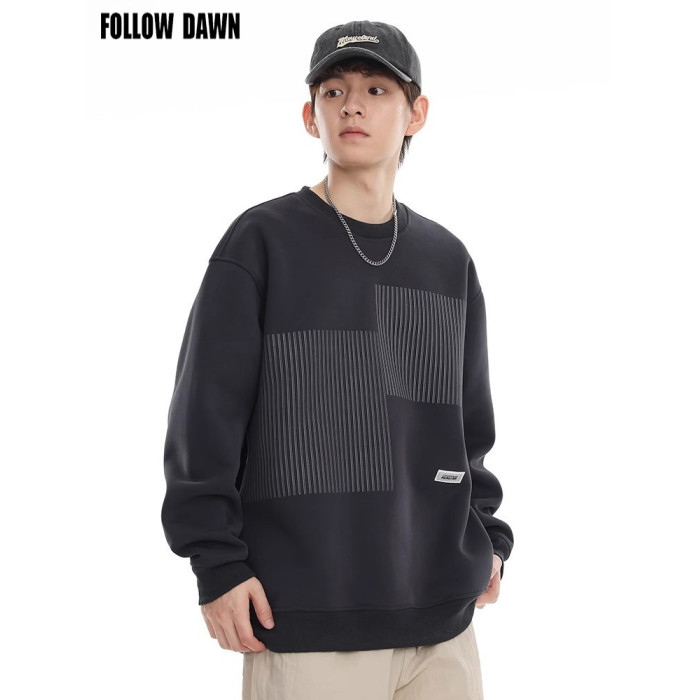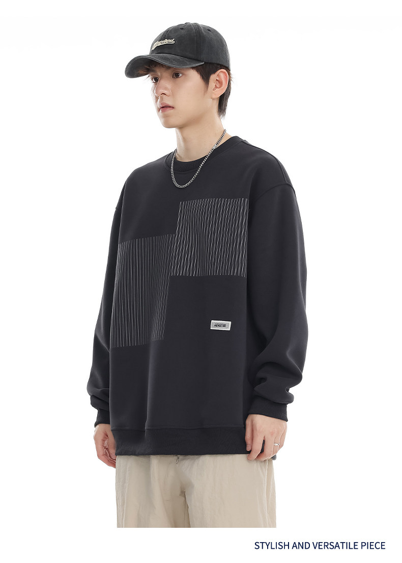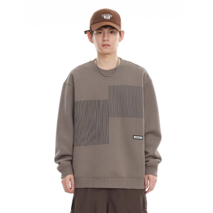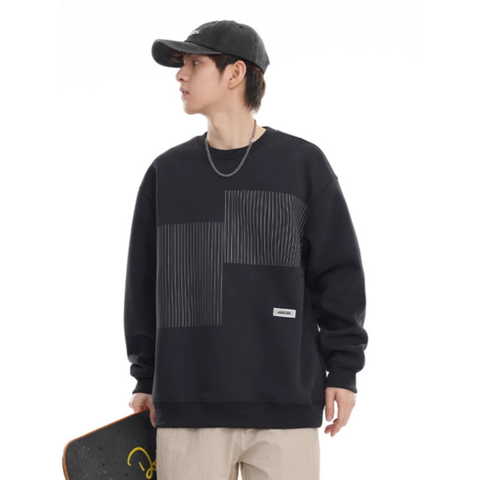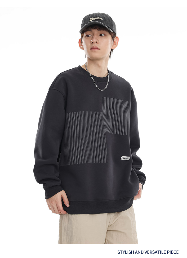 美式重磅圓領衛衣男2025春季潮牌條紋印花休閒寬鬆百搭套頭外套