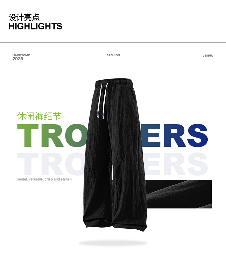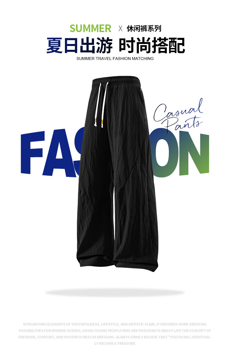 WASSUP Nuraya潮牌夏季冰絲褲男寬鬆冰感透氣直筒速乾休閒長褲子