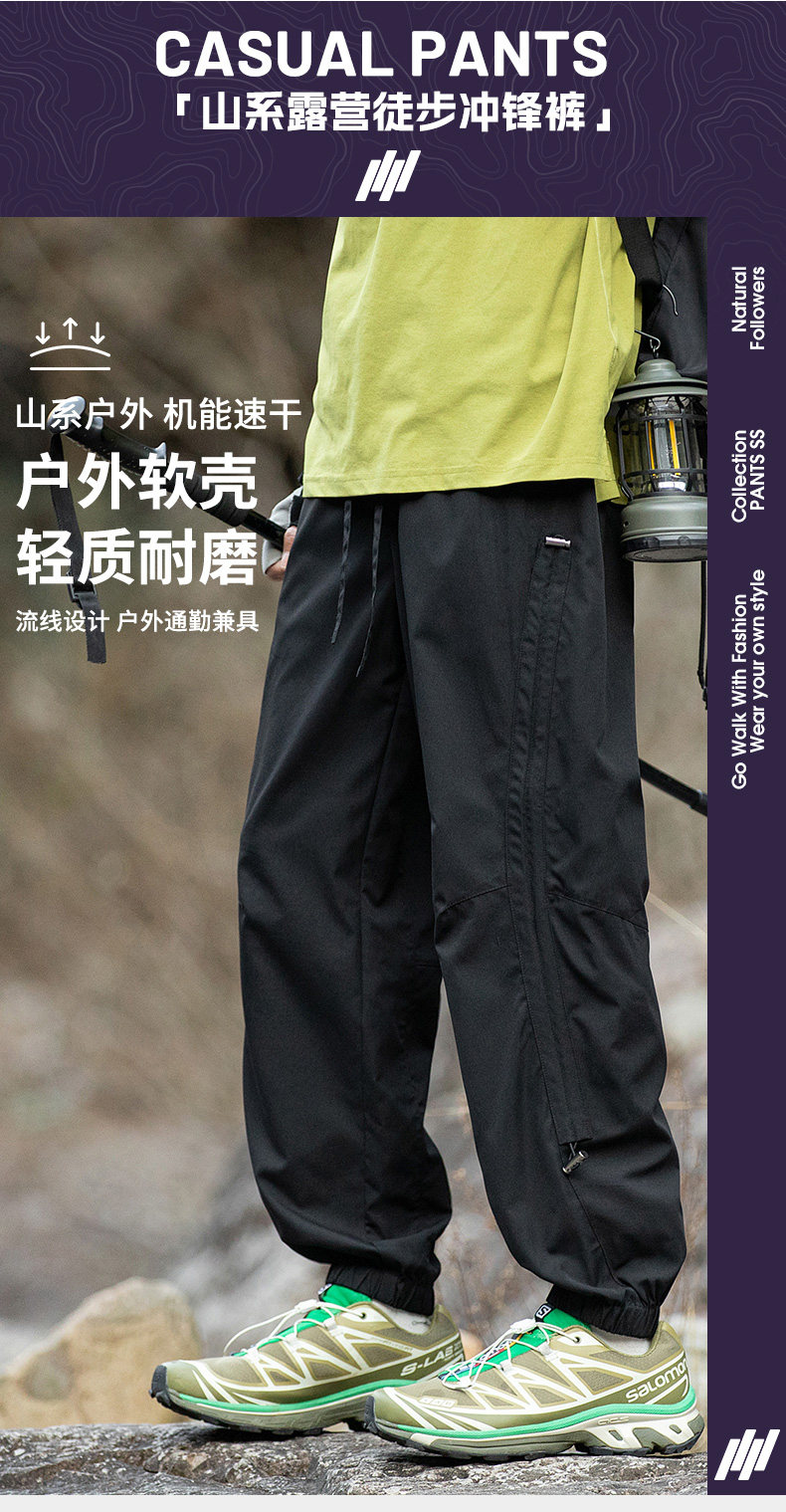 WASSUP NURAYA山系戶外機能風束腳沖鋒褲男潮復古寬鬆百搭運動褲