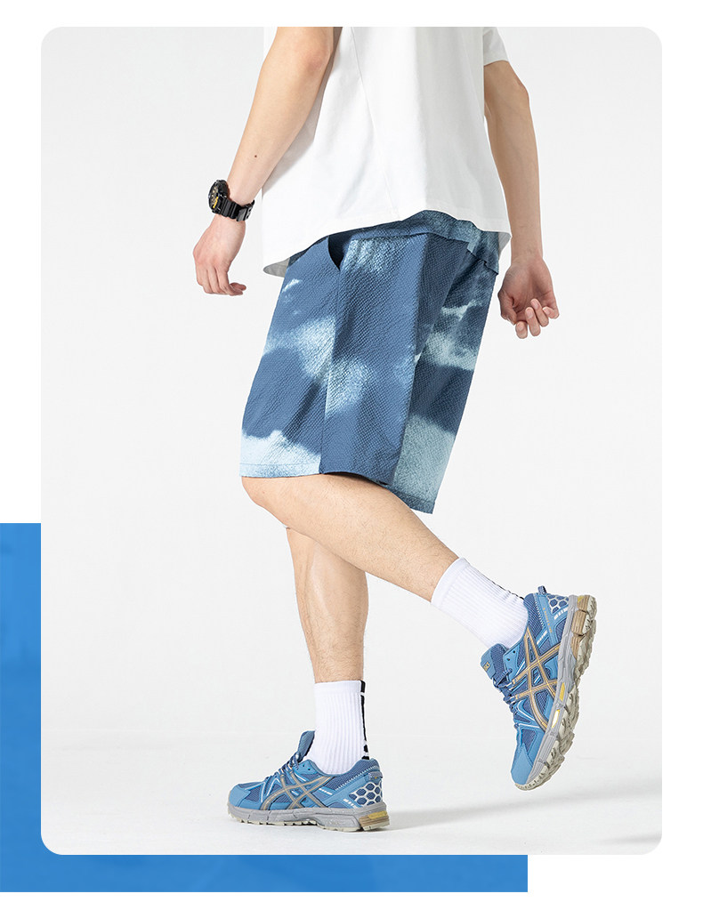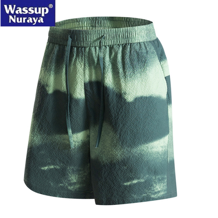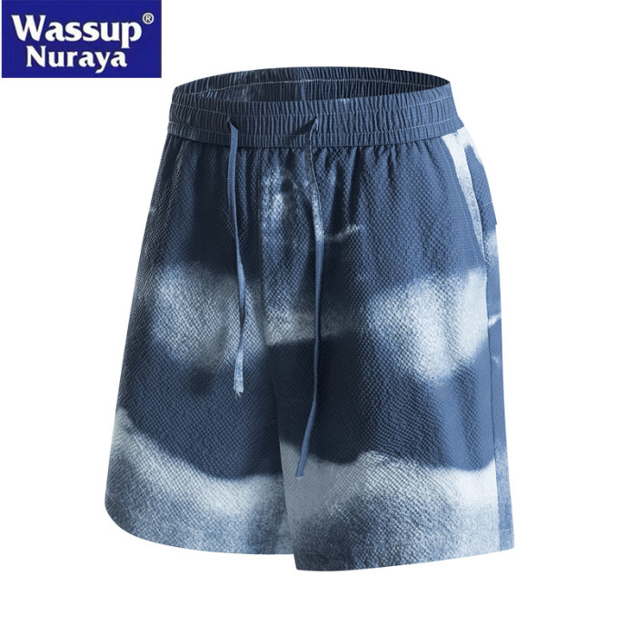 WASSUP Nuraya潮牌夏季短褲男戶外休閒速乾紥染運動寬鬆五分中褲