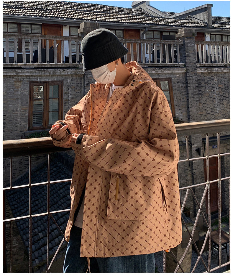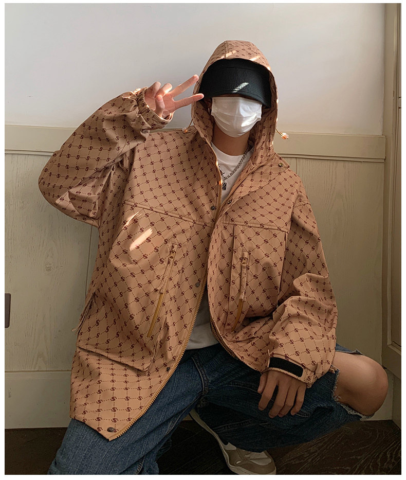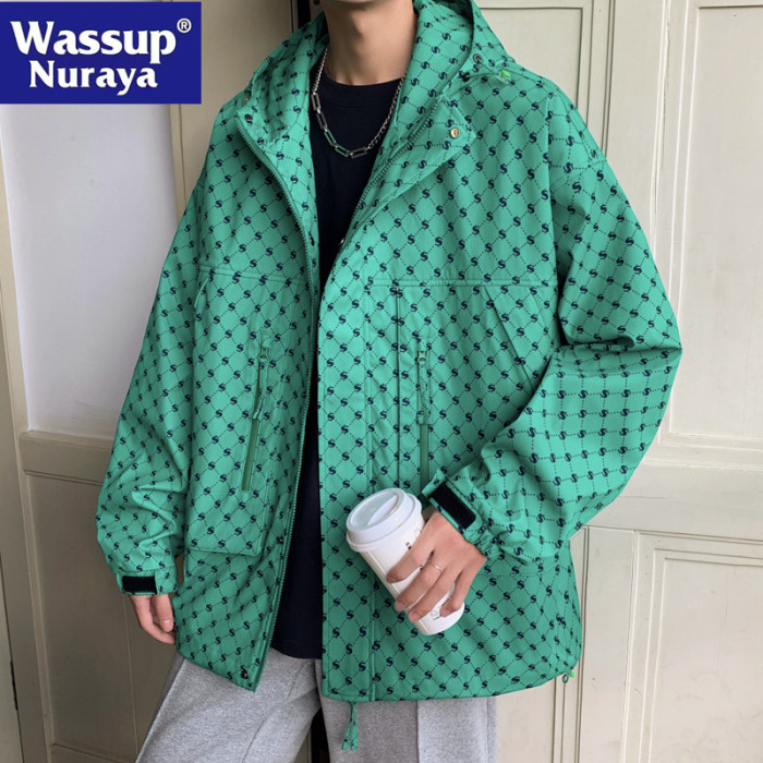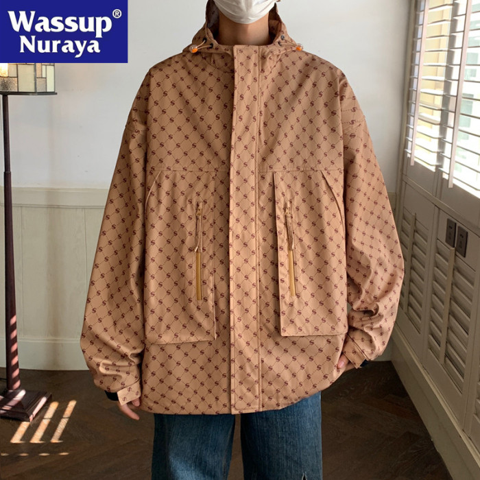 WASSUP NURAYA戶外連帽沖鋒衣外套男春秋季日系青少年寬鬆夾克衫