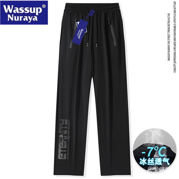 WASSUP Nuraya潮牌冰絲夏季薄款寬鬆直筒運動涼感休閒百搭長褲男