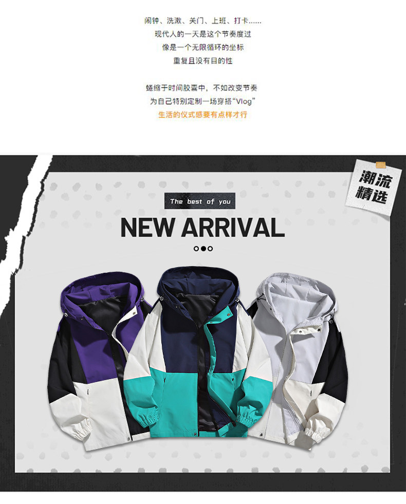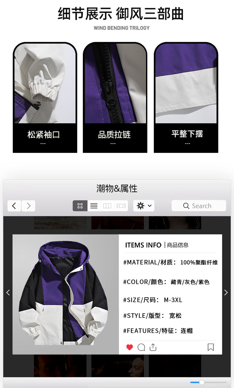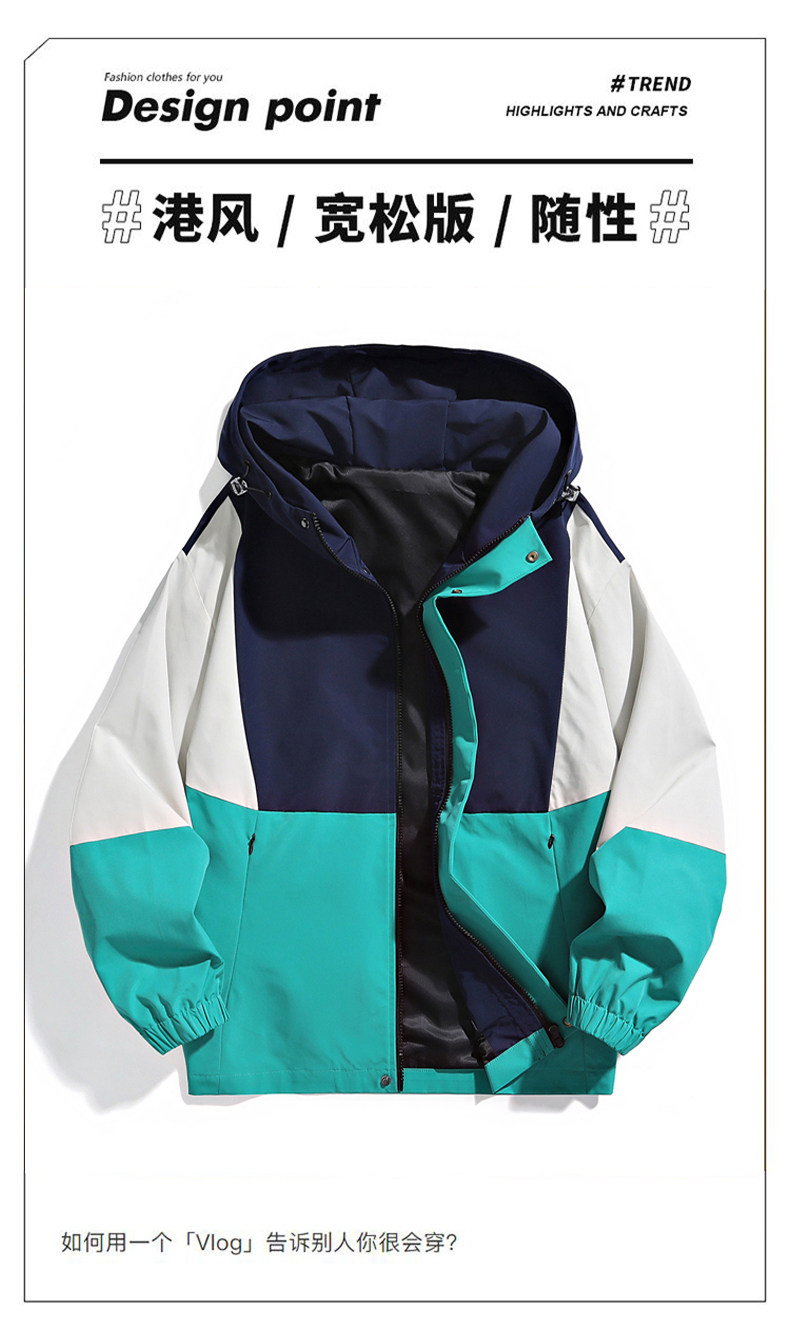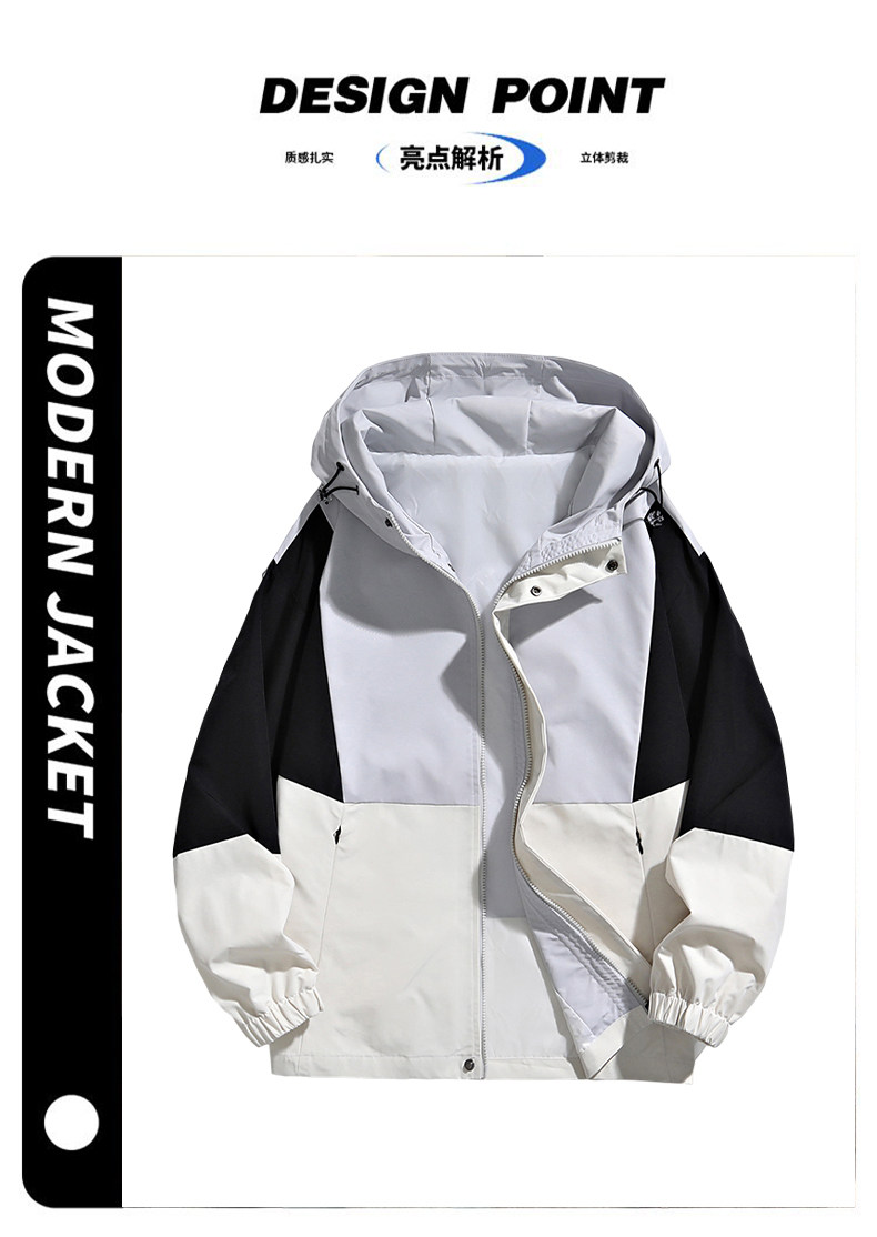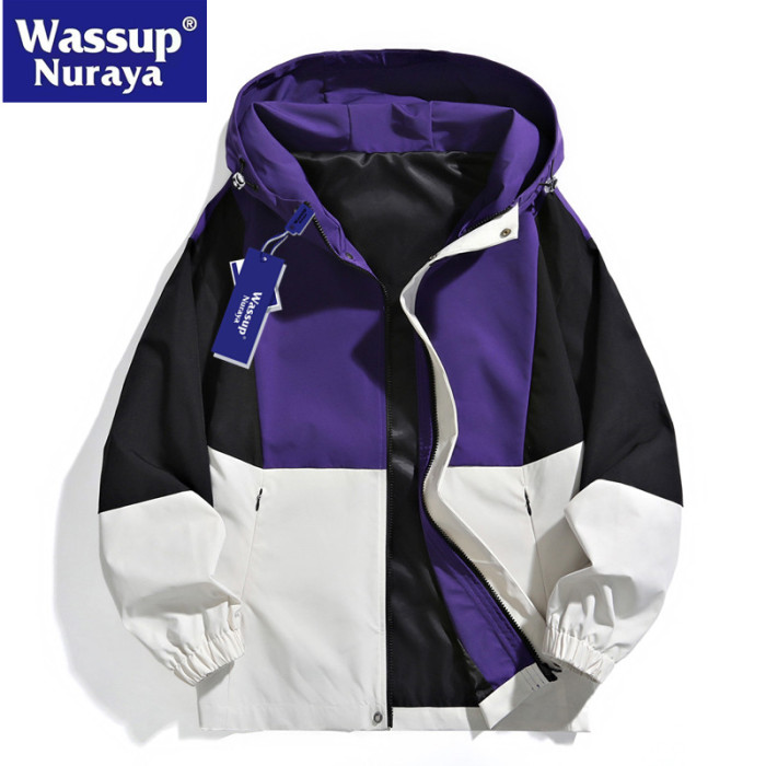 WASSUP Nuraya潮牌戶外沖鋒衣男春秋拼色寬鬆情侶連帽夾克外套男