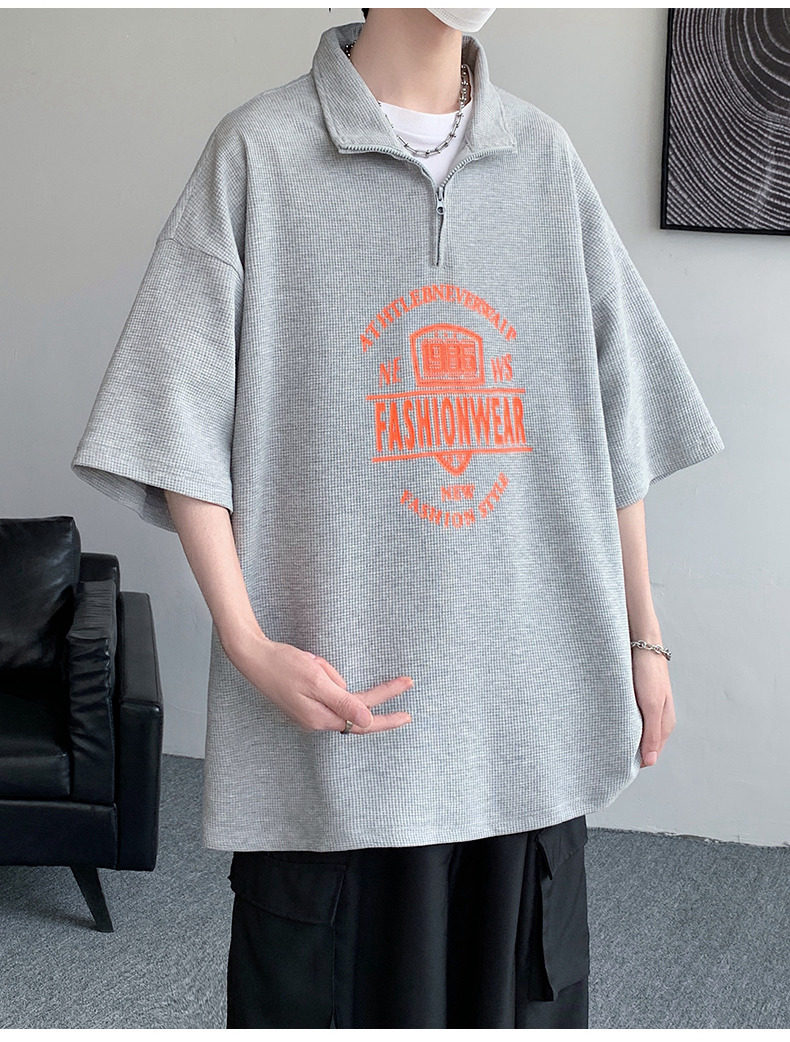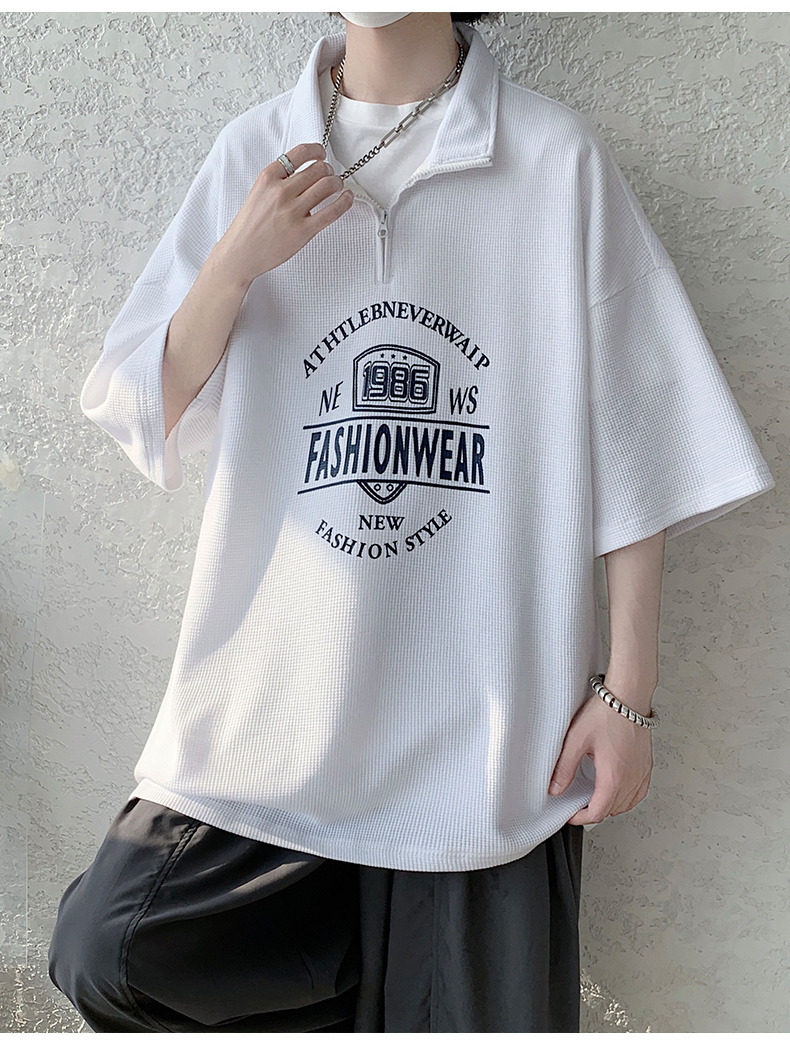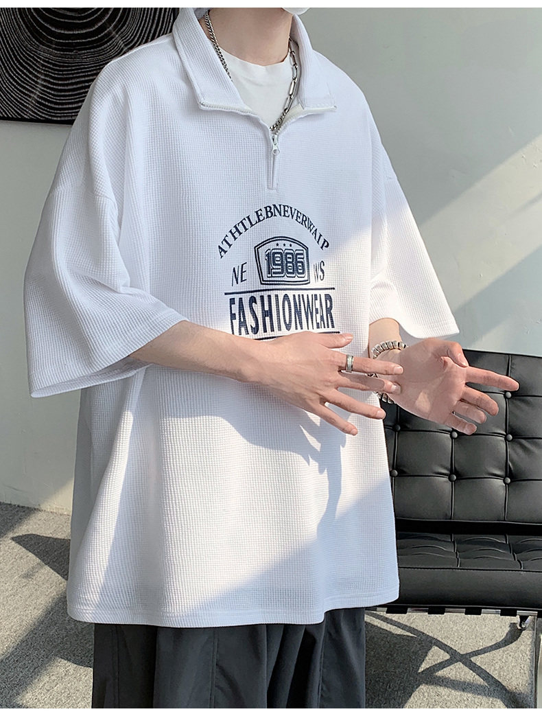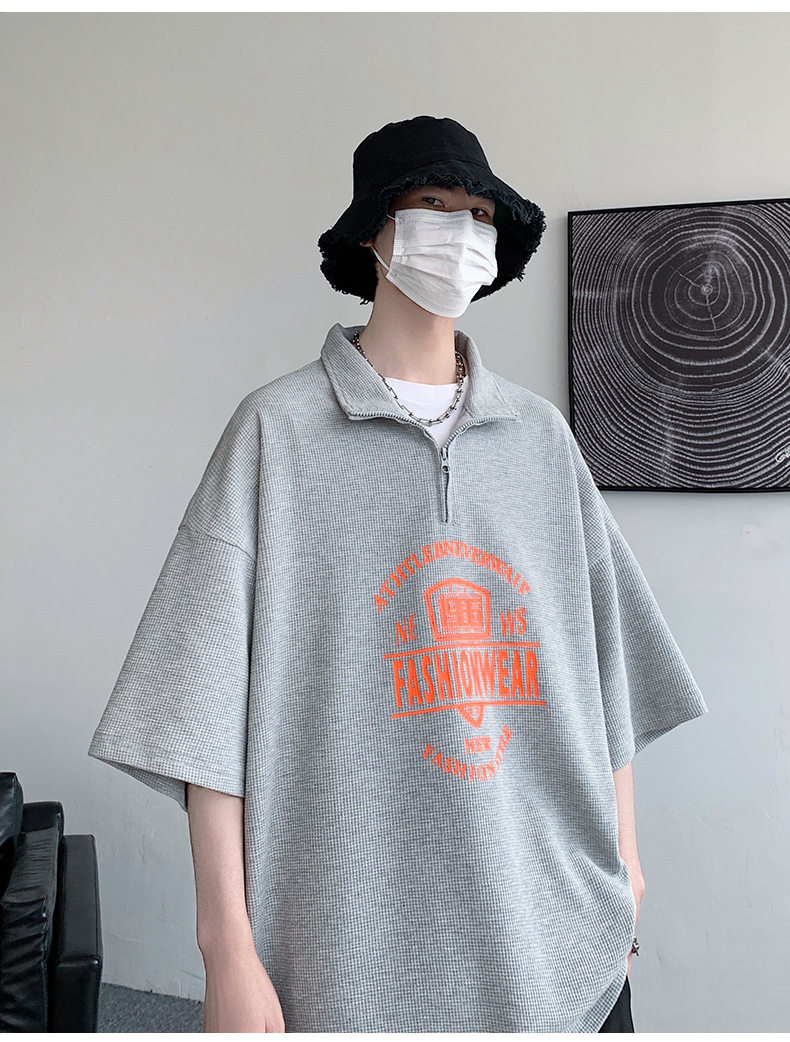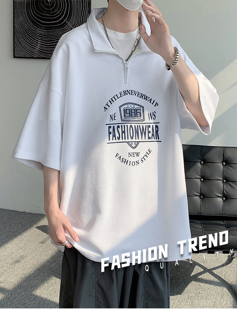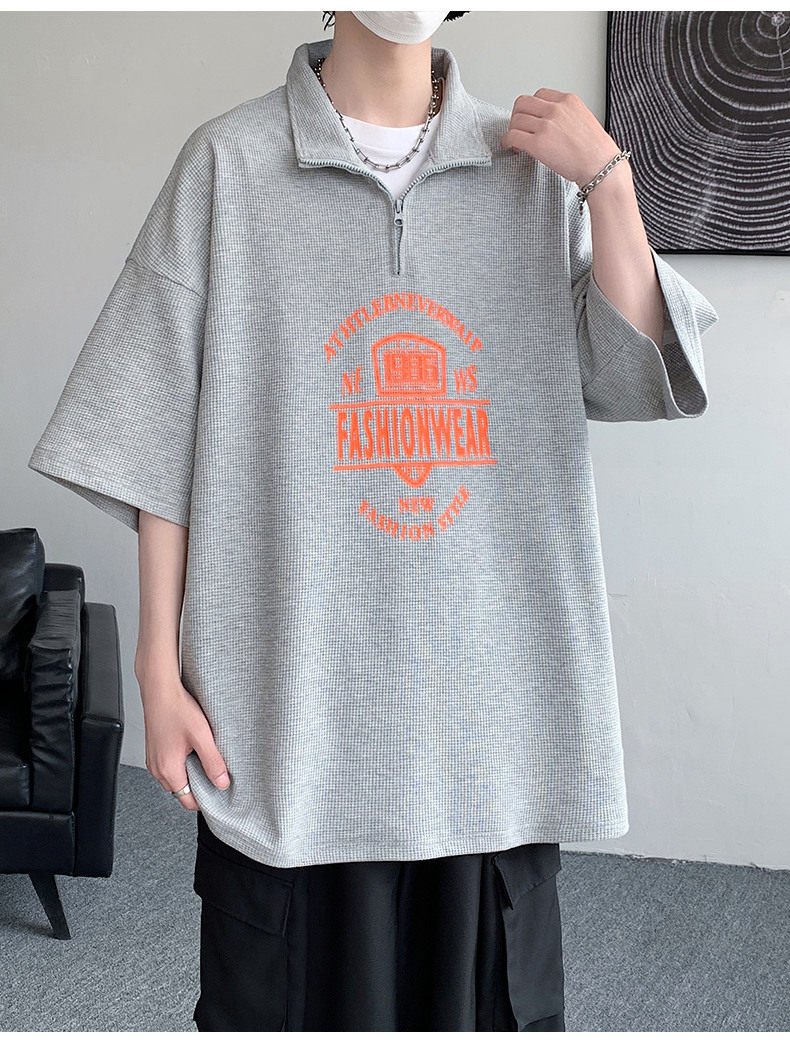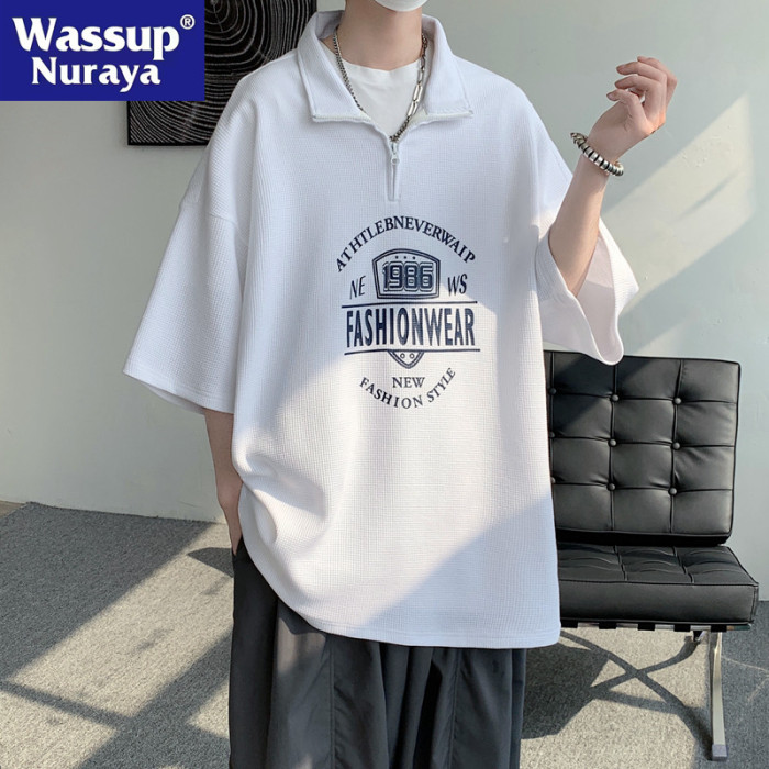 WASSUP NURAYA半拉鍊polo衫短袖男夏大碼美式半袖上衣學生帥氣t恤
