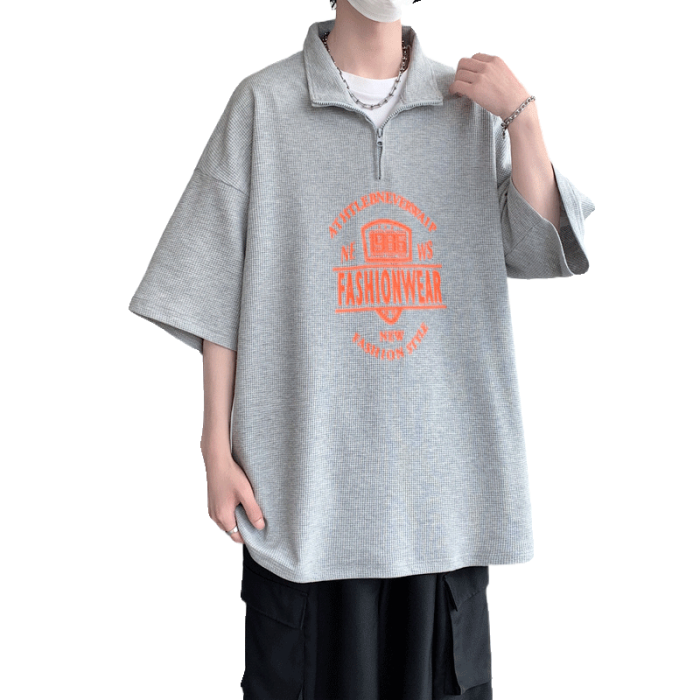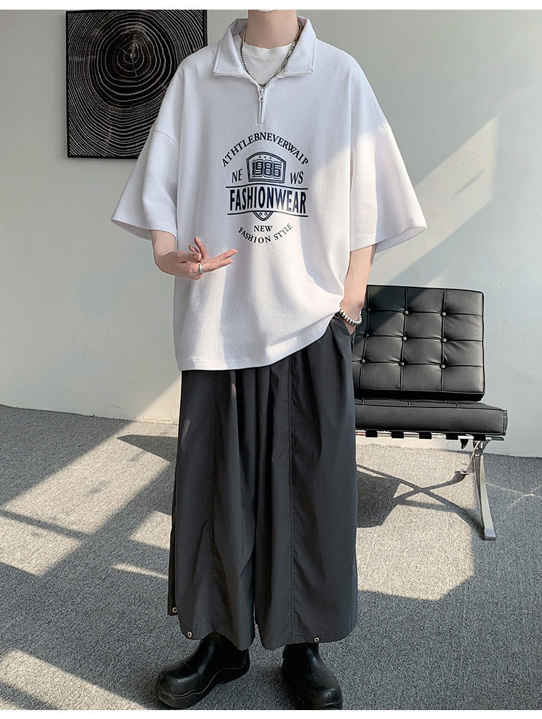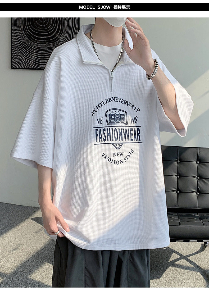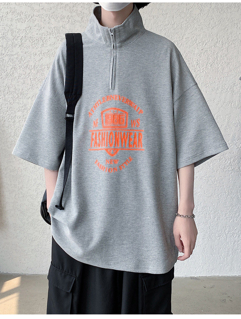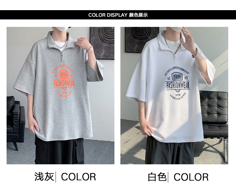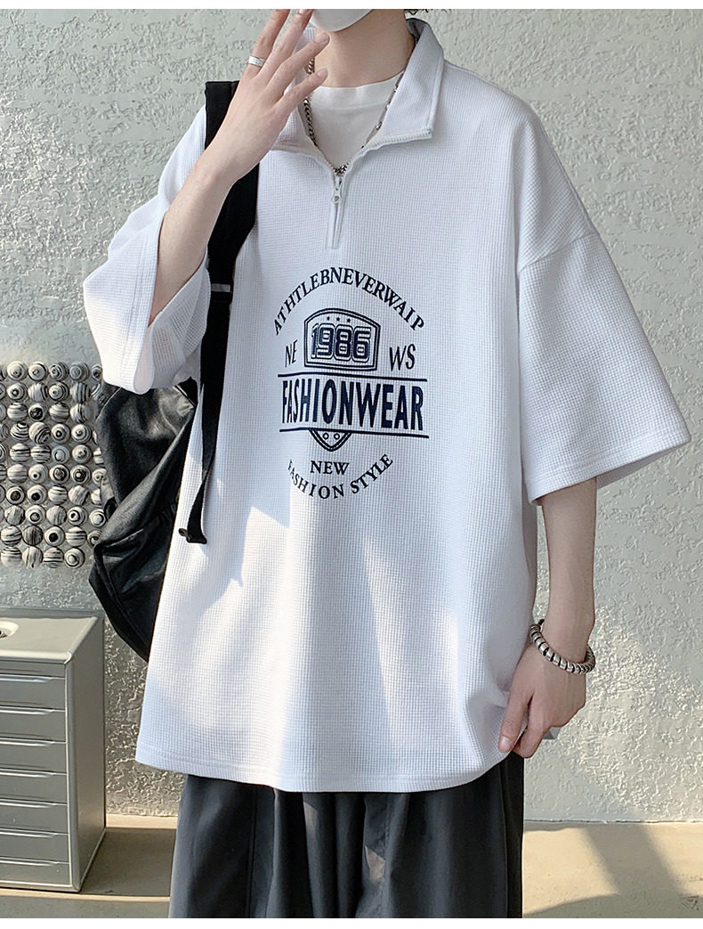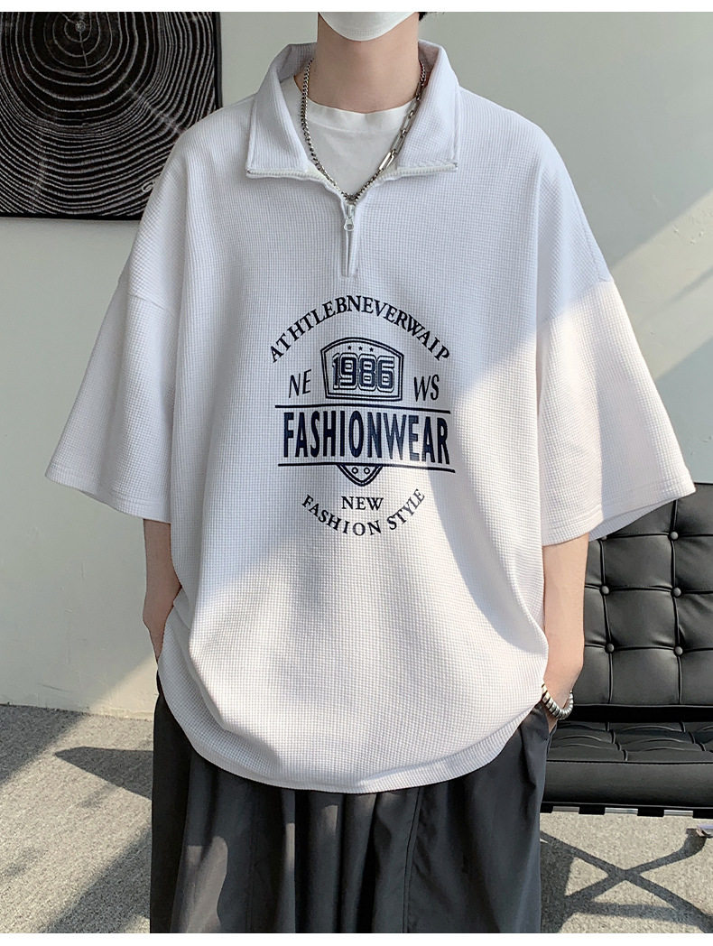 WASSUP NURAYA半拉鍊polo衫短袖男夏大碼美式半袖上衣學生帥氣t恤