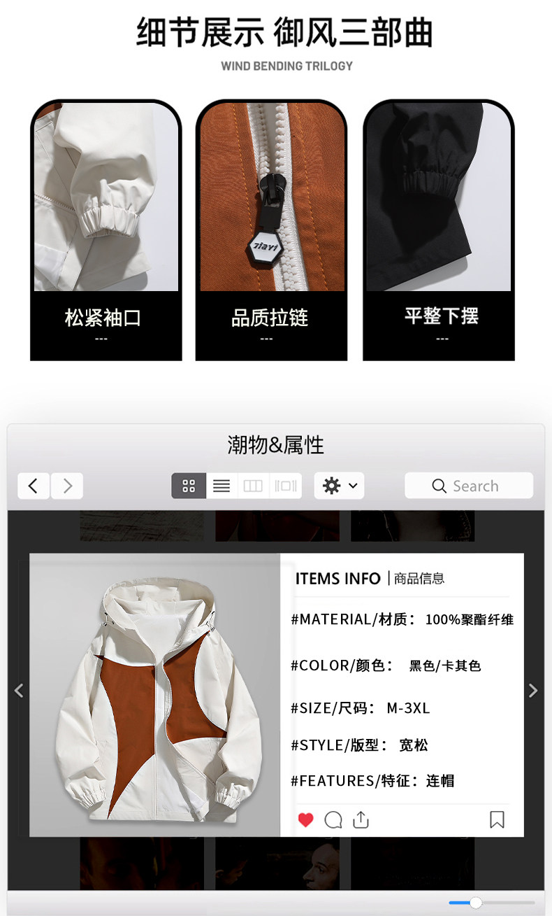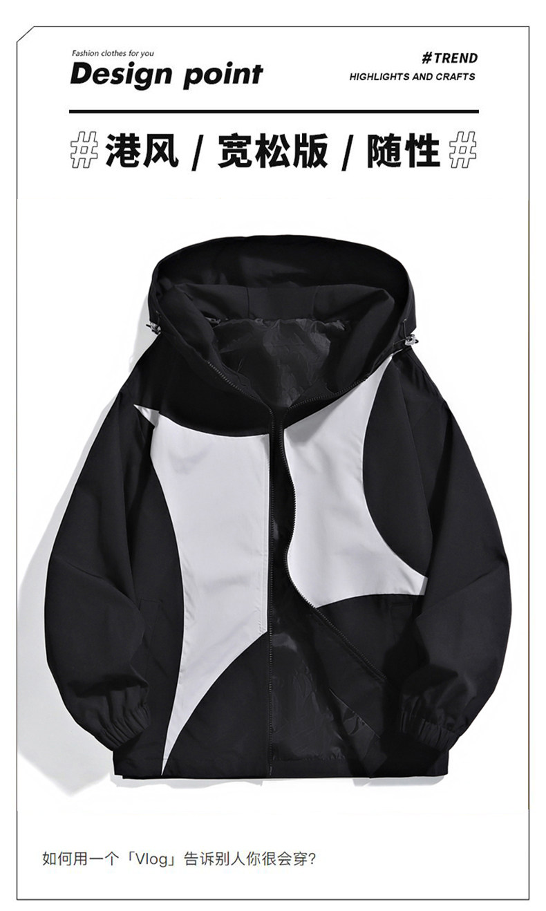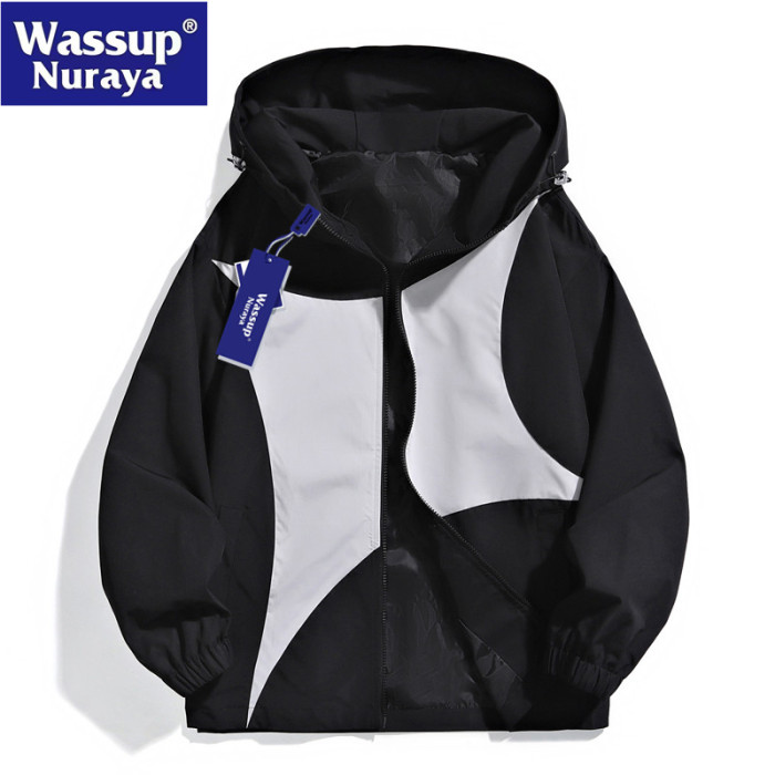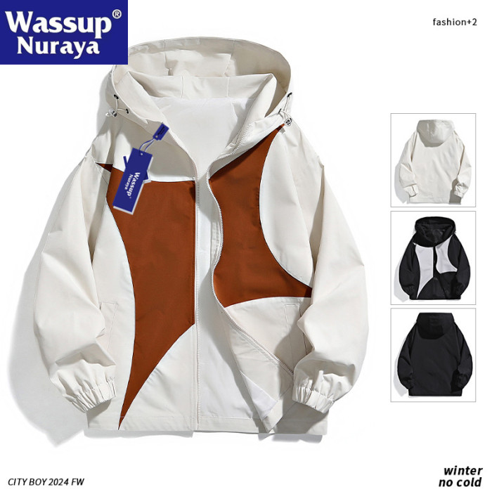WASSUP Nuraya潮牌戶外沖鋒衣男士春秋拼色寬鬆情侶連帽夾克外套