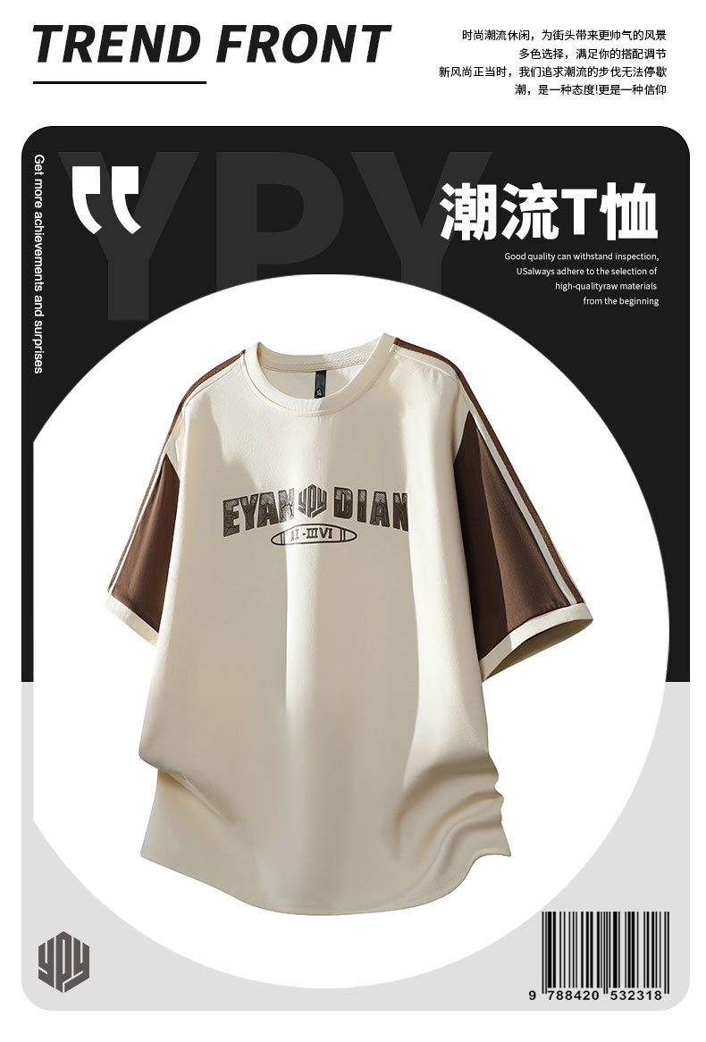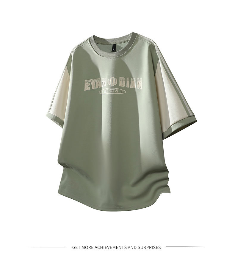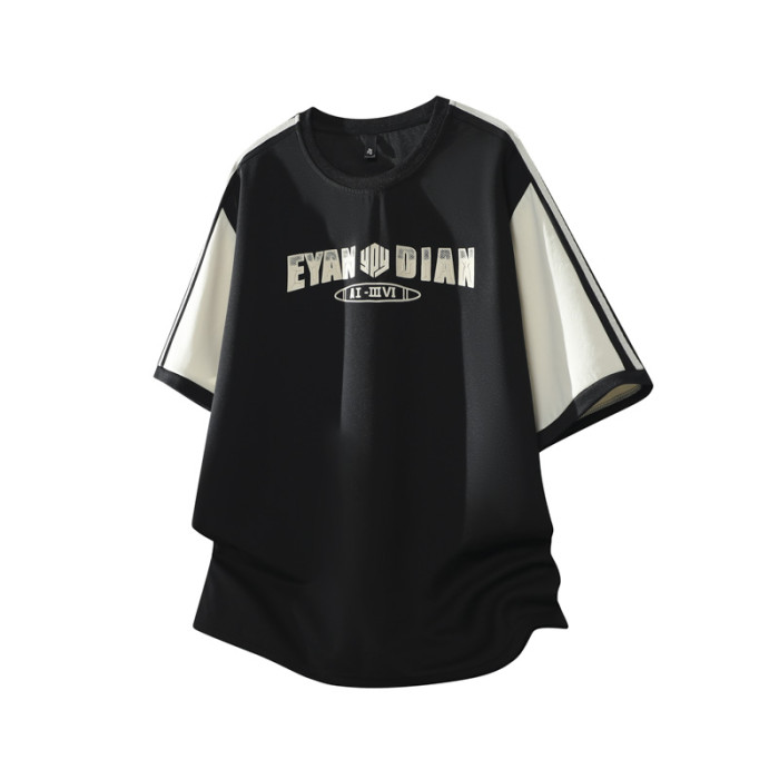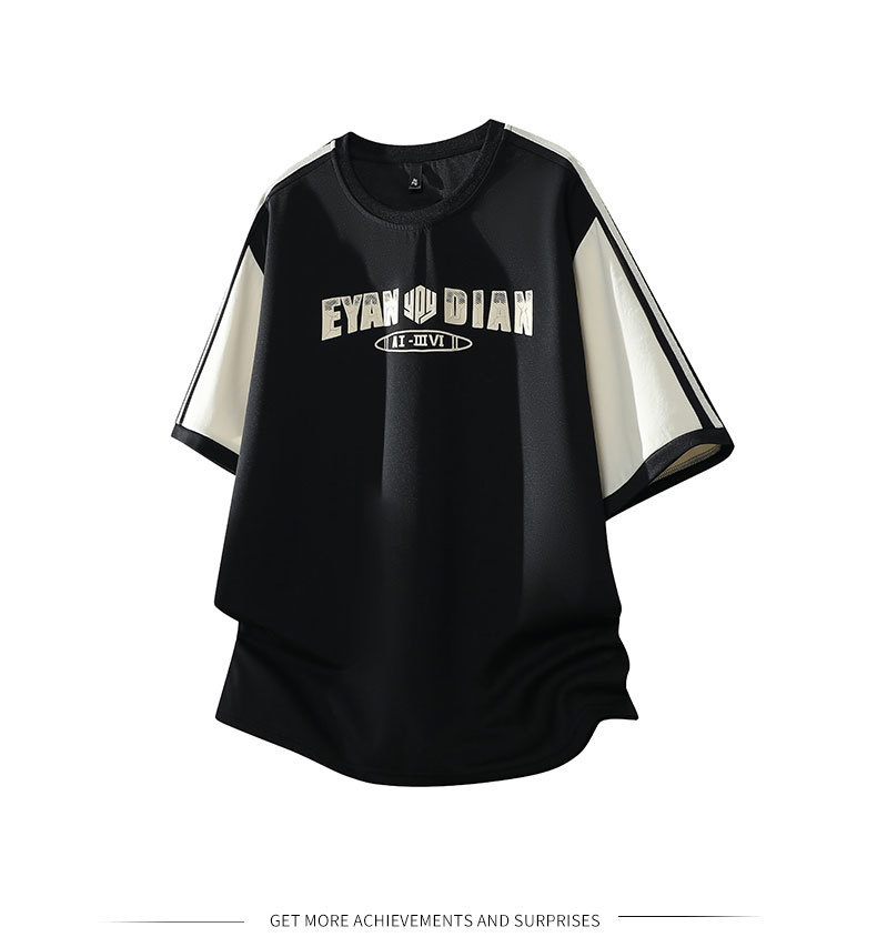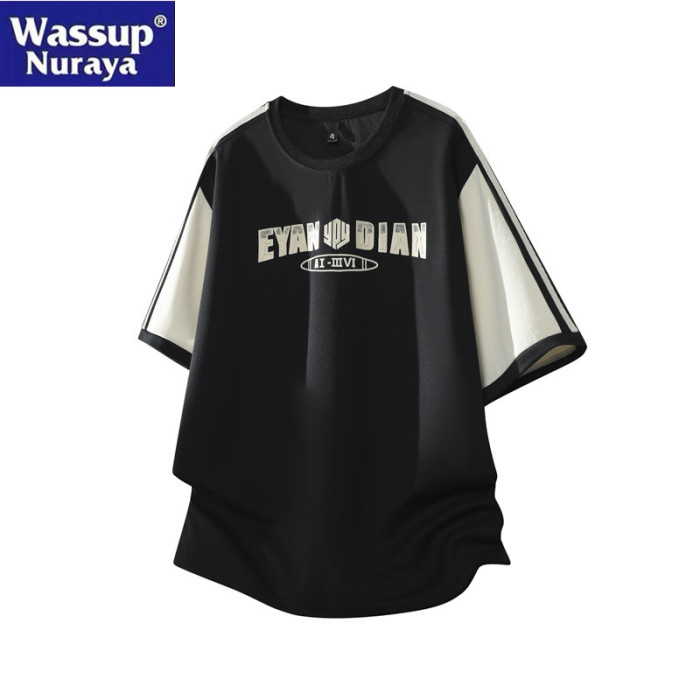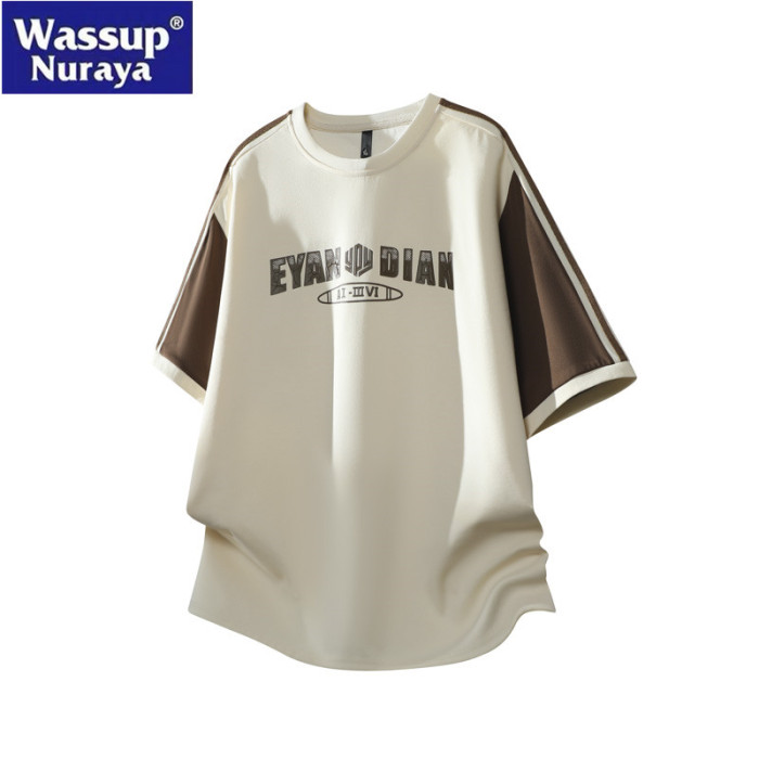WASSUP Nuraya潮牌美式短袖t恤男士夏季寬鬆圓領拼接撞色休閒上衣