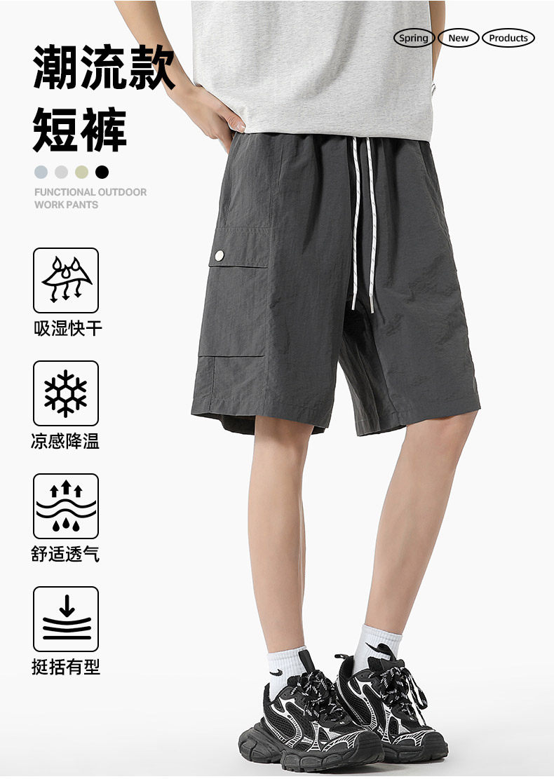 WASSUP NURAYA美式工裝短褲男夏季薄款冰絲透氣速乾工裝五分中褲