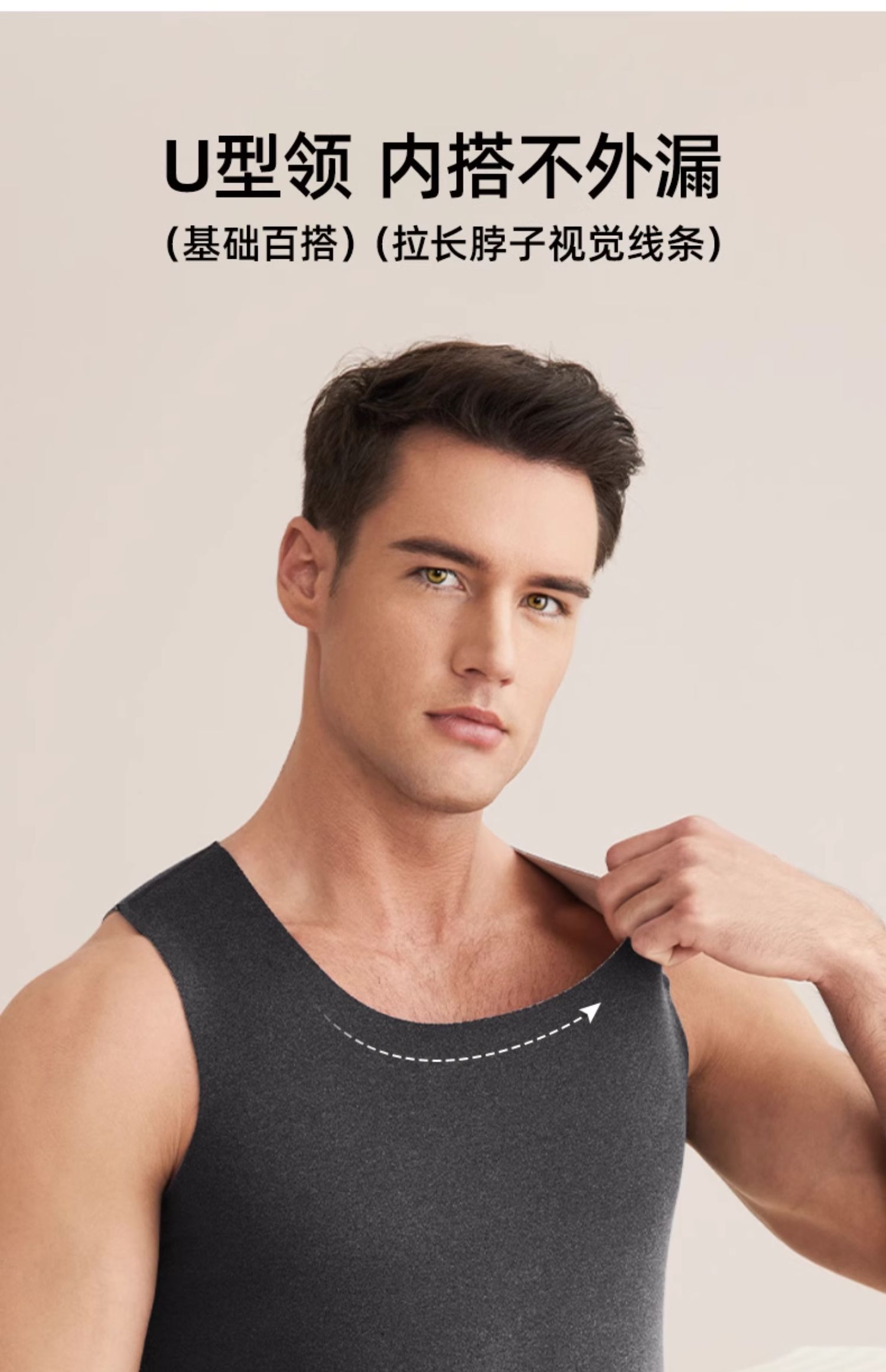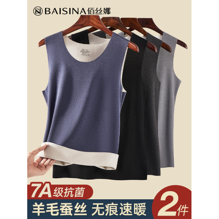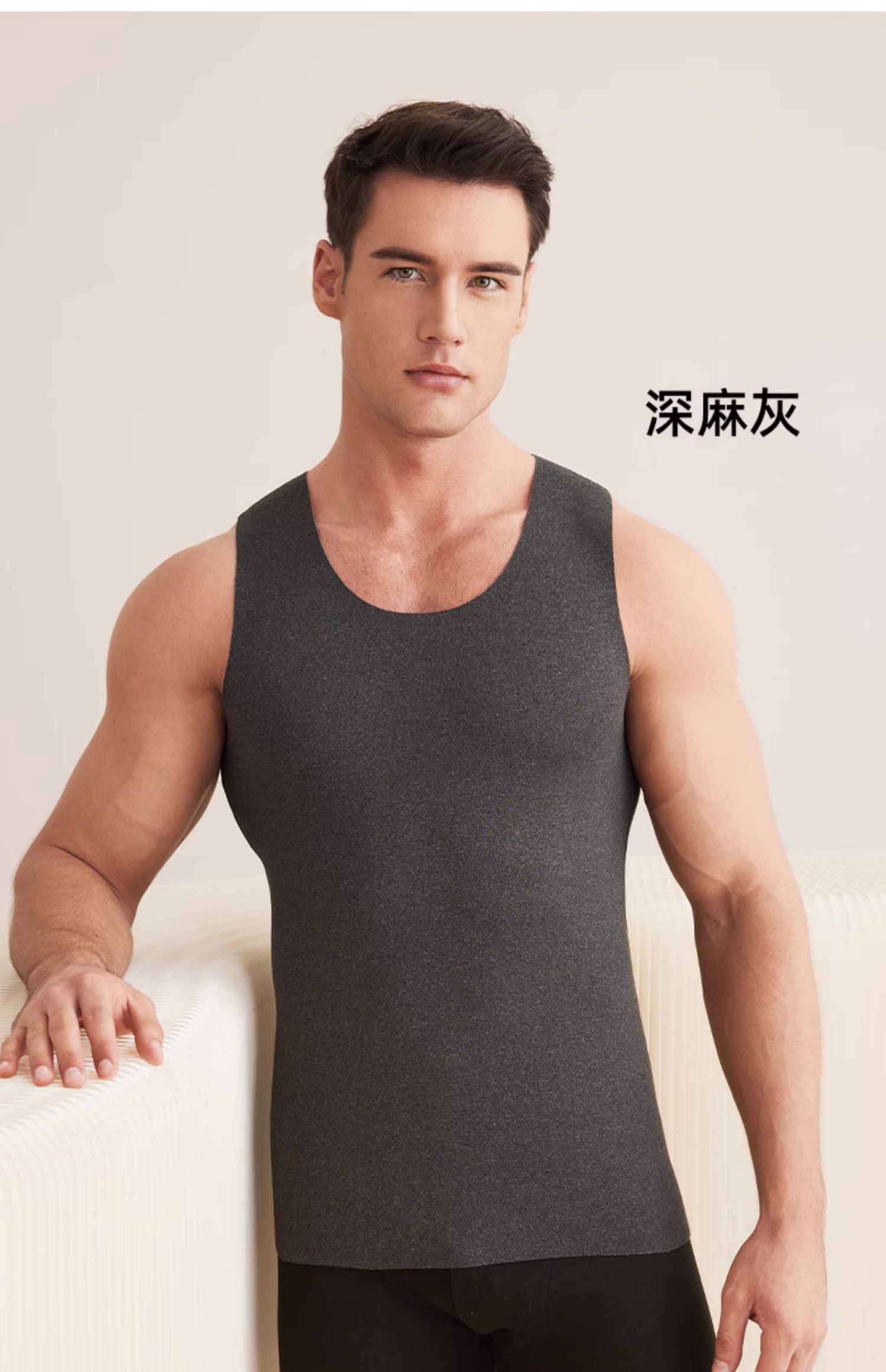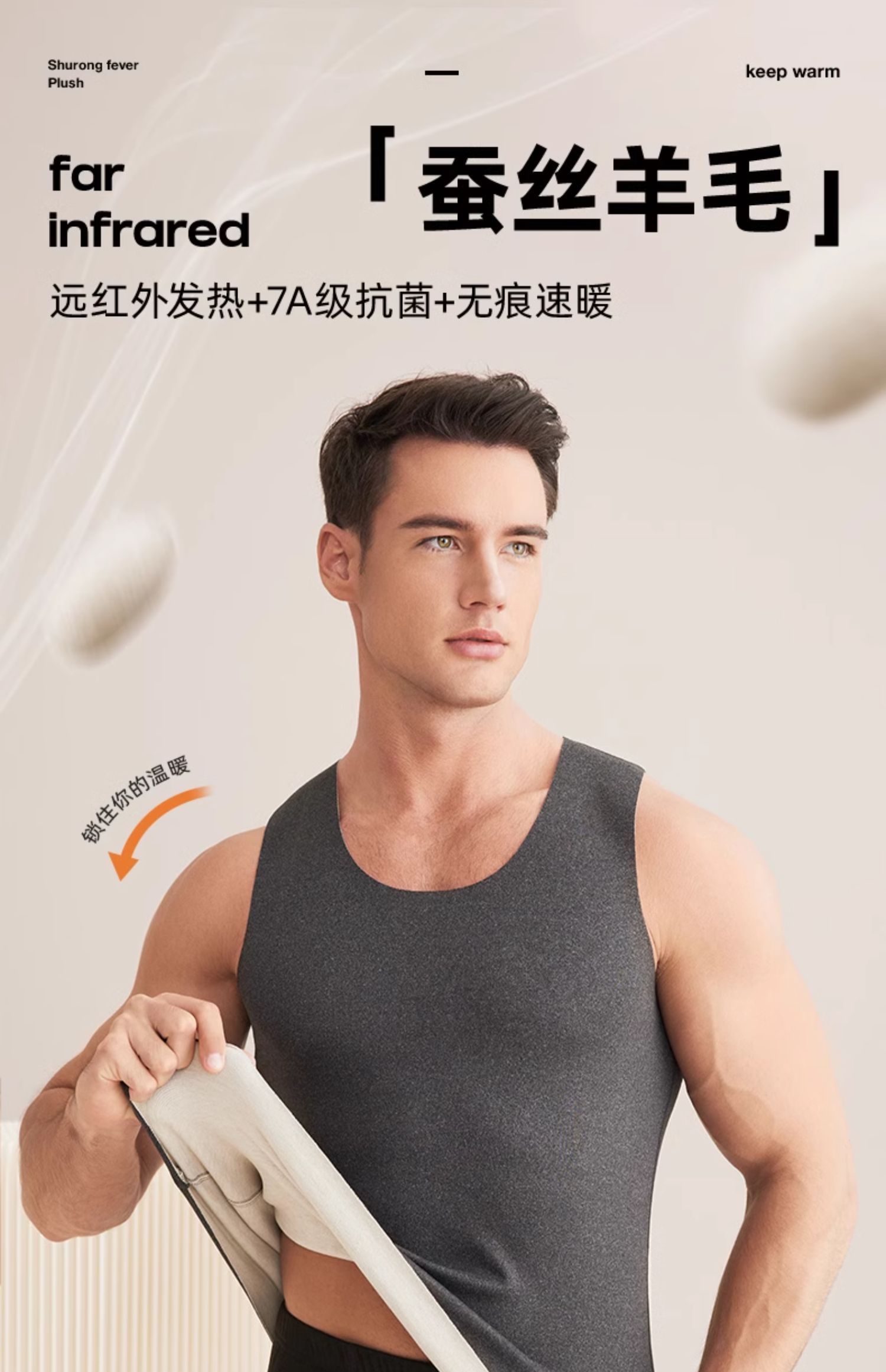 男士蠶絲羊毛保暖背心男款德絨髮熱加絨秋冬季無痕上衣打底內穿新