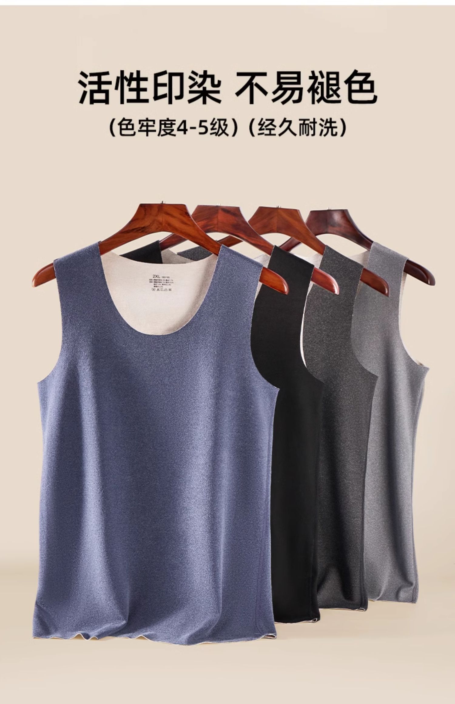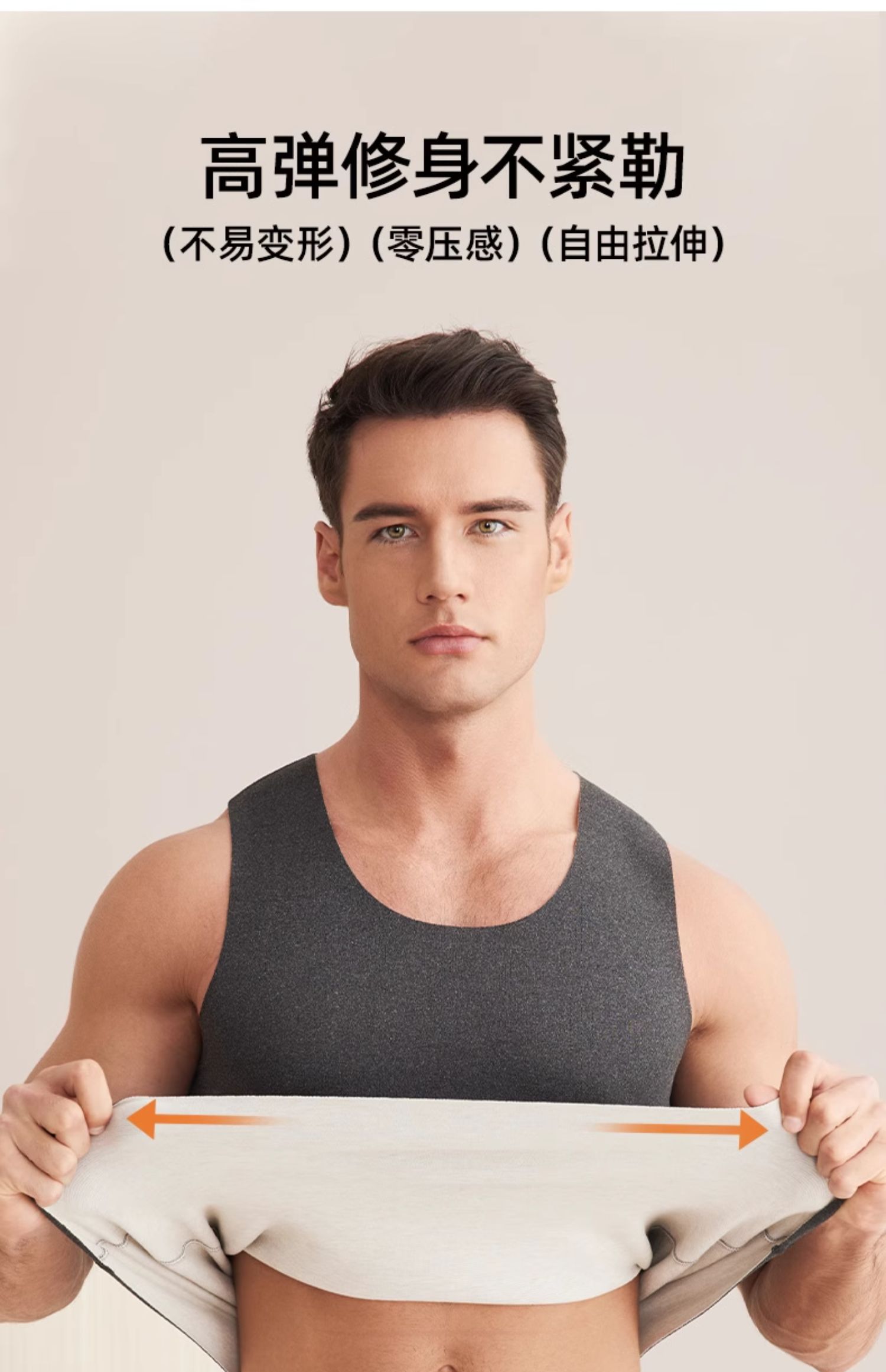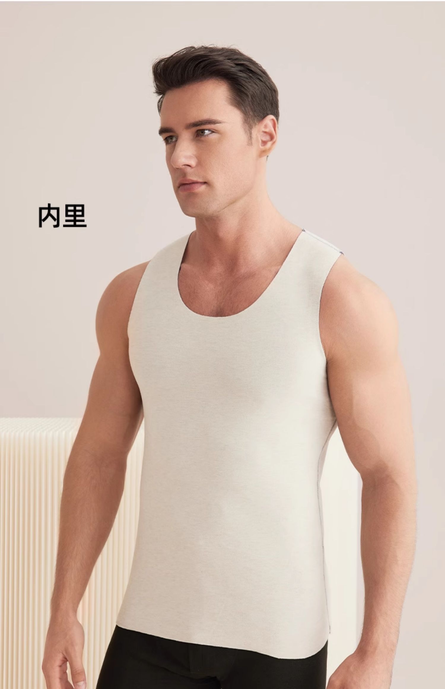 男士蠶絲羊毛保暖背心男款德絨髮熱加絨秋冬季無痕上衣打底內穿新