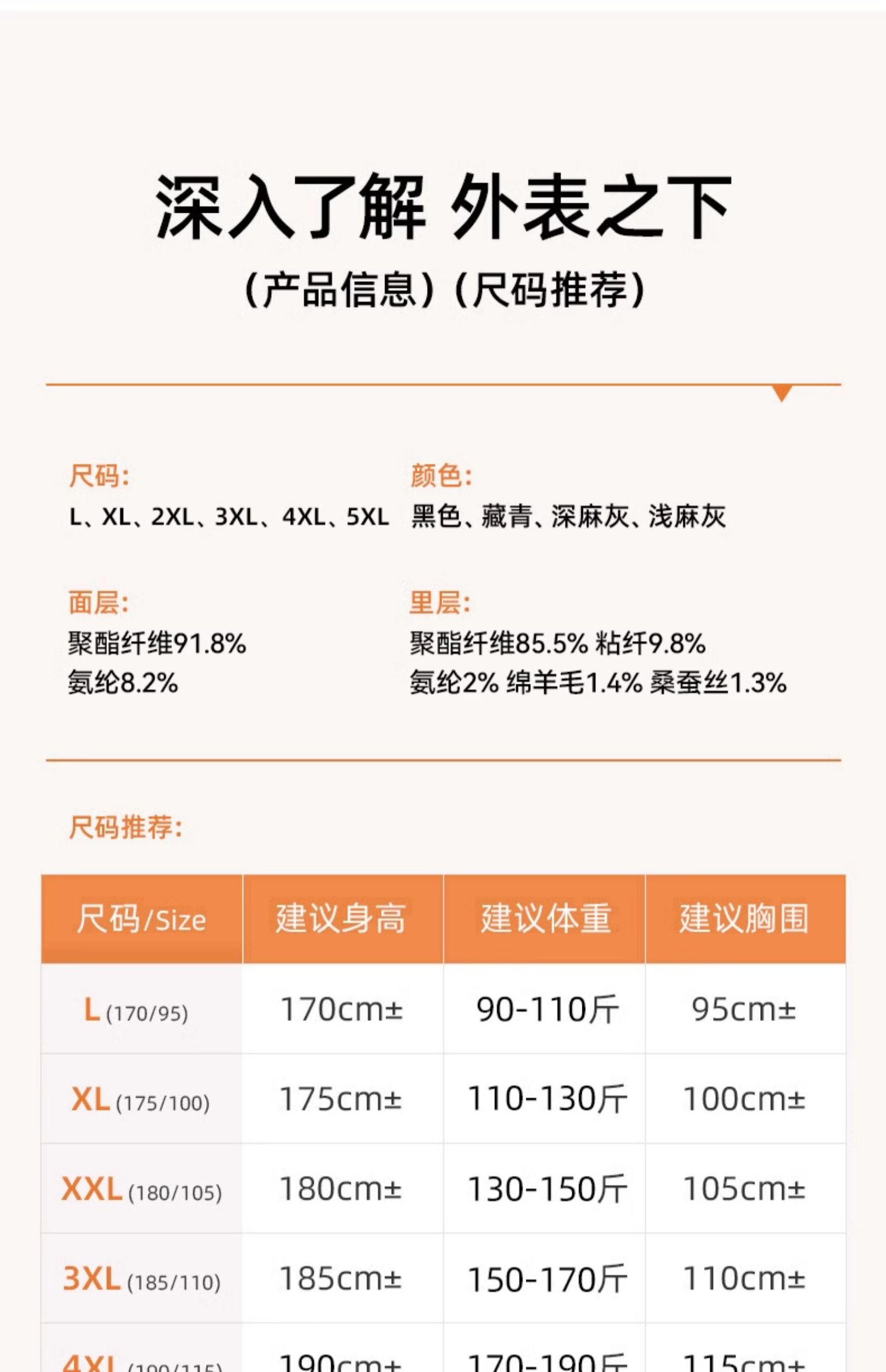 | 裡料材質成分 | 聚酯纖維82.1% 粘膠纖維(粘纖)8.5% 聚氨酯彈性纖維(氨綸)7% 綿羊毛1.3% 桑蠶絲1.1% |