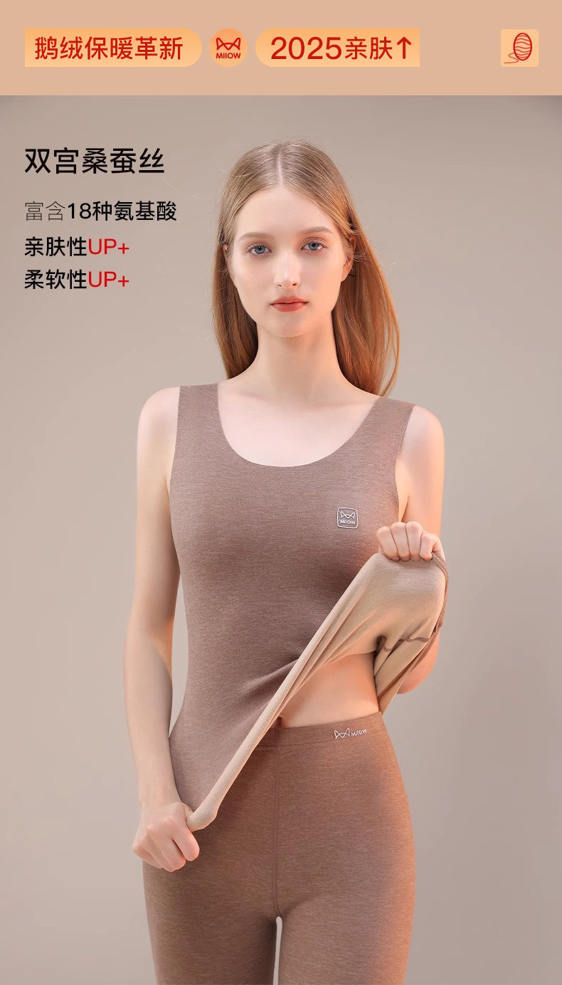 貓人女士德絨發熱保暖背心加厚無痕內穿秋衣蠶絲打底上衣冬季新款