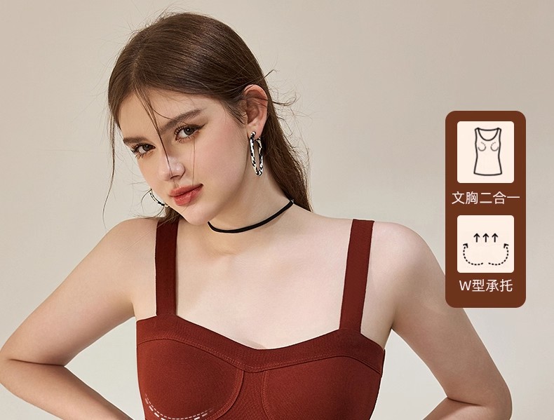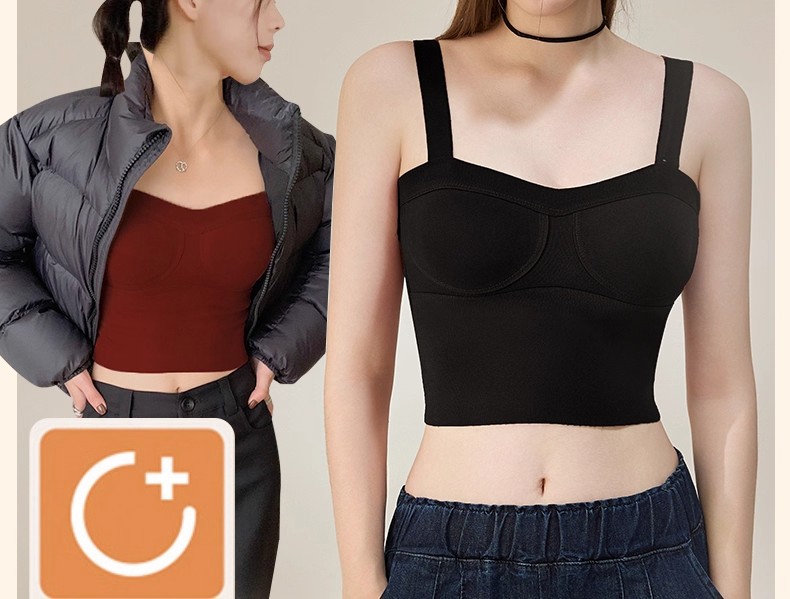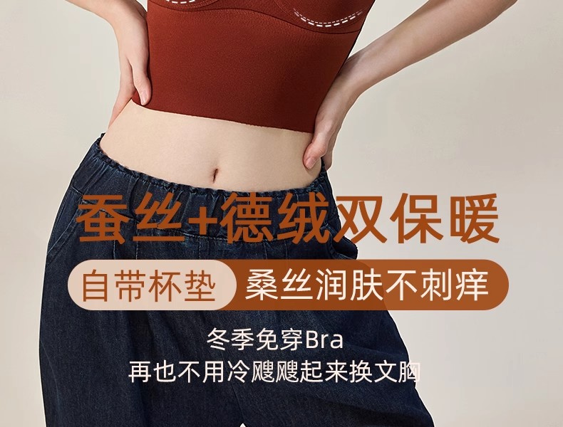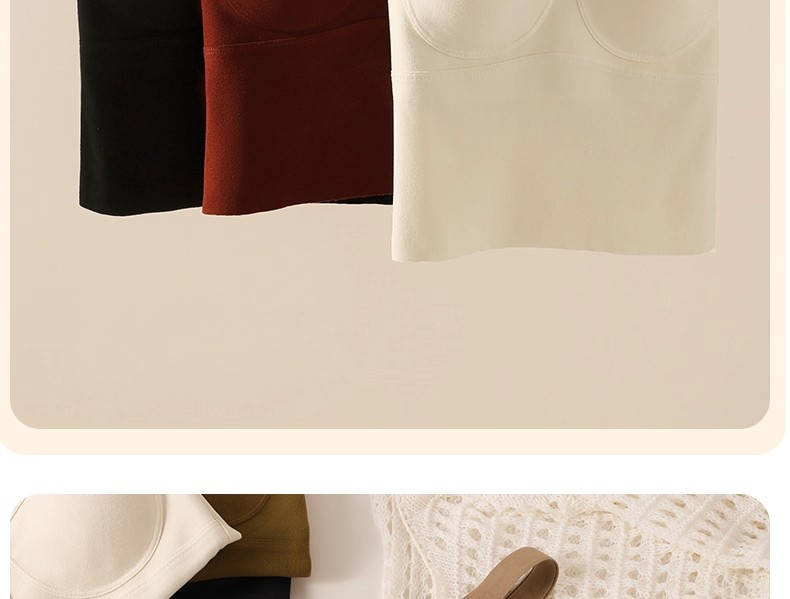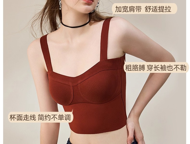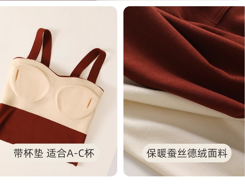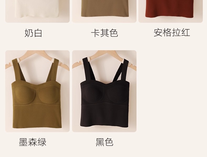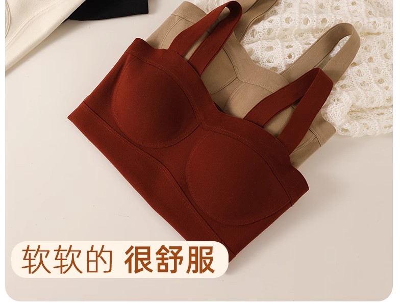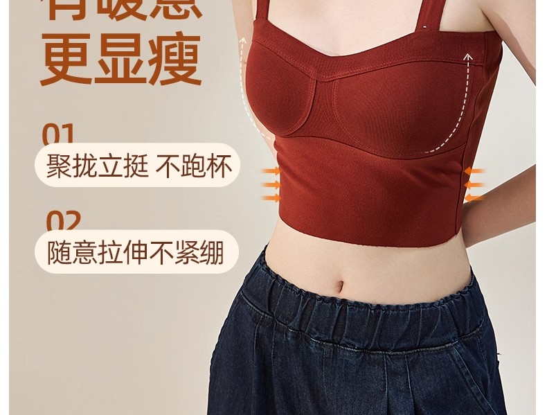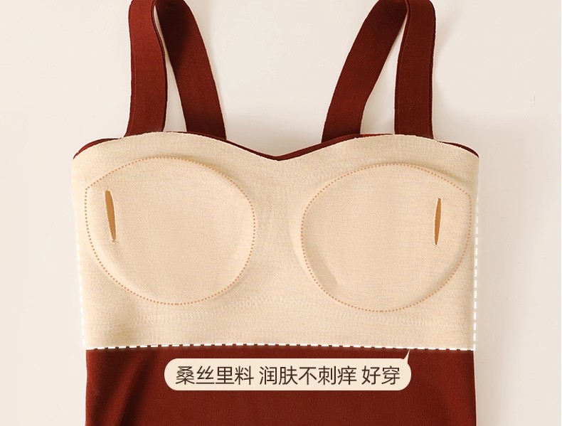 德絨保暖背心女加絨加厚帶胸墊紅色內衣女秋冬季髮熱內搭打底上衣