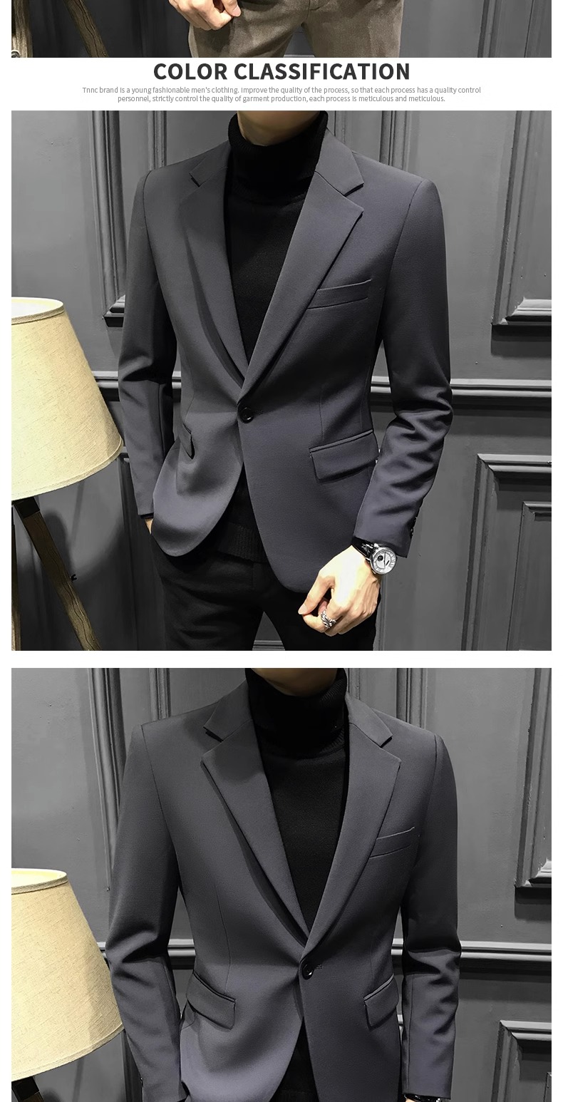 西裝外套男士秋冬新款修身高級感痞潮流帥氣男裝韓版商務休閒西服